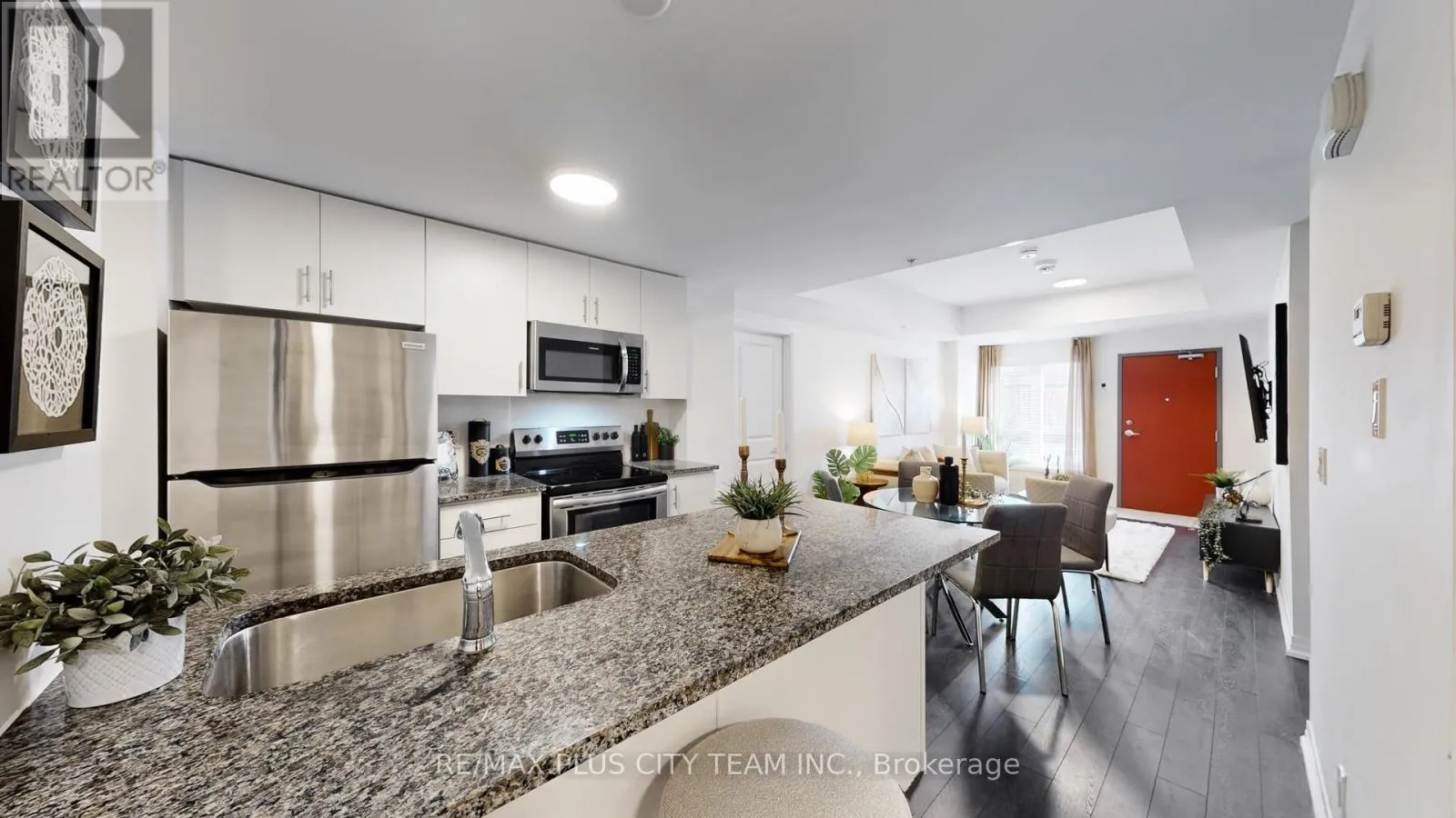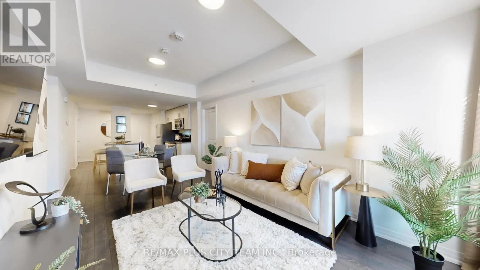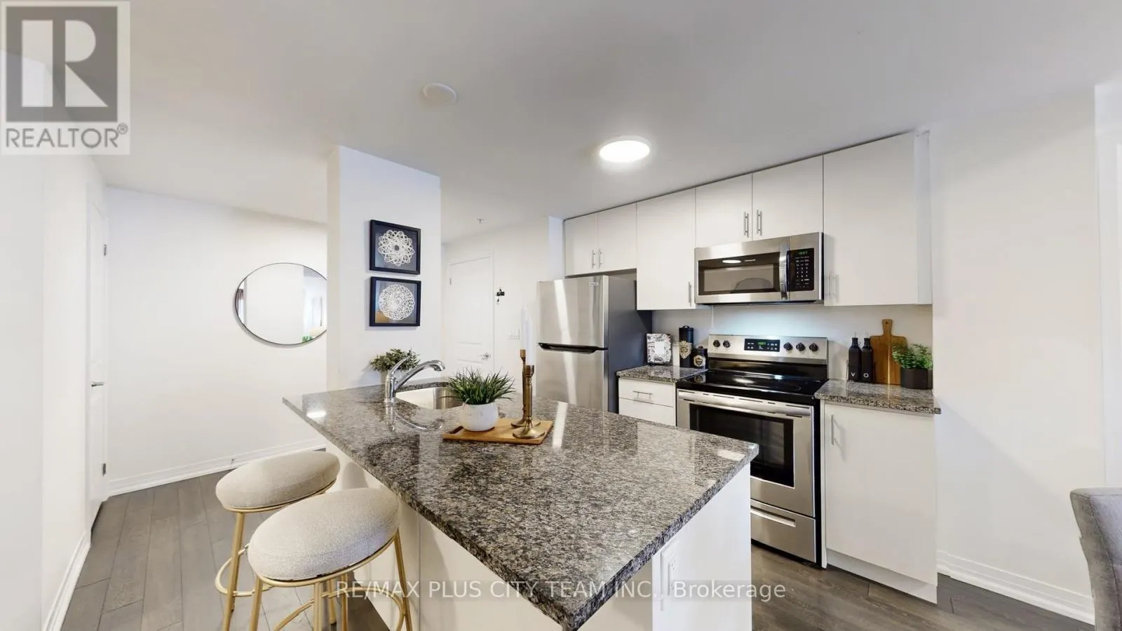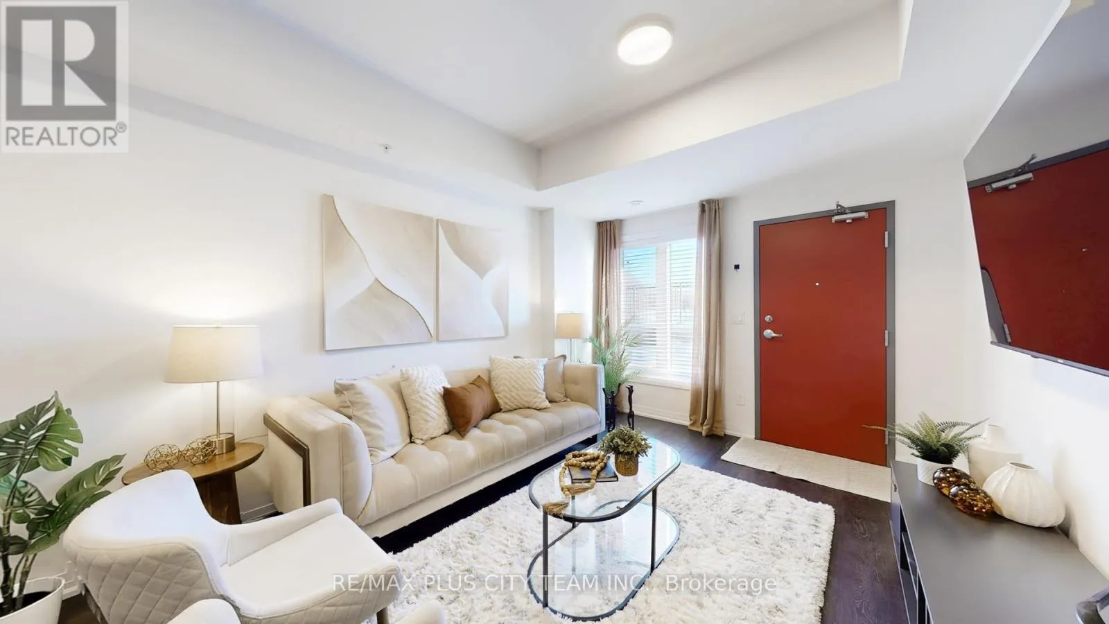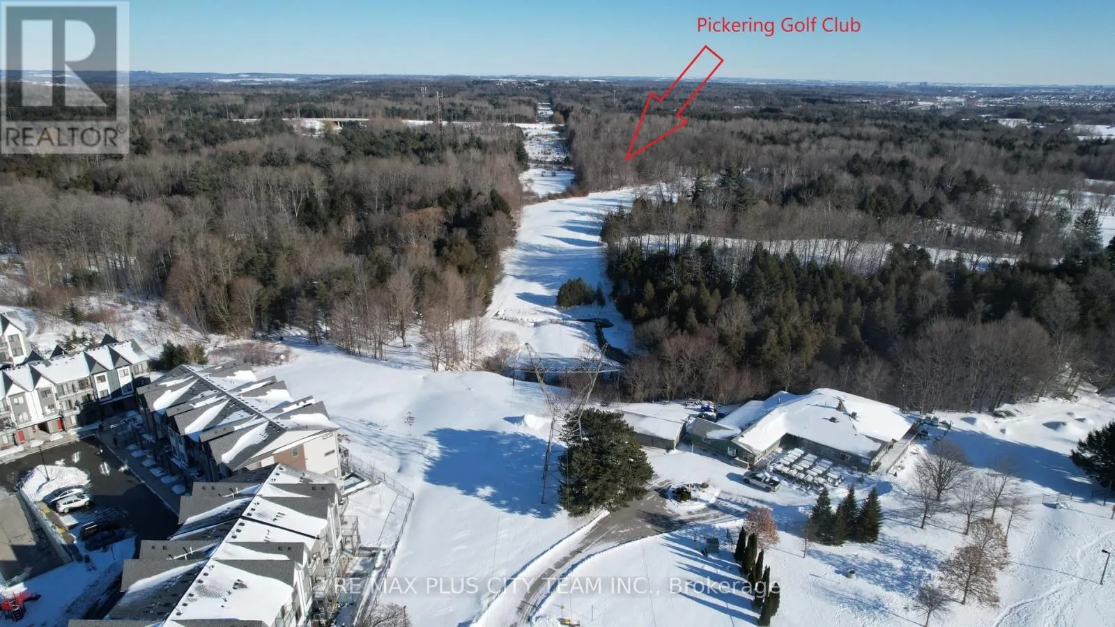 Cross Streets: Brock Rd/William Jackson Dr. ** Directions: William Jackson /Rex Heath Dr. Welcome home to this bright and inviting 2-bedroom plus den, 2-bathroom condo townhome that overlooks the Pickering Golf Club. With 9ft ceilings and 1090sqft all on one level (no stairs), the open-concept living, dining, and kitchen area offers a seamless flow for entertaining or relaxing, with a walkout to a private patio that extends your living space outdoors and offers an unobstructed view of the course. The contemporary kitchen features stainless steel appliances, a centre island, and ample cabinetry, blending style and practicality. Both bedrooms are generously sized and filled with natural light, including a primary suite with a large walk-in closet and 3-piece ensuite with a custom glass shower enclosure. The spacious den provides added versatility, ideal for a study, reading nook, or home office. Conveniently access the parking space directly from the unit, the spot is right next to the front door without requiring outdoor exposure. One parking space included, and a second parking space can be purchased directly from the builder. Internet included in the maintenance fee. This property is set in one of Pickering's most desirable neighbourhoods, this home offers convenient access to Highways 401 and 407, shopping, schools, parks, and all essential amenities, delivering the perfect mix of comfort, convenience, and lifestyle. Perfect for first time buyers, downsizers, or investors. (id:27476)