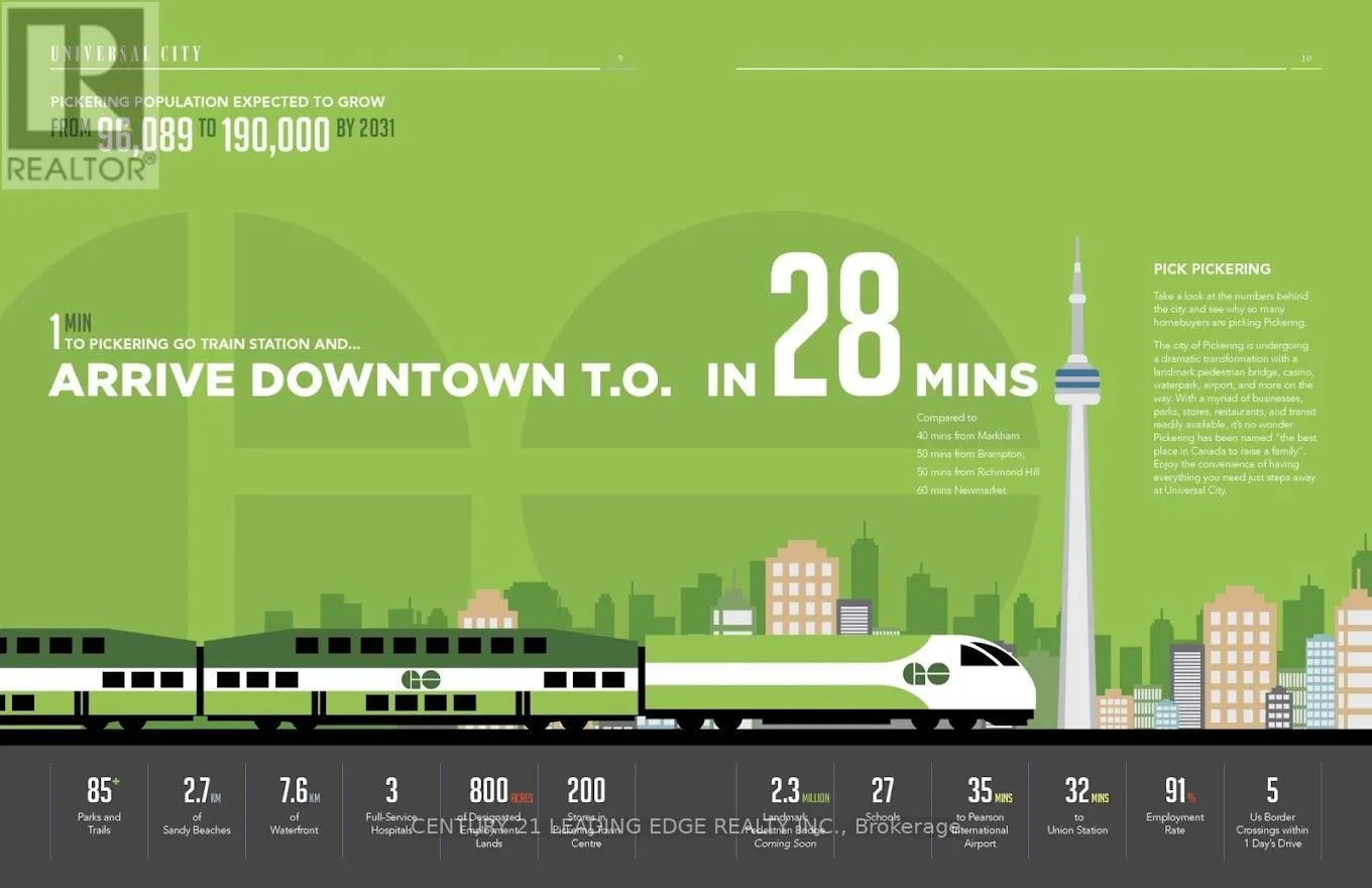 LIVERPOOL & BAYLY Welcome to the highly sought after Universal City Tower 2. Bright sun filled SE Corner Unit with a HUGE wrap around balcony on the top floor of the Podium. Open Concept Kitchen, Combined Living and Dining Room. Stainless Steel Appliances., Quartz counter tops in the modern Kitchen and Baths. Great split bedroom layout. The Den is nicely separated for the perfect home office, study area, reading room, child play area, or even extra storage. Primary bedroom boasts a walk in closet and 4 pc ensuite bath. 2nd bedroom is just as spacious and is also complete with a walk in closet. 1 Underground Parking, 1 Locker. Heat & Basic Internet Included! Bike Storage. Outstanding Amenities include: 24 Hr. Concierge, Visitors Parking, Gym, Yoga/Exercise Room, Outdoor Pool, BBQ Area, Lounge Room, 2 Party Rooms, Games Room & Guest Suites. Transit at your doorstep. Short Walk to Pickering GO. Just minutes to the 401 and the 407. Close to Pickering Casino Resort & Durham Live. Enjoy the beach, boardwalk, trendy shops, great restaurants & Frenchman's Bay at the bottom of Liverpool. Shopping, parks, trails, waterfront, all nearby for the outdoor enthusiasts. This is a non-smoking building. (id:27476)