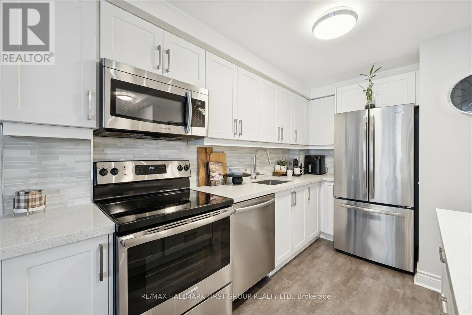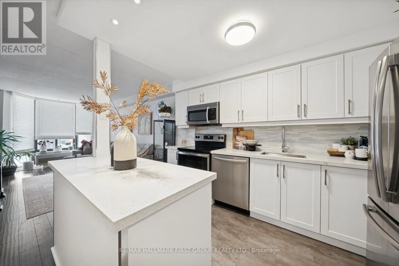 Valley Farm/Pickering Pkwy Welcome to this beautifully updated 3-bedroom, 2-bathroom condo in the sought-after Village at the Pines by Tridel, located in the heart of Pickering's Town Centre. Offering approximately 1,025 sq ft of carpet-free living space, this bright and spacious unit features an open-concept layout ideal for everyday living and entertaining. The upgraded custom kitchen showcases beautiful cabinetry including quartz countertops, stainless steel appliances, a large island, and pot lighting. Additional updates include upgraded bathrooms and updated flooring. The generous primary bedroom features a second walk-out the the balcony, while two additional bedrooms offer flexibility for family, guests, or a home office. Enjoy ensuite laundry and one exclusive surface parking space. Maintenance fees include water, cable TV, home phone, internet, building insurance, and common elements. Ideally located steps to Pickering Town Centre, recreation centre, library, medical offices, restaurants, GO Transit, pedestrian overpass, and quick access to Hwy 401. (id:27476)