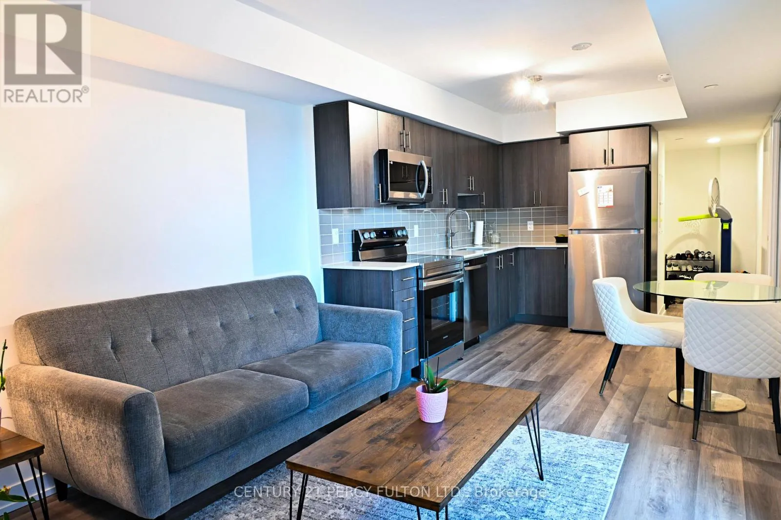 Liverpool / Bayly Welcome to fairly new 2 Bedroom and 2 full Bathroom suite with a total indoor area of almost 800 square feet and additional balcony and terrace area. The kitchen includes a Quartz countertop and Stainless Steel appliances. The living/dining room connects with the Master bedroom with a beautiful laminate floor. The suite is equipped with a Samsung 27" front load washer and stacked dryer. The Master bedroom comes with a walk-in closet, an 4pc ensuite washroom The tower also includes for amenities such as a fitness room, yoga room, lounge, billiard room, a multi-purpose lounge/boardroom/bar and pet spa on the ground Level. On the 7th floor, the tower includes a swimming pool, and a barbecue area. The tower also comes with 49 visitor parking spaces for the use of your guests. (id:27476)