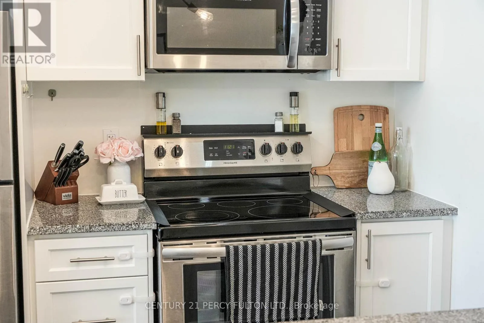 Brock Rd & Taunton Rd Welcome to this sun-filled, south-facing townhome in the heart of Pickering's desirable Duffin Heights community, offering unobstructed views of the Pickering Golf Club's lush greens. Thoughtfully designed with both style and practicality in mind, this modern 3-bedroom, 3-bathroom residence features high-quality vinyl flooring throughout, delivering a clean, contemporary look with no carpet anywhere. The open-concept main living area is bright and inviting, enhanced by oversized windows that flood the space with natural light. The sleek kitchen is finished with quartz countertops, stainless steel appliances, and a convenient breakfast bar that flows seamlessly into the living and dining areas-ideal for everyday living and entertaining. Two private balconies extend the living space outdoors, perfect for morning coffee, evening relaxation, or enjoying the peaceful surroundings. Upstairs, generously sized bedrooms provide comfort and privacy, including a spacious primary retreat with a walk-in closet and private ensuite. Additional bedrooms offer flexible use for family, guests, or a home office, with access to modern bathrooms. Ensuite laundry, two parking spaces, and a dedicated locker add everyday convenience and valuable storage. Set within a quiet, family-friendly neighborhood surrounded by parks, trails, and playgrounds, this home offers a perfect balance of tranquility and accessibility. Minutes to SmartCentres Pickering, Pickering Town Centre, Highways 401 & 407, and Pickering GO Station, commuting and daily errands are effortless. An excellent opportunity for professionals, families, or investors seeking a move-in-ready home with modern finishes in one of Pickering's most sought-after communities. (id:27476)
