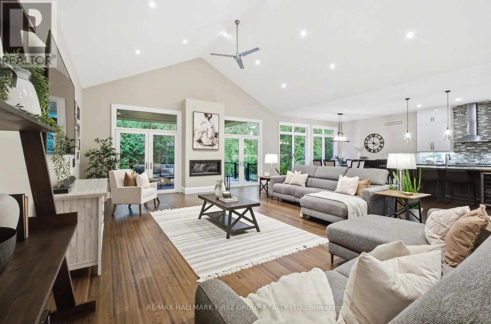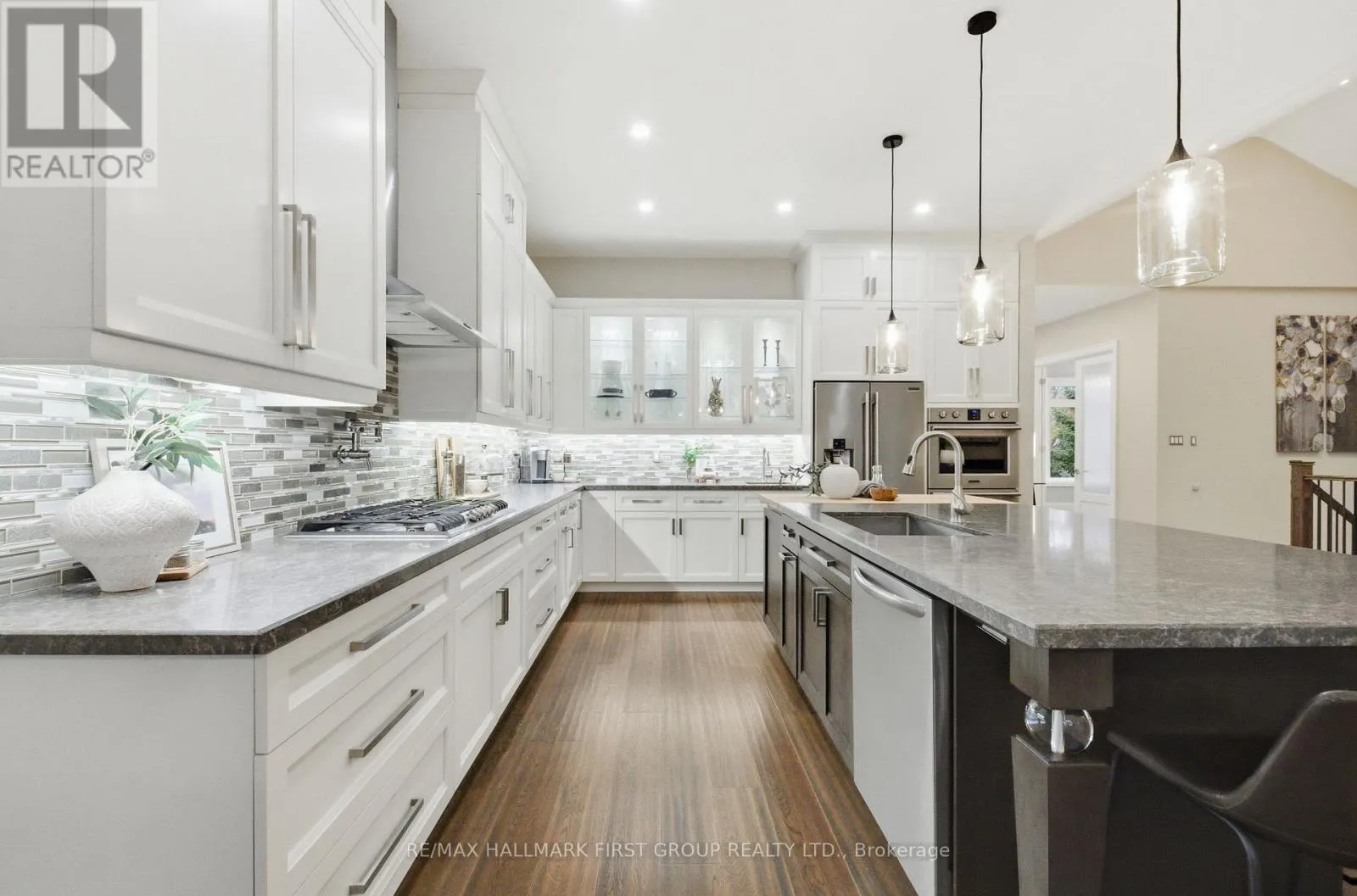 Dixie Rd & Glenanna Rd A rare offering in central Pickering-this custom-built bungalow blends timeless architecture with modern luxury, steps from one of the city's top-rated elementary schools. From the moment you walk in, soaring 10ft ceilings and a dramatic 15ft vaulted great room set an unmistakably upscale tone.The open-concept layout delivers over 2,500sqft of refined main-floor living, perfectly suited for both large families and sophisticated downsizers who value space and comfort.The kitchen stands as the home's showpiece-a true chef's haven featuring quartz countertops, premium stainless-steel appliances, b/i double ovens, a gas range with pot filler, butcher-block island with prep sink, and a dedicated wine fridge.The living space extends outdoors through dual French door walkouts to a covered patio complete with illuminated glass railings, a mounted TV, designer fan, and a privacy screen, creating an effortless indoor-outdoor lifestyle.The bedroom wing offers serene luxury, including custom closets throughout and a primary suite with a spa-like ensuite showcasing an oversized glass shower, sculptural soaker tub, and a brilliantly designed walk-through dressing room that connects to a second bedroom-perfect for a nursery or home office.A floating staircase leads to the expansive 9ft high lower level, designed with remarkable versatility.Here you'll find a large rec area, wet bar, two additional bedrooms, three bathrooms, and two impressive bonus rooms-including an 800sqft room beneath the garage ideal for a gym, theatre, or storage.A second private entrance accesses a dedicated lower-level suite currently used as a salon-ideal for a home-based business or future kitchen/in-law suite.Completing the home is a heated garage with oversized doors, adding to the thoughtful functionality throughout this meticulously crafted property.Opportunities like this don't come often.Schedule a private tour and see firsthand why this home stands in a class of its own. (id:27476)