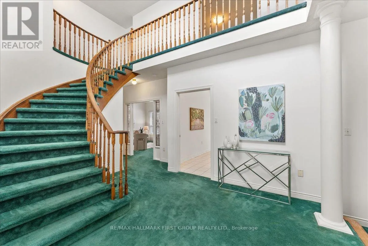 Woodview / Twyn Rivers Welcome to 1633 Valley Ridge, set on a premium 60 x 148* ft lot in a spectacular family oriented neighbourhood; This elegant home welcomes you with a grand foyer featuring double-door entry and 9ft ceilings throughout the main floor. A private office with vaulted ceilings and double French doors provides an ideal work-from-home space. The sunken living room with 10ft ceilings offers warmth and character with a gas fireplace, while the formal dining room impresses with coffered ceilings - perfect for hosting. The bright, eat-in kitchen features abundant cupboard and counter space and opens to a comfortable family room with a second gas fireplace. Main-floor laundry adds convenience with direct garage access and a separate side entrance. The oversized primary retreat showcases double doors, his-and-her walk-in closets, and a spacious ensuite with a separate shower and jacuzzi tub. A stunning secondary bedroom with vaulted ceilings includes two double closets and a Jack-and-Jill bathroom shared with the third bedroom. A generously sized fourth bedroom with 4-piece ensuite and double closets easily accommodates a growing family. The partially finished basement offers a bachelor apartment with separate walk-out access - ideal for extended family or additional income potential. Fantastic location within walking distance to Rouge Valley trails and easy access to hwy 401, 407, and downtown Toronto! Recent updates include newer shingles 2018, furnace 2019, and air conditioning. **Carpet colour has been altered in some photos - QUOTE FOR NEW HARDWOOD ON FIRST FLOOR including stair nose; $15,854 + HST, NEW CARPET ON SECOND FLOOR; $7,952 + HST - quoted by Summit Flooring** All Windows & Patio Door Quote: $39,121 - quoted by Superior Home Improvements. (id:27476)