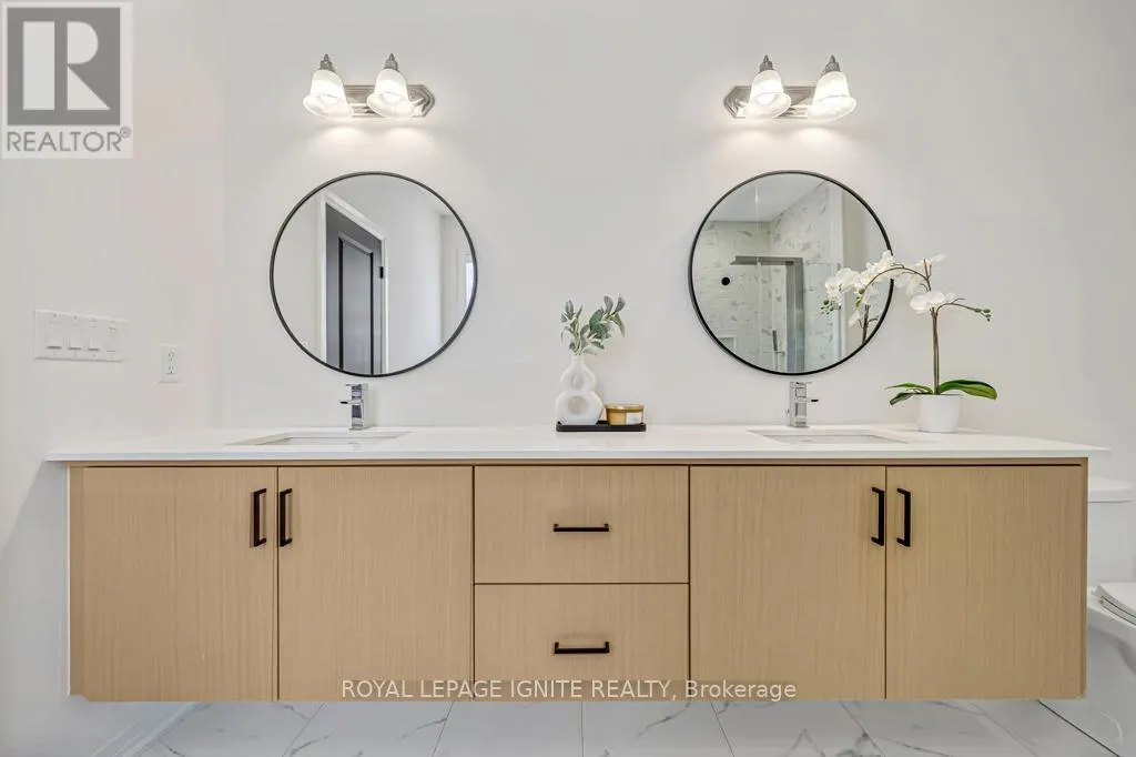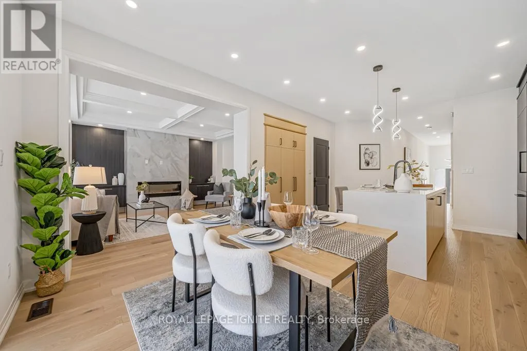 Taunton Rd & Peter Matthews Dr THE ULTIMATE LIFESTYLE RETREAT | $260K+ IN LUXURY UPGRADES Discover the perfect balance of serene rural charm and modern executive luxury. This is a rare chance to own the crown jewel of Rural Pickering-a meticulously curated masterpiece boasting over $260K+ in bespoke upgrades. Nestled on a quiet, family-centric street, this 4-bed detached home offers a level of sophistication and tranquility that is truly rarely offered. A CULINARY MASTERPIECE: The heart of this home is a breathtaking, extended Chef's kitchen that redefines modern luxury. Drenched in style, it features floor-to-ceiling custom black cabinetry, high-end paneled appliances for a seamless aesthetic, and a massive kitchen island crowned with a dramatic quartz waterfall edge. With a matching quartz backsplash, flush hood fan, gas cooktop, and a spacious B/I pantry, it is as functional as it is beautiful. DESIGNER INTERIORS: This carpet-free residence features rich hardwood flooring throughout, reflecting a commitment to quality and health. The living room serves as an architectural sanctuary, boasting elegant waffle ceilings and a modern flush-mount fireplace anchored by custom floating cabinetry. Bathed in natural light, the living and dining layout transitions perfectly to the outdoors through upgraded, extra-wide patio doors. ICONIC CRAFTSMANSHIP: Ascend a stunning architectural staircase featuring premium wooden handrails, metal balusters, and contemporary glass railings. The second floor offers four generous bedrooms, each featuring custom-built closet organizers. The Primary Suite is a genuine retreat, complete with a spa-inspired 5-piece ensuite-featuring a freestanding tub and frameless glass shower-and a walk-in closet that has been entirely customized for maximum organization. UNLIMITED POTENTIAL: The expansive, unfinished basement offers 9ft ceilings, egress windows, a 200amp service, and a bathroom rough-in, providing a massive footprint ready for your custom theatre, gym, or guest suite. (id:27476)