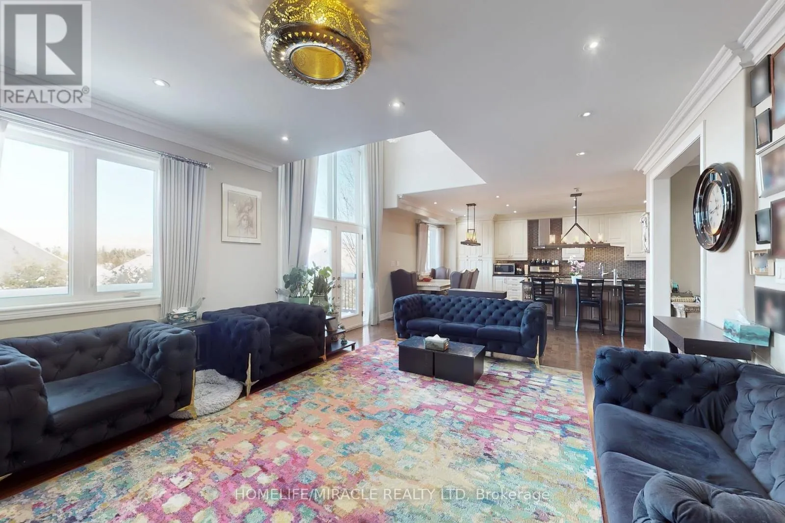 Cross Streets: Sheppard Ave & Fairport Rd. ** Directions: Spruce hill rd & welrus st. Welcome to this beautiful custom-built home located in Pickering. Standing on nearly 6,000sq.ft., including the walk-out basement, the home greets you with an impressive double doorgrand entry to a long, inviting hallway that flows smoothly into the generous family & formaldining rooms. The house features 9ft. ceilings, hardwood floors, crown moulding, pot lights, &oak stairs with wrought iron spindles. The iconic living, dining, & kitchen, is perfect forspending time with family or hosting friends. A dramatic, ~20ft long floor-to-ceiling glasswall floods the space with natural light all day long. The second-floor mezzanine overlookingthe living room, gives a loft-like feel that allows a connection between the two levels. Theview from the second-floor, especially during winter evenings, feels like you're looking outfrom a hill-top chalet. The gourmet kitchen boasts a large center island, granite counters,custom cabinetry, & stainless-steel appliances. The 3-piece washroom on the main floor sitsbeside a generous room with closet; perfect for multi-generational living or benefits familymembers with mobility issues. The expansive second floor (~2,200 sq.ft.) offers 5 spaciousbedrooms, 3 luxurious washrooms, and laundry room. The primary suite features His & Her walk-inclosets & 5-piece washroom with dual vanity, soaker tub & large standing shower. A secondprimary bedroom with ensuite, two additional bedrooms with Jack & Jill washroom, & the 5thbedroom can be creatively used as an office, yoga/Pilates room, prayer room, playroom for thekids, or library; the options are endless. At ~1900 sq.ft., the bright walkout basement withpot lights, built-In-bar, 3-piece washroom & ample storage space is perfect for largegatherings. Conveniently located mins away from 401, Shopping Plazas, tons of restaurants,grocery stores, and top Durham schools this home blends architectural elegance with moderncomfort. A rare executive offering-book your showing today. (id:27476)