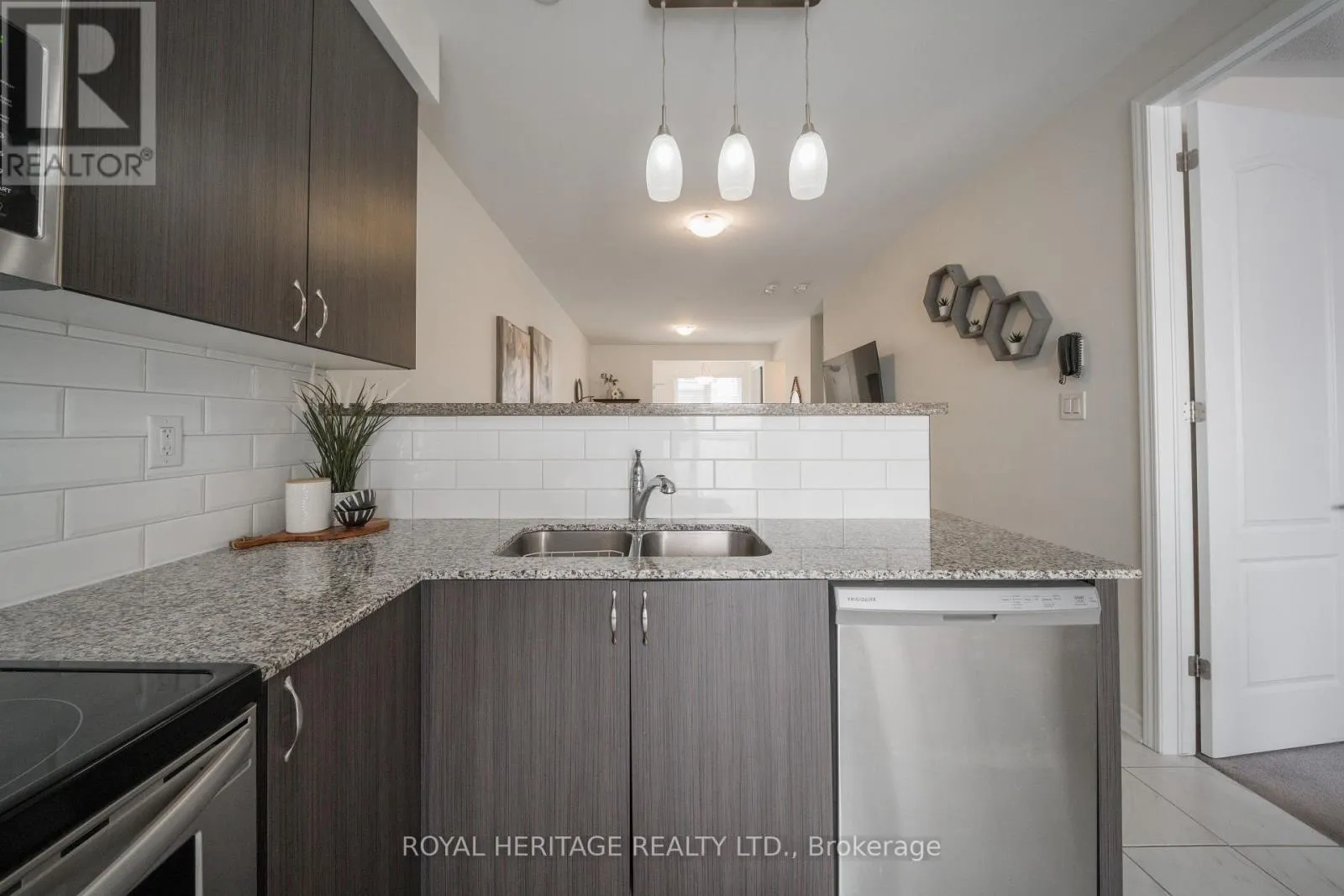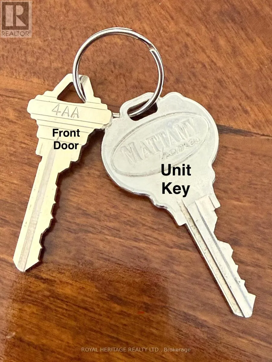 Cross Streets: Burkoholder Dr / Taunton RD. ** Directions: From Taunton turn onto Burkholder then right to Dragonfly once you enter the complex make an immediate right go to the end of that road, make left visitor parking in from of unit. First unit once you go up the stairs. Red Lock box on rail. Welcome to this Bright / Spacious End-Unit Townhouse beautifully maintained offering a large kitchen with extra cabinetry and breakfast bar, walk-out to private 11' x 10'.This open concept floor plan with 9 foot ceilings is ideal for entertaining, with an abundance of natural light throughout. The main floor features a spacious primary bedroom with a 3-piece ensuite, a second bedroom, convenient main-floor laundry, and an additional 4-piece bathroom. The lower level offers a third bedroom complete with a 4-piece ensuite, providing excellent privacy for guests or family members. Additional highlights include a spacious built-in garage.This bright and spacious home is thoughtfully designed for comfort, convenience, and modern living. Minutes from grocery stores, shopping centers, 401, 407, 412 and GO transit, offering an easy commute to Downtown. Great family neighborhood with newer schools and community Center. You won't be disappointed. Book today. (id:27476)