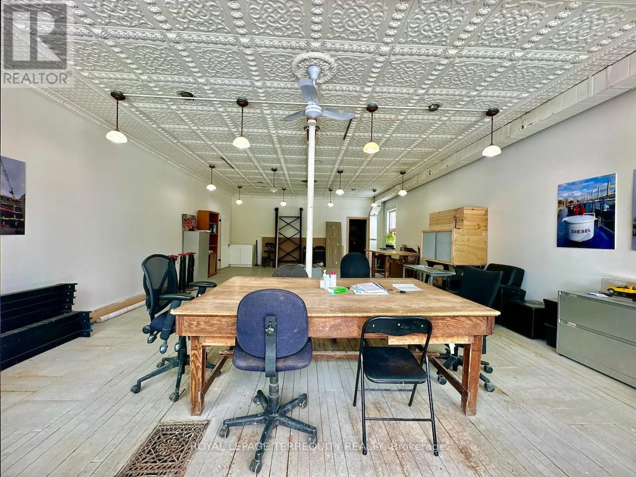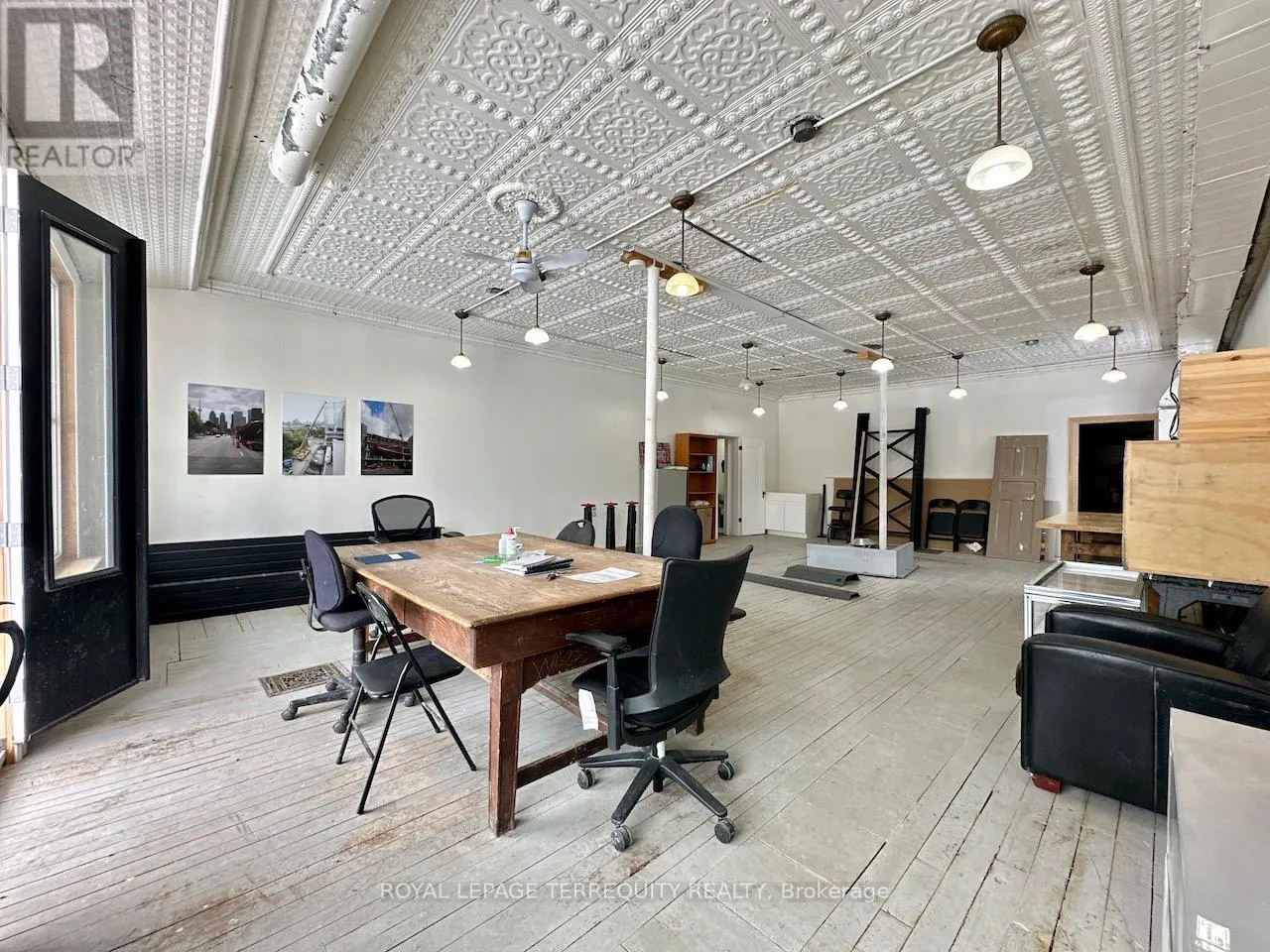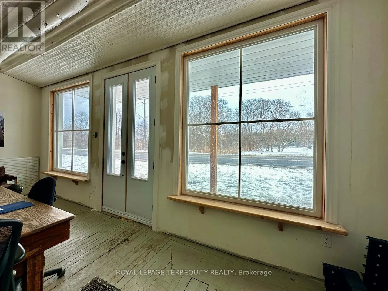 Cross Streets: Hwy 7 & York Durham line. ** Directions: Look for white siding and wood columns on building just east of York Durham Line. The building is situated on the North side of Hwy 7, formerly the site of Saunders Book Store. Newly renovated high exposure historic landmark building with professional tenant mix situated just east of York Durham Line in the quaint hamlet of Green River immediately on Highway 7 (formerly known as the Saunders Book Store). Conveniently located just east of Markham along the north west border of Rural Pickering. Ideally suited for office or similar use. Suites/ offices range from 156 - 569SF. See floor layout plan showing main and upper floors. E1 & E2 is a large 1041SF Build-To-Suit open concept shop front opportunity with a covered porch walk-way a a main double-door entrance, a rear entrance/ exit, high tin finished ceilings, and extensive lighting. The suite fronts onto Hwy 7 providing excellent street exposure with short term visitor parking immediately in front. The gross lease referenced herein allows for base building finishes in keeping with the building. Landlord Improvements may be subject to additional expense and can be negotiated into the gross lease. There are three common washrooms. Each unit comes with its own designated parking(s) Utilities (gas/ water/ hydro) are included. The interior of the building impresses with period correct materials throughout. Finishes include mosaic tilework, hardwood, high baseboards, crown mouldings, ornate trimwork, coffered/ tin ceilings, oversized vertical sliding slash styled windows that crank open, exposed wood, brickwork, and more. All office are sizeable, bright, and airy with ample separation from neighbouring suites. Office furniture can form part of the lease subject to availability. (id:27476)