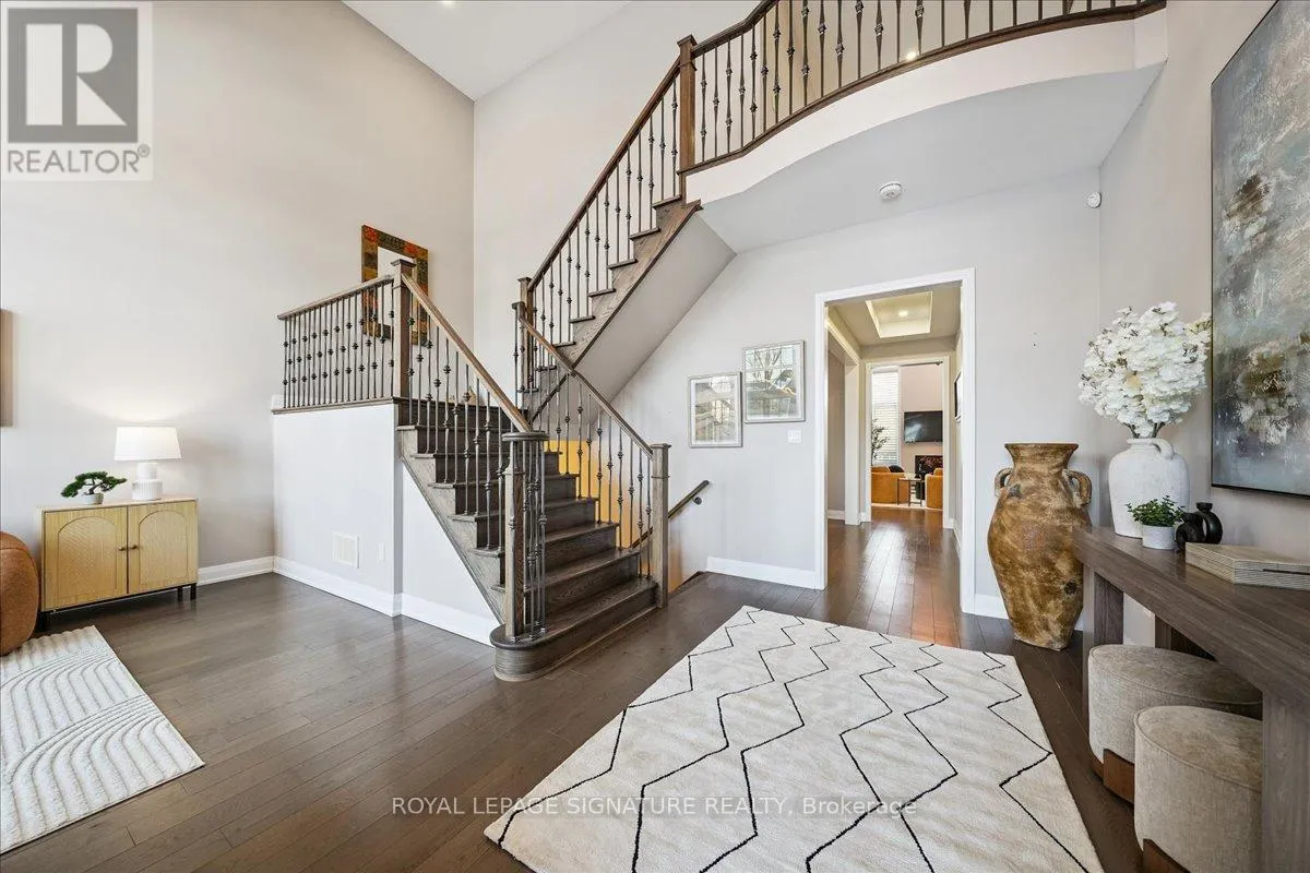Rougemount & Toynevale The one you've been waiting for. Welcome to a rare executive bungaloft in the prestigious Rosebank community - thoughtfully designed for downsizers, families, and multi-generational living. Tucked on a quiet court and set on an oversized pie-shaped lot widening to over 100 feet, this custom build by Marshall Homes blends architectural elegance with everyday function. Soaring double-height ceilings elevate the foyer, living, great room, and primary suite while 10 foot ceilings continue upstairs. This ideal layout features two primary bedrooms - a luxurious main floor retreat and a private upper suite. The main floor primary offers two closets (including a walk-in), a tray ceiling, and a spa-inspired ensuite with freestanding tub, glass shower, separate toilet, and double granite vanity. At the heart of the home, the chef's kitchen showcases an impressive granite centre island, undermount sink, and premium Bosch appliances including double ovens, gas cooktop, and full-depth fridge. Extended cabinetry with valance lighting, a walk-in pantry, and a servery add style and practicality. Rich oak hardwood flooring flows through most of the home. Upstairs, the second primary suite includes a walk-in closet and ensuite bath, while the third and fourth bedrooms share a Jack & Jill bath. A generous loft provides additional living space ideal for lounging or working from home. The expansive backyard offers excellent potential to create a true resort-style outdoor oasis. Additional highlights include an approximately 1,500 square foot unfinished basement with 5 windows and 3-piece bath rough-in, 200 amp service, and rough-ins for alarm and central vac. Steps to a notable private school, waterfront trails, and just 5 minutes to Hwy 401, 398 Frontier is a rare offering in Rosebank combining luxury, flexibility, and location. (id:27476)