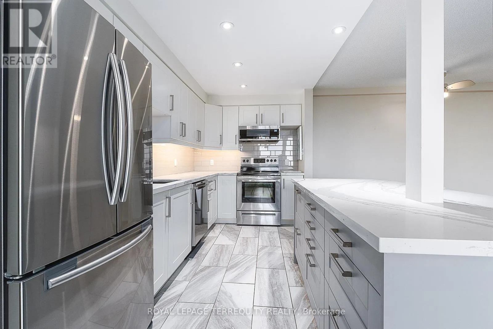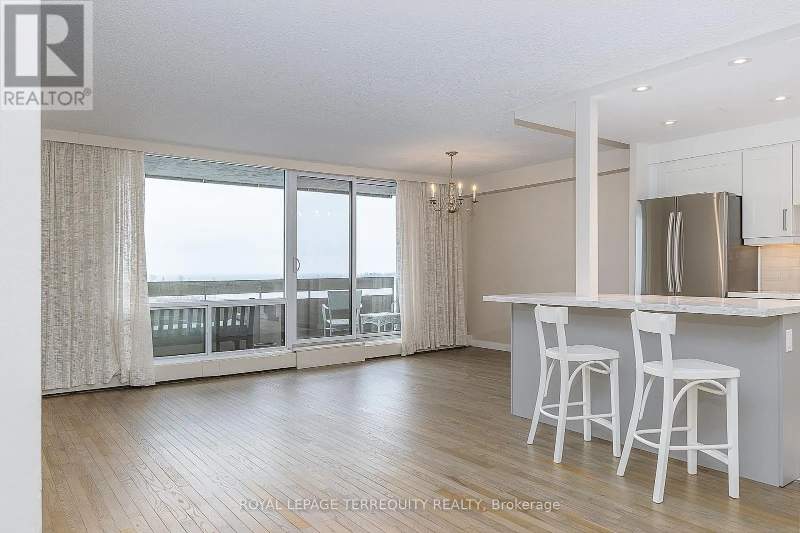 Bayly St/Liverpool Rd Stunning, fully renovated 3-bedroom, 1,200 sq. ft. condo with breathtaking views of Lake Ontario and Frenchman's Bay. This open-concept executive type suite is a must-see, featuring a sliding patio door that leads to an oversized terrace balcony overlooking the water. The modern kitchen offers abundant storage, stainless steel appliances, a large island, and quartz countertops; perfect for cooking and entertaining. The spacious primary bedroom with 2 pc ensuite, is versatile enough to serve as a luxurious bedroom or an additional family/living area. A brand new washer/dryer unit is in-suite, and additional laundry is available in the buildings laundry room downstairs. Renovated Lobby, Gym, Party Room, Outdoor Gazebo, Green Space and Underground Visitor Parking are all part of the building amenities. One underground parking spot is included, with the option to rent additional spaces if available. This friendly building is well maintained and completely smoke/vape-free, both inside and out. (id:27476)