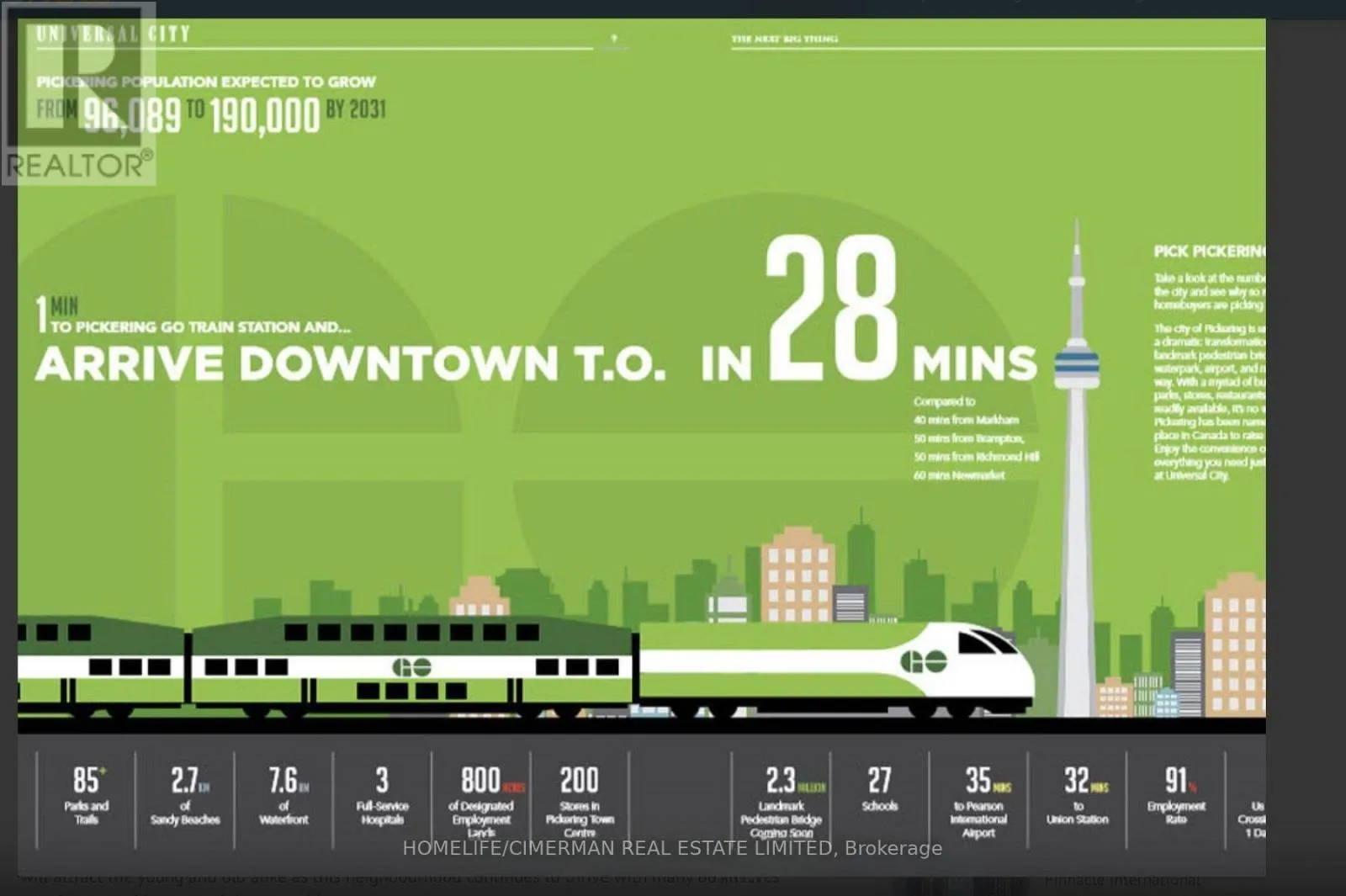 Bayly St. & Liverpool Rd. Experience luxury living in this new Corner Two-bedroom, two-bathroom condo at Universal City Condos 3 by Chestnut Hill Developments. This stunning unit features unobstructed breathtaking East facing views with 2 private balconies, the perfect spot to unwind with evening views or watch the sunrise over the lake, High-end finishes throughout the unit add a touch of elegance to every room, a modern kitchen with stainless steel appliances. Universal City Condos 3 is a master-planned community offering exceptional amenities, including a state-of-the-art fitness center, a party room with a full kitchen, and beautifully landscaped outdoor terraces equipped with BBQs, cabanas, and fire pits and a resort-style outdoor pool. The building's sleek design boasts open-concept layouts, floor-to-ceiling windows, quartz countertops, and premium finishes, ensuring modern comfort and style . Located in the heart of Pickering, this prime address is just minutes from Pickering Town Centre, with over 200 stores and services. Residents also enjoy easy access to prestigious schools, parks, the Pickering Recreation Complex, and multiple transportation options. A short 7-minute walk connects you to the Pickering GO Station, offering a 25-minute express ride to Union Station, while Highway 401 is just minutes away for seamless commuting. Whether you are a first time buyer, downsizer, or savvy investor, this is your chance to own a slice of modern luxury in one of Pickering most desirable communities. Don't miss out ! this is the one you have been waiting for! (id:27476)