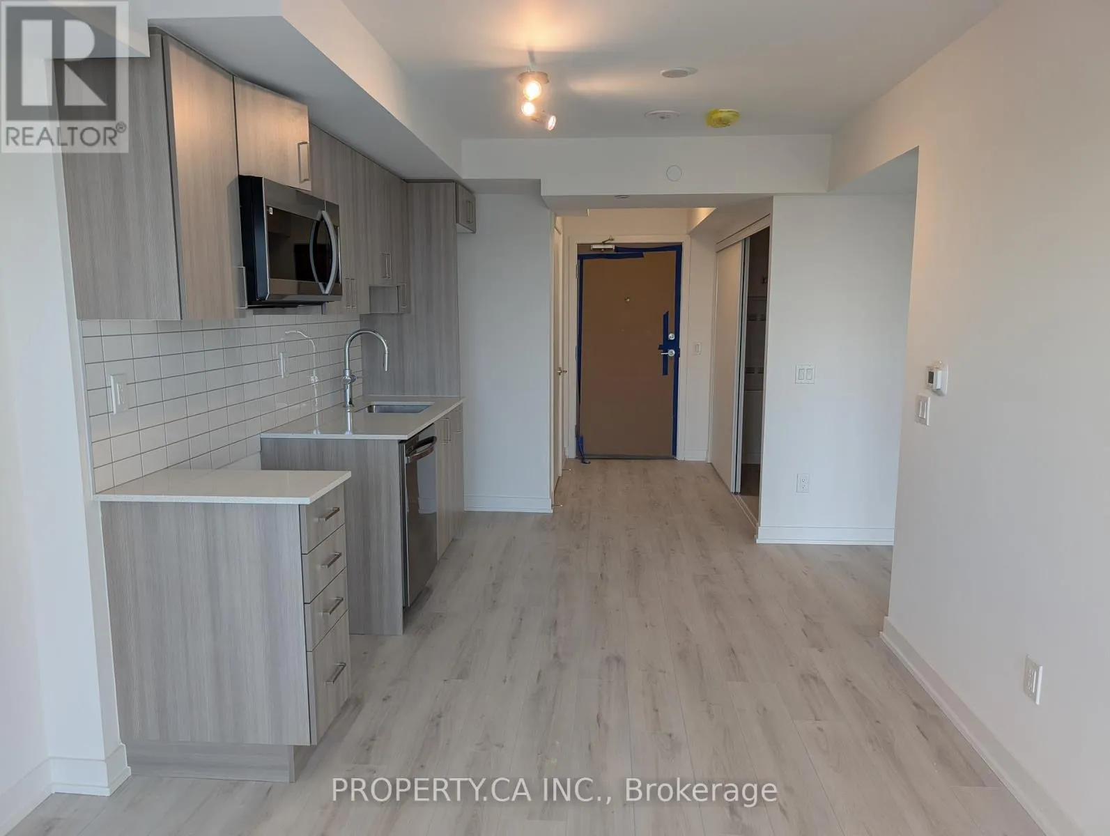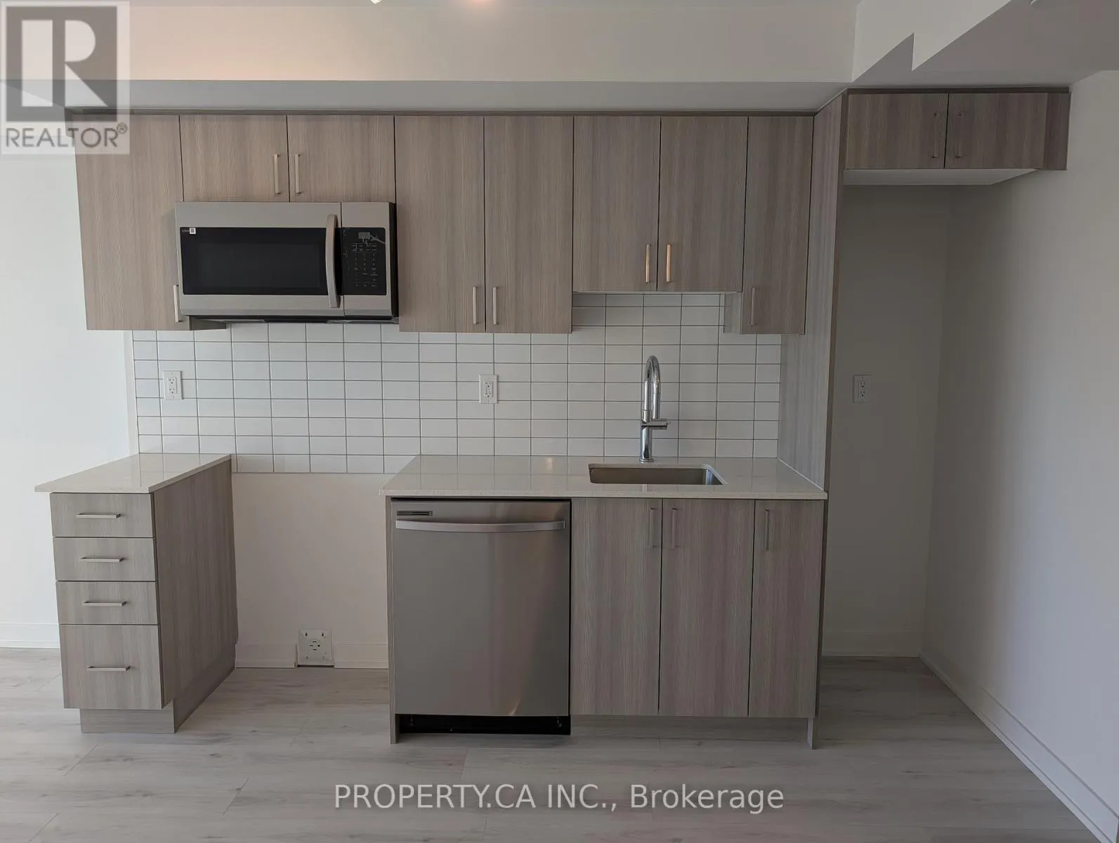 Bayly St/Sandy Beach Rd Welcome to Universal City East Condos in Pickering. Brand new 495 sq ft one bedroom, one bathroom suite on the 12th floor with a locker included. Thoughtful, efficient layout with open concept living and dining, designed to feel comfortable for your day to day. Walk out to a balcony for added outdoor space and a bright extension of the main living area. The modern kitchen is finished with quartz countertops, full height cabinetry, stainless steel appliances, and a clean tile backsplash, offering a sleek look with practical storage and workspace. The bedroom is a true separate room with closet space and a functional footprint for a full bed setup. A modern bathroom features a quartz vanity and tub, and in suite laundry adds everyday convenience. A clean, move in ready rental with brand new finishes throughout, ideal for a professional tenant or couple looking for low maintenance living in a growing community with easy access to everyday shopping, dining, services, and transit options. (id:27476)