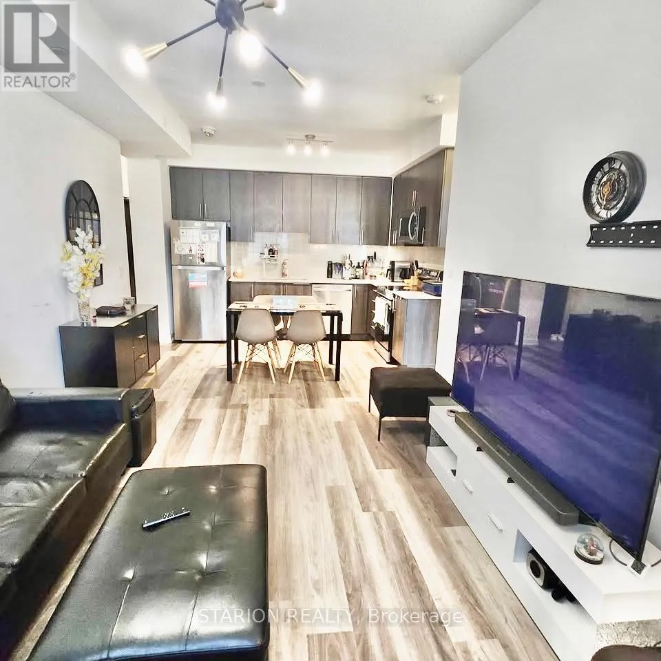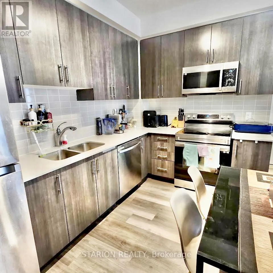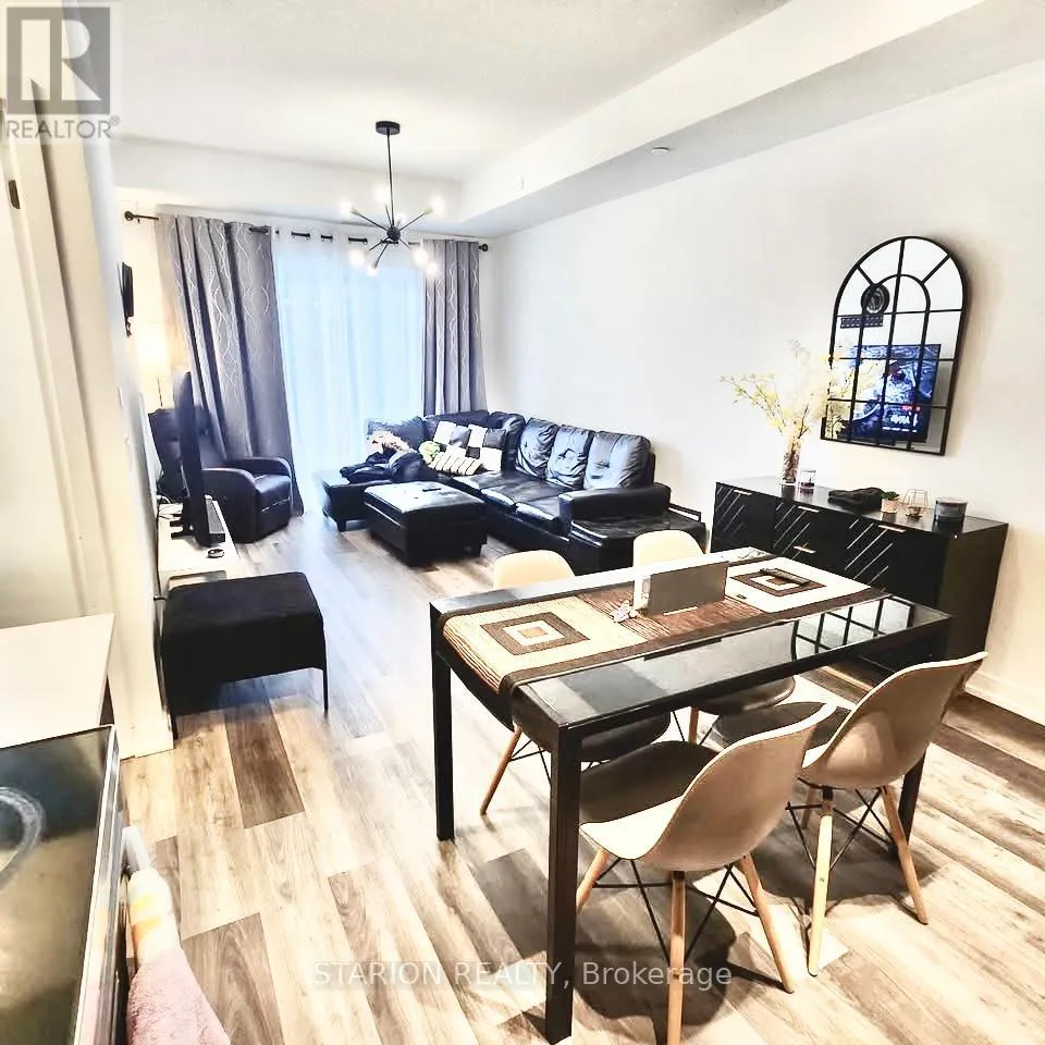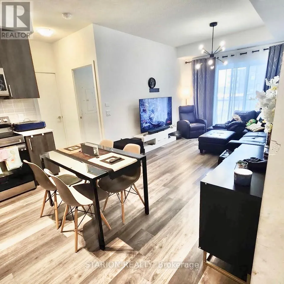 Bayly/Liverpool Own this stunning one-bedroom plus den that fits like a bedroom in the sought after UC1 building!This unit is truly a standout. Enjoy the amenities that elevate your lifestyle, including 24hr security, gym, yoga room, pet wash station, party room, guest suite, a rooftop terrace with breathtaking views, and a rooftop pool! Maintenance fees include heating, air conditioning, andRogers high speed internet/cable. Step into a modern suite with an open- concept layout, completed with sleek stainless steel appliances. The bedroom is bathed in natural light, creating a serene sanctuary for rest and relaxation. Experience the ultimate convenience of living walking distance tothe GO Station, Pickering T own Centre, restaurants, & Pickering Waterfront. This is more than just a home; it's a lifestyle! Don't miss out on the opportunity to own this incredible condo in a prime location.Large 1 bedroom + den and only 3 years new condo for rent in Pickering on the 3rd floor of theUniversal City . Just 5 min walking distance to Pickering GO Station where you can take train and reach Downtown Toronto in 30 minutes. One of the largest 1+Den unit in the building with 671sqft of living area and large 105 sqft of balcony with a total 776 sqft of total space. Den is slightly smaller than Master Bedroom and can be used as a 2nd bedroom or small living/family room or entertainment room. Laundry is in the unit. Lots of high end upgrade including large kitchen cabinets, double sink in the kitchen and Luxury Vinyl Plank flooring throughout the unit except in laundry room and washroom. Stainless steel fridge, dishwasher, over the head microwave and stove. Laundry is in the unit.ResortStyle Amenities on the 7th floor including Outdoor pool, Rooftop Terrace and Cabanas, Barbeque Area, Billiard, Lounge, Party Room, Dining Room and Catering Kitchen. Ground Floor Amenities include Fitness Centre, Y oga Studio, Pet Spa and 24hrs concierge. (id:27476)