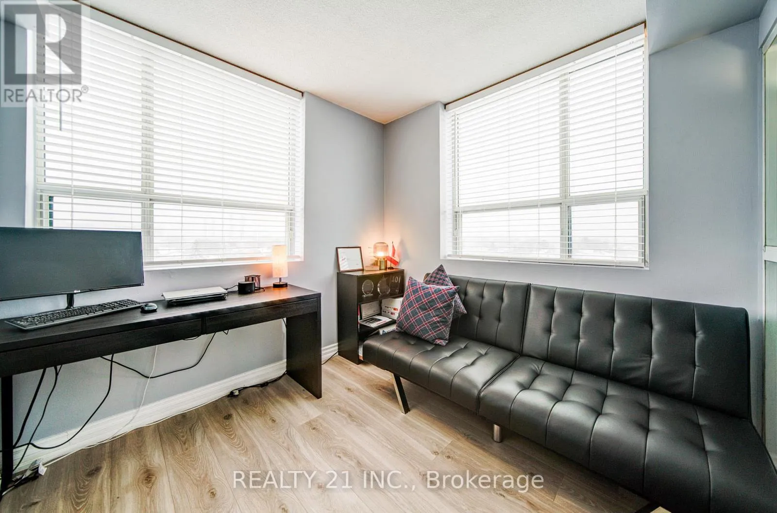 Cross Streets: Brock / Pickering Parkway. ** Directions: Brock/Pickering Parkway. Recently updated with new flooring throughout, this bright and modern corner unit is ideally situated on the quiet side of the building, offering both comfort and privacy. Large windows throughout fill the space with natural light, creating a warm and inviting atmosphere. The home features well-maintained bathrooms with updated fixtures, and a functional kitchen with ample cabinetry and workspace. New baseboards, laminate flooring, and carpet enhance the overall appeal of the unit. This well-maintained building has also undergone recent upgrades, including refreshed hallways with new carpets, doors, lighting, and wall finishes. Conveniently located with easy access to Highway 401, Tim Hortons, major retail stores, parks, Pickering Town Centre, and the Pickering GO Station. Residents enjoy an impressive selection of amenities, including a library, party/meeting room, fitness centre, ping pong room, squash court, indoor pool, hot tub, and sauna. Additional conveniences include visitor parking and two guest suites for overnight stays. Move-in ready, this spacious 2-bedroom plus solarium suite in Emerald Point offers comfort, convenience, and a fantastic location-an ideal place to call home. (id:27476)