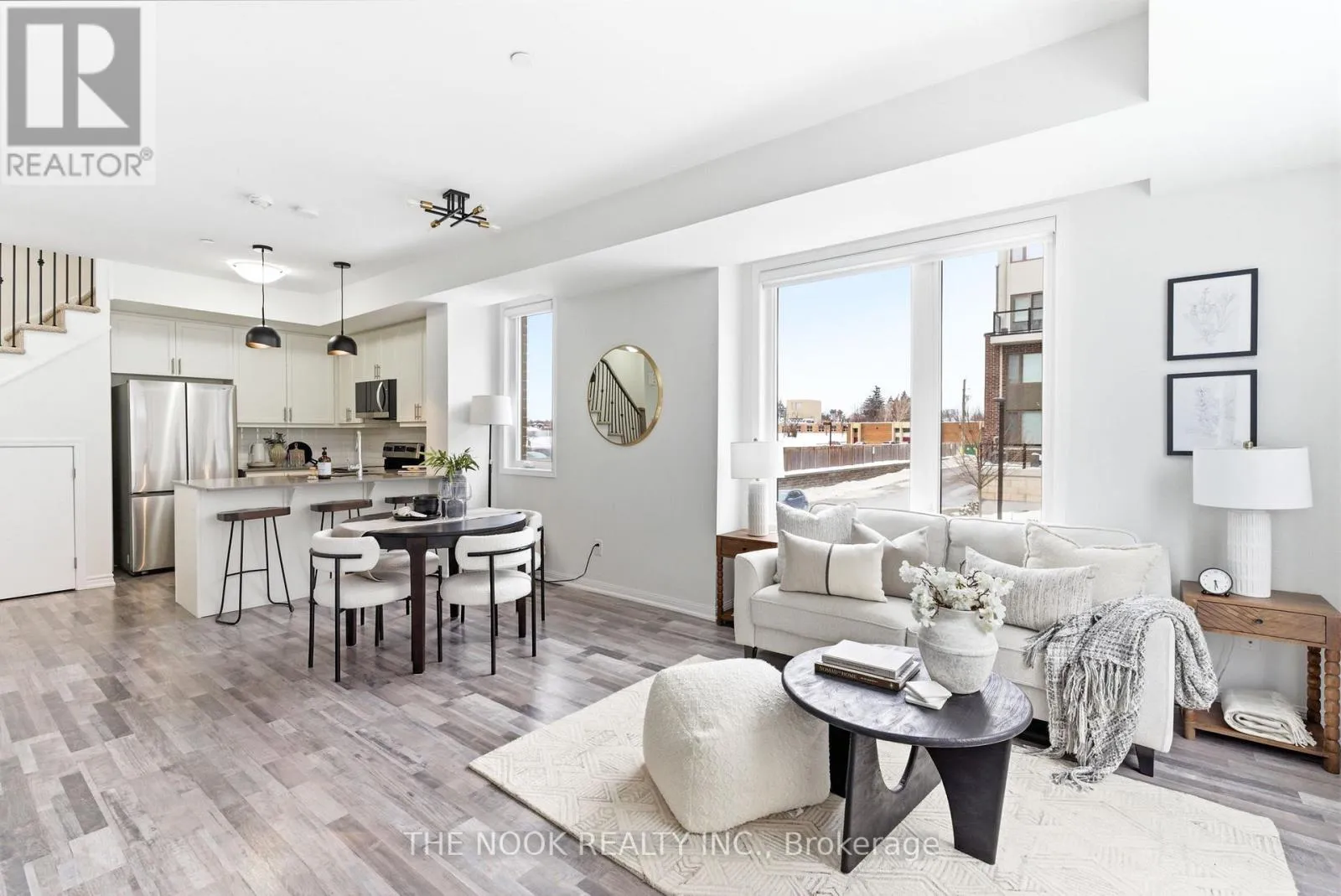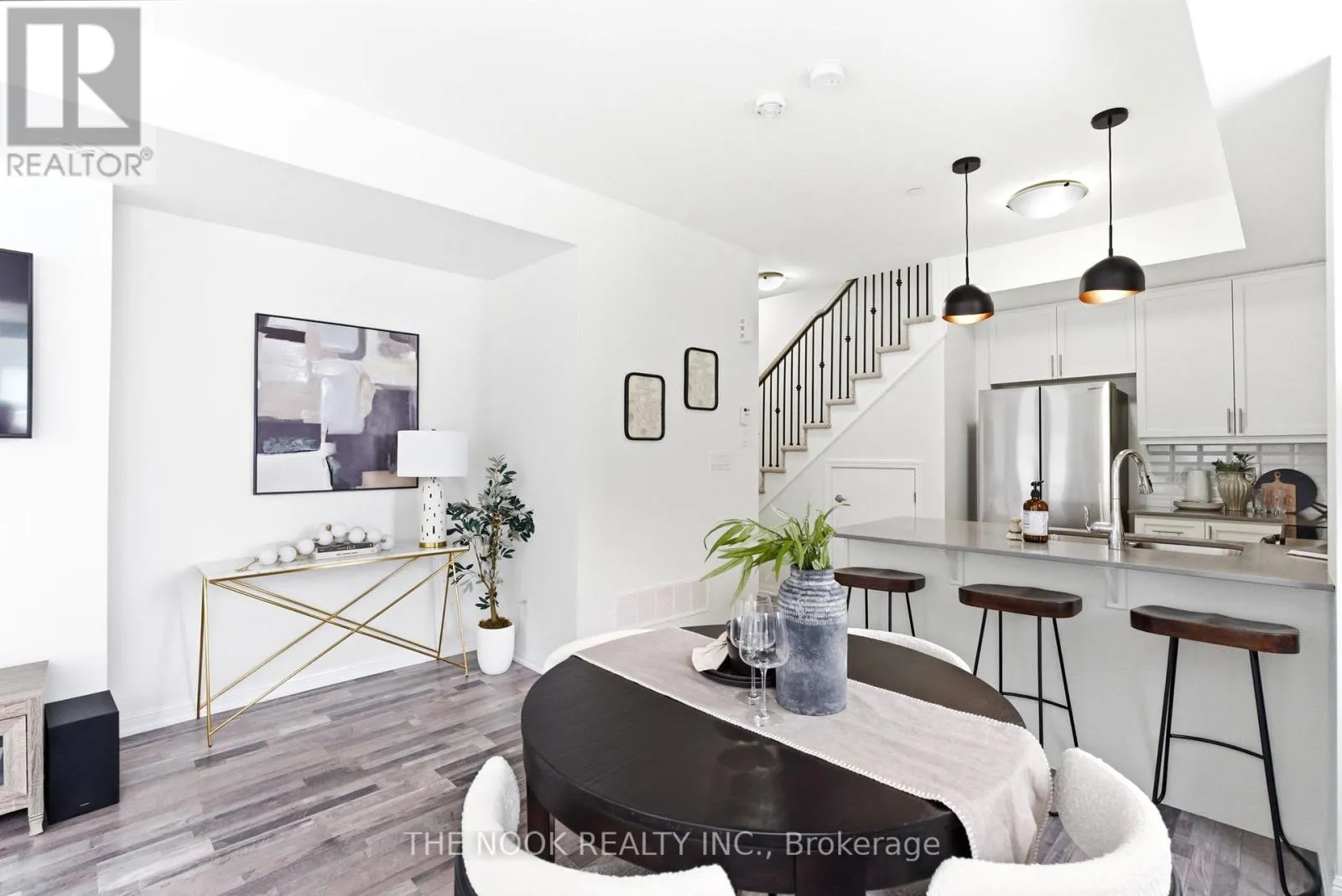 Cross Streets: Whites Road/Kingston Road. ** Directions: North on Whites. Welcome to 1460 Whites Rd, a stunning 2-bedroom, 3-bathroom premium corner townhome offering 1,169 sq. ft. of sun-drenched, modern living in one of Pickering's most desirable communities. Perfect for professionals, first-time buyers or savvy investors, this beautifully maintained residence combines elevated finishes with unbeatable convenience and quick, easy access to downtown Toronto. Step inside to a bright open-concept main floor featuring 9-foot ceilings, gleaming laminate flooring, upgraded stair pickets, designer light fixtures and expansive windows that flood this stunning space with natural light from multiple exposures. The stylish kitchen is the heart of the home, showcasing quartz countertops, upgraded cabinetry, stainless steel appliances, an undermount sink and a breakfast bar that seamlessly flows into the spacious living and dining areas - perfect for entertaining or relaxing. Walk out to your oversized private terrace complete with natural gas BBQ hookup, creating the ideal indoor-outdoor extension of your living space. A convenient main floor powder room adds comfort for guests. Upstairs, enjoy the practicality of second-floor laundry, two generous bedrooms with large closets and beautifully upgraded bathrooms featuring premium tilework and quartz vanities. The primary bedroom offers a spa-inspired 3-piece ensuite retreat, while an additional full 4-piece bathroom serves the second bedroom. This meticulously cared-for home also includes a premium underground corner parking space, located next to the entrance, along with a rare direct access enclosed storage locker directly in front of your parking space for effortless access. Situated in a highly desirable location close to incredible restaurants, shopping, parks, schools, ravines and every amenity imaginable, this is modern, connected living at its finest. A rare opportunity you don't want to miss! (id:27476)
