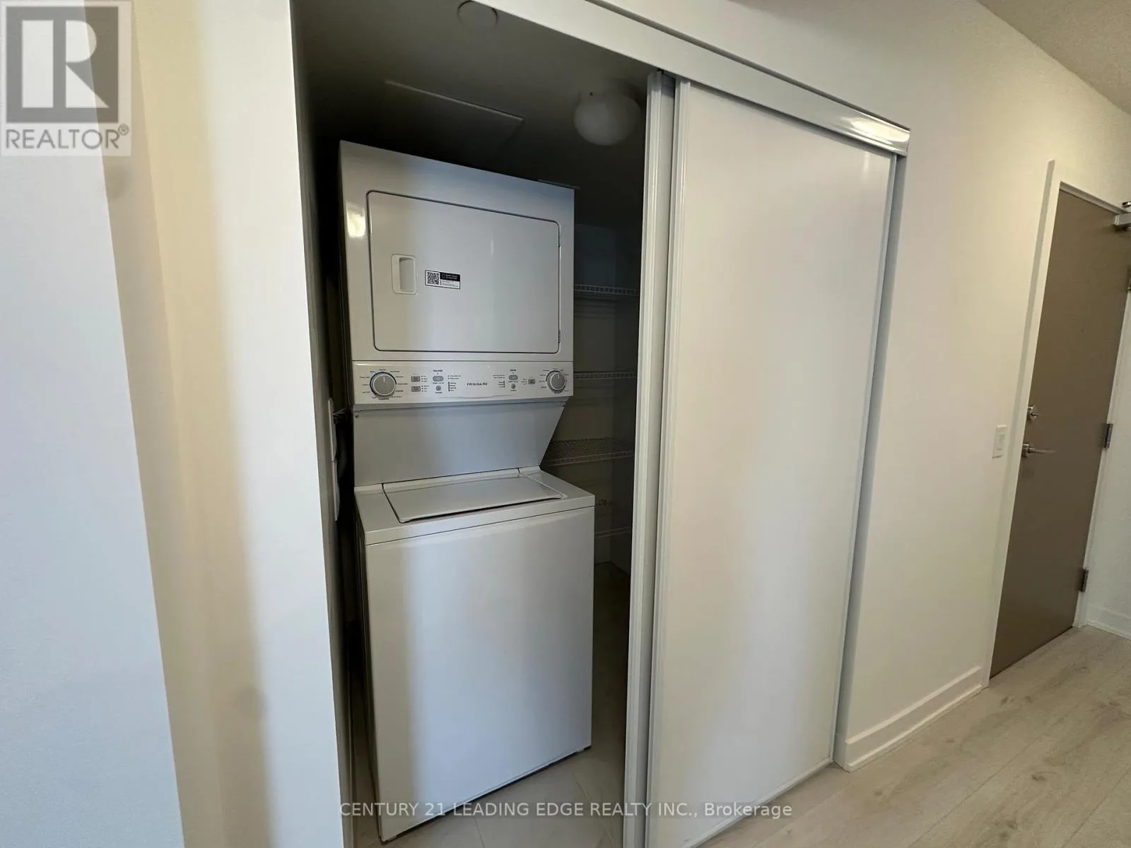 Bayly and Liverpool Must show one of the best south facing corner unit floor plans in this tower. Approx 850 of living space corner unit high ceiling, all floor to ceiling windows for lots of natural light. Step into living and dining combined with direct access to the balcony. tall kitchen cabinets with all S/S appliances, quartz countertop, undermount sink. Light natural colour palette with laminate floors throughout. Primary bedroom with stunning floor to ceiling round windows, double closet space and primary 3-piece bathroom. 2nd bedroom with large window, double closet and direct access to 4-piece bathroom. Ensuite laundry combo. Step out to Balcony with stunning views of the city and lake Ontario. Short walk to Pickering GO station, Pickering town centre, short drive Beach and waterfront trails and Beach park, HWY 401, great schools and shopping. one underground parking included. (id:27476)