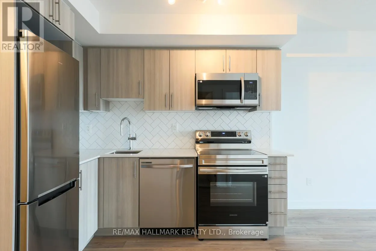 Cross Streets: Bayly Street/Sandy Beach Rd. ** Directions: Baly/Sandy Beach Rd. Welcome to this charming one-bedroom, one-bathroom suite, nestled in the lively Universal City East in the heart of Pickering. Spanning a comfortable 496 square feet, this thoughtfully designed residence also boasts an additional 56 square feet of outdoor space, ideal for savouring the fresh air or sipping your favourite beverage. The suite's north-facing orientation allows for an abundance of natural light to gracefully illuminate the living areas throughout the day, creating a warm and inviting atmosphere. The functional layout of the suite is accentuated by high-quality luxury vinyl flooring that flows seamlessly from room to room, ensuring both durability and elegance. In the kitchen, you'll find soft-closing drawers and contemporary finishes that combine both style and practicality, making it a delight for cooking and entertaining. Strategically located just minutes from the bustling Pickering Town Centre, this location provides convenient access to a variety of shopping and dining options. Transportation is a breeze with the nearby GO Station, which offers a quick 30-minute commute to Union Station in downtown Toronto. Additionally, outdoor enthusiasts will appreciate the picturesque waterfront trails that invite exploration of the area's natural beauty. With easy access to major highways, this residence strikes a perfect balance between comfort, style, and accessibility. This exceptional opportunity for urban living in a vibrant community is not to be overlooked. Tenant pays for water, hydro, and heat pump. (id:27476)