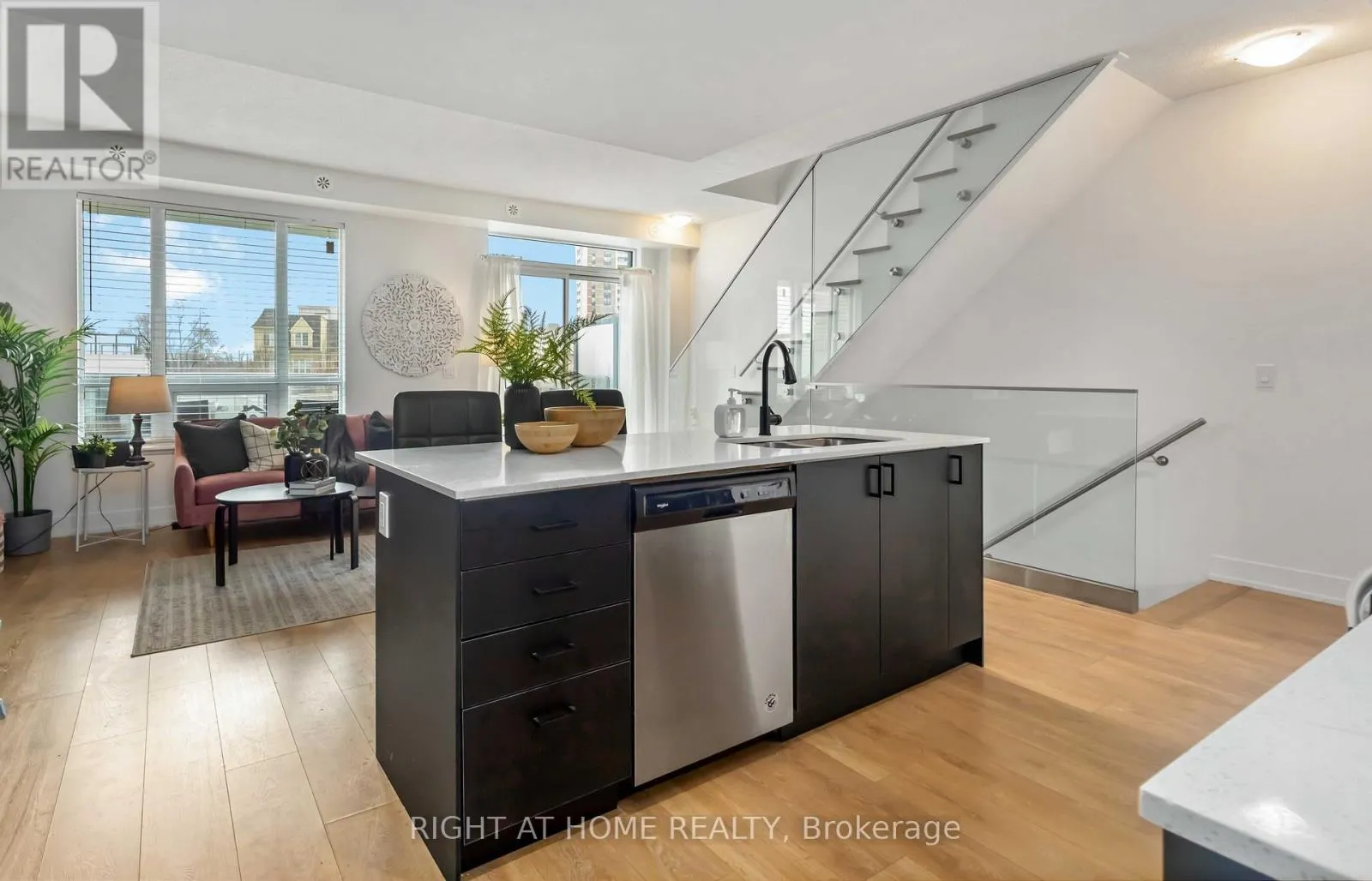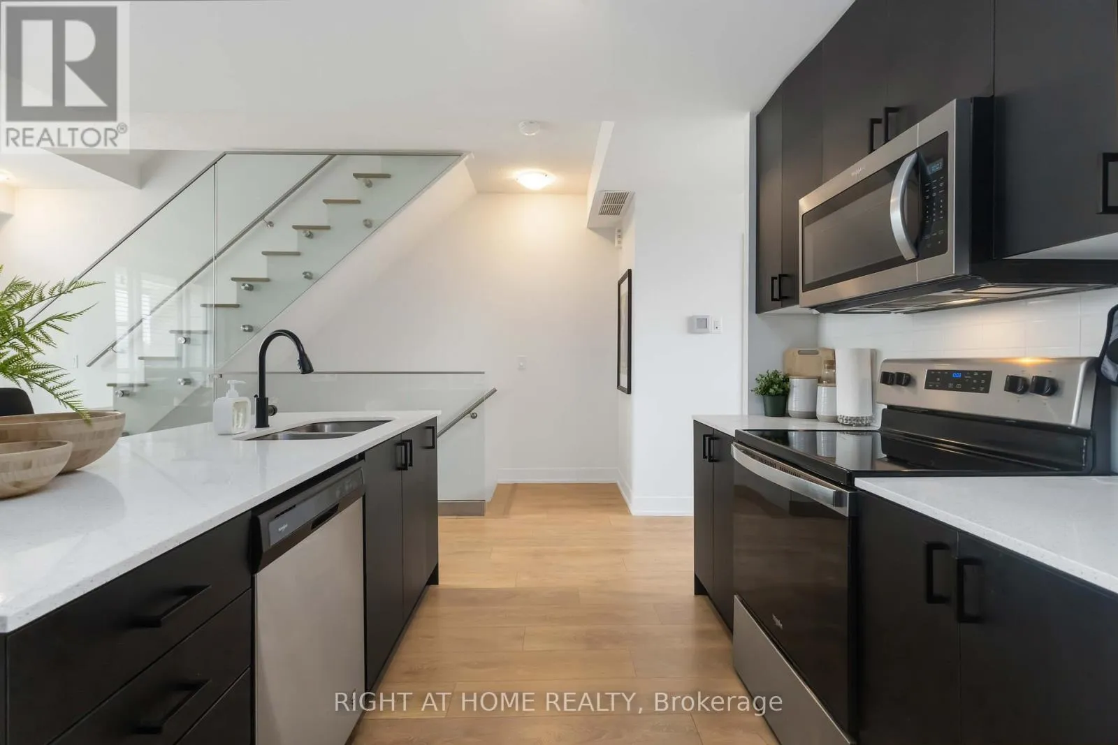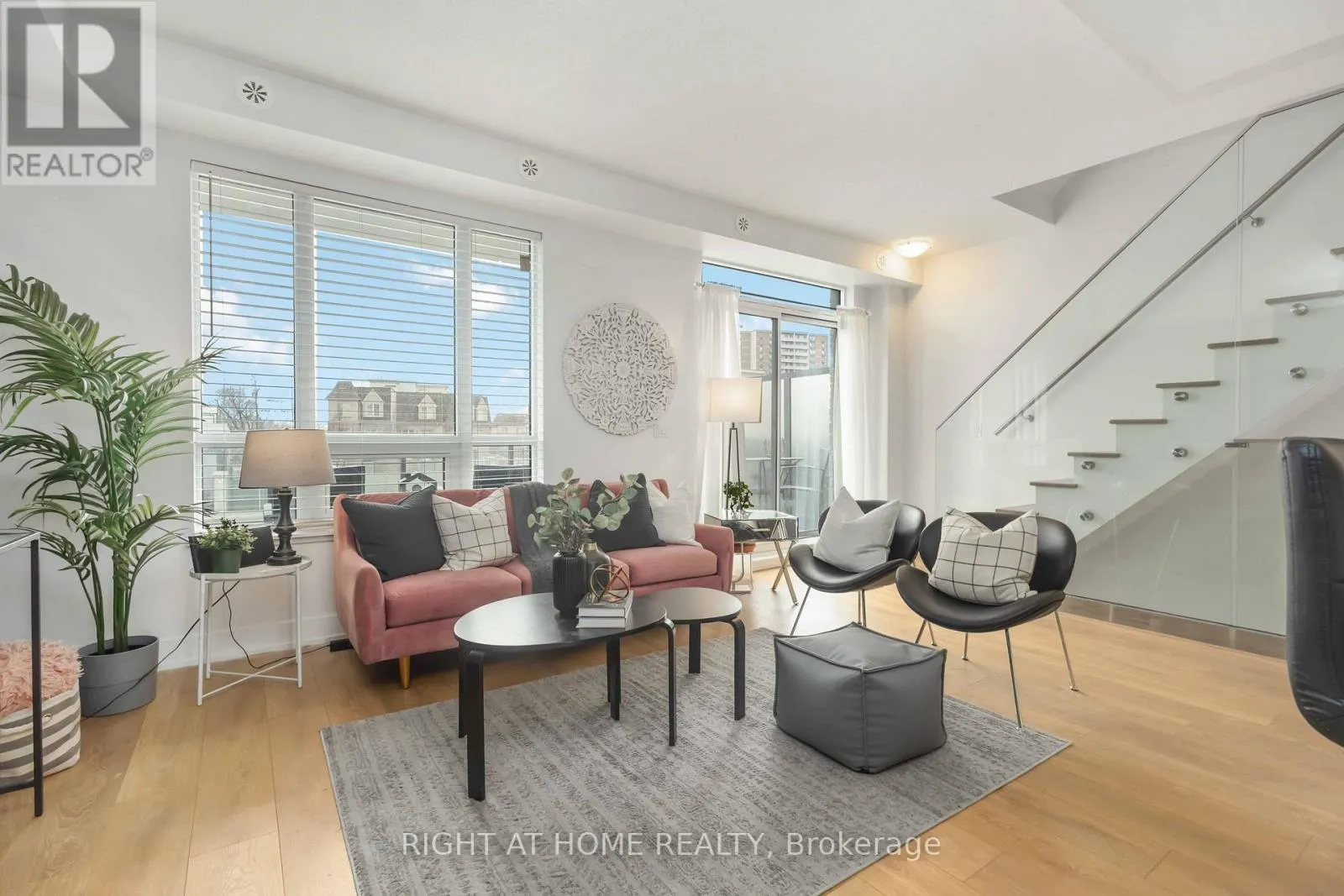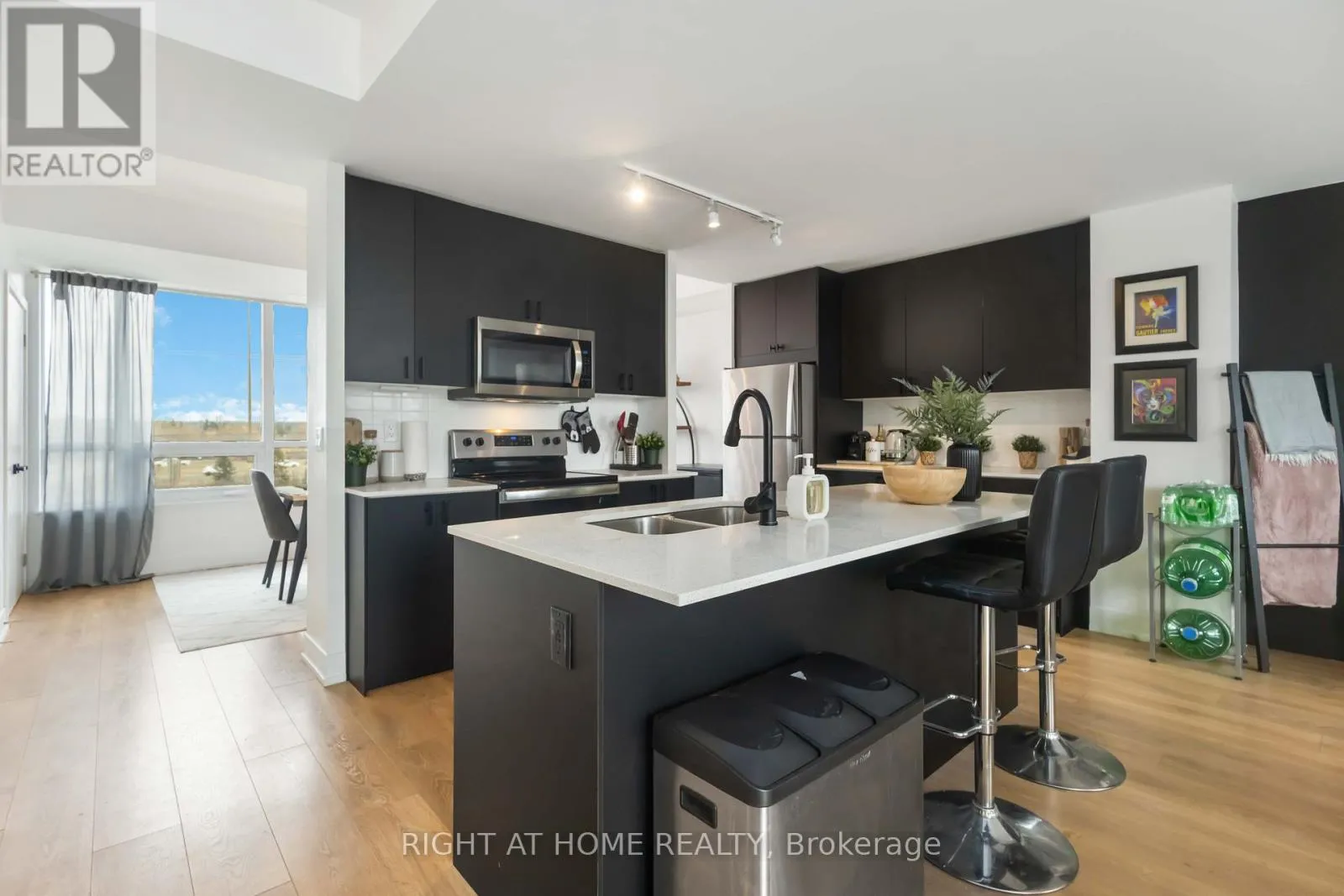 Liverpool/Bayly Modern style, resort-inspired amenities, and a location that puts everything within reach. This townhome feels less like a property and more like your own urban retreat. The South Beach-influenced 3-bed, 3-bath layout features a bright open concept kitchen featuring sleek black cabinetry (2025), stainless steel appliances, and a spacious centre island perfect for gathering or cooking. The open concept main floor creates an easy flow from the kitchen to the dining area as well as to the bright living room with modern finishes and is filled with natural light and a walkout to a private deck. The main floor powder room was recently updated (Dec 2025), Upstairs, the primary bedroom includes a 3-piece ensuite and a wall-to-wall closet. The second bedroom has its own balcony, while the third bedroom offers flexibility with other uses such as a home office, nursery, or guest room. When you're ready for some outdoor time, the rooftop terrace delivers..It's ideal for hosting friends, morning coffees, unwinding after work, or taking in panoramic views of the skyline and the surrounding neighbourhood. Monthly fees include Rogers Ignite TV & Internet as well as use of the community amenities including a full fitness centre (no expensive gym membership required), an outdoor pool with lounge areas, BBQ area, party/meeting room, guest suite, and more. The location is a standout being only minutes to Pickering GO, Highway 401, and Pickering Town Centre, with waterfront parks, trails, and the marina close by. Restaurants, shops, schools, and daily conveniences are all within easy reach. Whether you're moving up, scaling down, or simply craving a blend of comfort, style, and convenience, this home delivers it all-move-in ready and waiting for its next chapter. (id:27476)