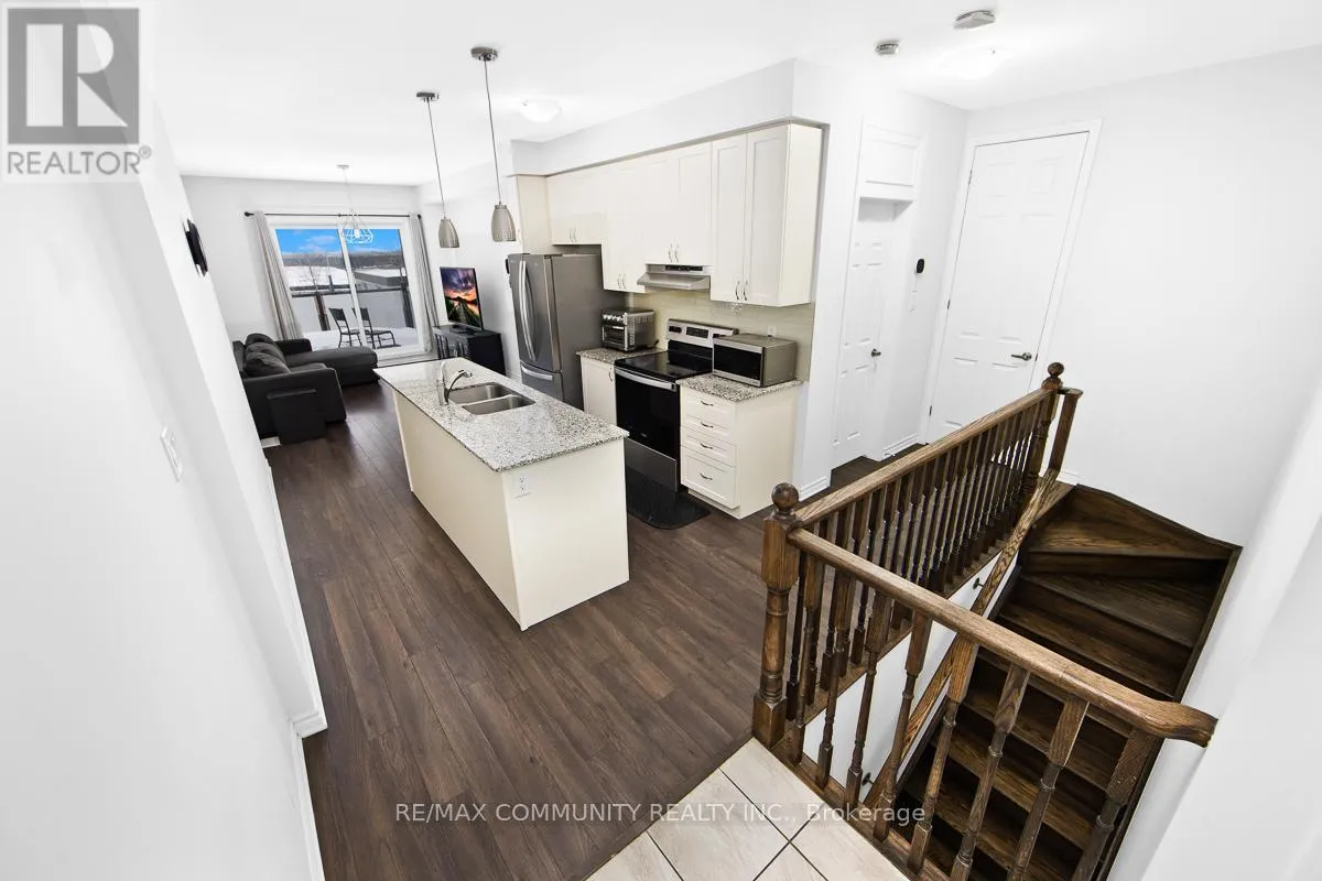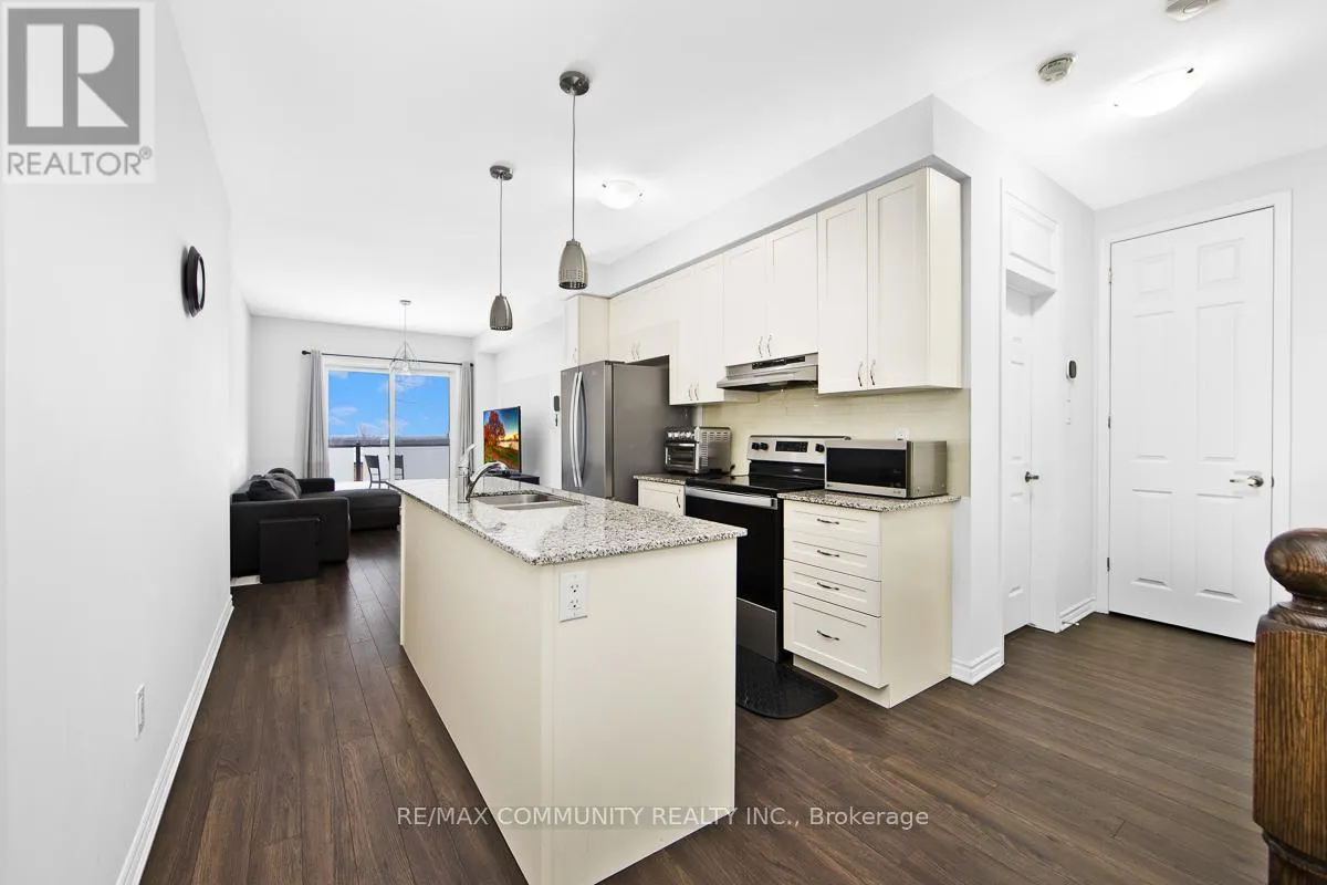 Taunton Rd and Burkholder Dr Welcome to this bright and beautifully maintained stacked townhouse in desirable Pickering.Offering approximately 1,190 sq. ft. of finished living space (859 sq. ft. above grade plus 333sq. ft. lower level as per MPAC), this home delivers comfort, functionality, and modern style.The open-concept main level features 9-foot ceilings, laminate flooring throughout, and acontemporary kitchen with granite counters overlooking the living and dining area. Walk out toyour private terrace, ideal for relaxing or entertaining.The main level includes a spacious primary bedroom with a 3-piece ensuite, a second bedroom,and an additional 4-piece bathroom. The finished lower level offers a third bedroom with itsown 3-piece ensuite, providing excellent privacy for guests, extended family, or a home officesetup.Includes attached garage with inside entry plus driveway parking (2 total spaces). Lowmaintenance fees of $312.63/month cover common elements and building insurance.Conveniently located near Taunton Rd & Burkholder Dr, close to schools, parks, shopping,transit, and major highways. Perfect for families, first-time buyers, or investors seeking aturnkey opportunity in a growing community.(Listing Photos Are Illustrated With Virtual Staging). (id:27476)