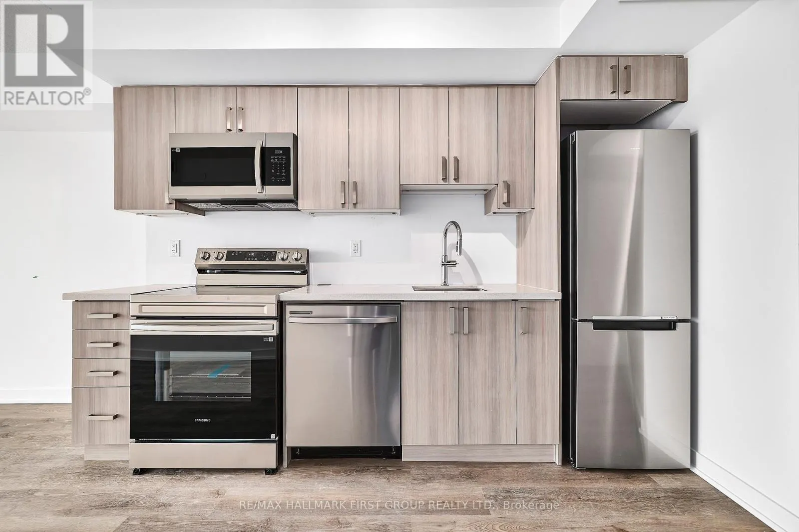Cross Streets: Liverpool RD./ Bayly St. ** Directions: east on bayly st from Liverpool rd, turn left ontoSandy Beach Rd. Step into modern living with this brand new, never-lived-in 1-bedroom, 1-bathroom condo in Pickering's newest condominium building. Designed with a sleek, carpet-free interior, the unit features durable vinyl flooring throughout and a bright, open-concept layout that maximizes both space and natural light. The contemporary kitchen is beautifully finished with quartz countertops, stainless steel appliances, and elegant under-cabinet lighting-perfect for everyday living and entertaining alike. Situated on a high floor, the unit boasts unobstructed east-facing views with additional south views toward Lake Ontario. The spacious bedroom features floor-to-ceiling windows that flood the space with natural light and showcase the beautiful eastern exposure. Residents enjoy access to exceptional building amenities including a fully equipped gym, pet spa, three outdoor patios, an outdoor pool with rooftop terrace, and two party rooms-perfect for entertaining or relaxing. Ideally located just steps from Pickering GO Station and Pickering Town Centre, with the Pickering waterfront and Frenchman's Bay only a short drive or a 15-minute walk away. This is a fantastic opportunity to enjoy brand-new condo living in a vibrant and convenient community. (id:27476)