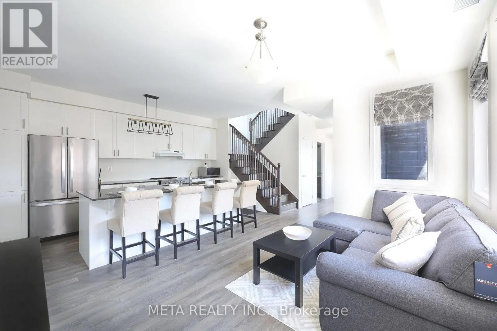 Cross Streets: Taunton Rd and Burkholder Dr. ** Directions: Head east on Taunton Rd, turn right onto Burkholder Dr, then take the first right to Dragonfly Ave. Turn right onto Dormer Ave. The destination is on your right in the second row of stacked condos. Welcome to this rarely offered premium-sized 1,794 sq. ft. stacked condo townhome in Pickering's sought-after Seaton community, built by Mattamy. This corner unit offers a functional 3-bedroom plus builder-plan home office and 3 bathrooms, thoughtfully upgraded for modern comfort, generous living space, and exceptional commuter convenience. Main floor features an inviting open-concept design with 9ft ceilings that create a bright, airy atmosphere. The upgraded kitchen stands out with its large island, stainless steel appliances, contemporary cabinetry, and ample storage-ideal for daily living and entertaining. This space flows into the dining and living areas and opens to a private balcony. Main floor features an office, offering privacy for remote work or study. A rare main-floor bedroom with a walk-in closet provides valuable flexibility for guests or multi-generational living. The upper level includes two spacious bedrooms, each with a private ensuite and walk-in closet. The primary suite offers dual walk-in closets. A dedicated laundry room with a sink and storage enhances functionality, and a second private balcony completes the floor. The property is minutes from Highways 401, 407, 412, and the Pickering GO Station, ensuring seamless connectivity across the GTA. With highly rated public schools nearby, this neighbourhood offers an ideal environment for your children to learn and grow. Grocery stores, parks, and scenic trails are all close by, with the Seaton community continuing its strong growth. Additional upgrades include smart lighting controls, an Ecobee smart thermostat, premium main-floor lighting, and efficient under-stair storage. Parking features an EV-ready garage plus a private driveway. Condo fees cover snow removal for pathways and roads. This turnkey home blends contemporary design, functional enhancements, and an unbeatable location-offering an excellent opportunity in one of Pickering's most desirable communities. (id:27476)