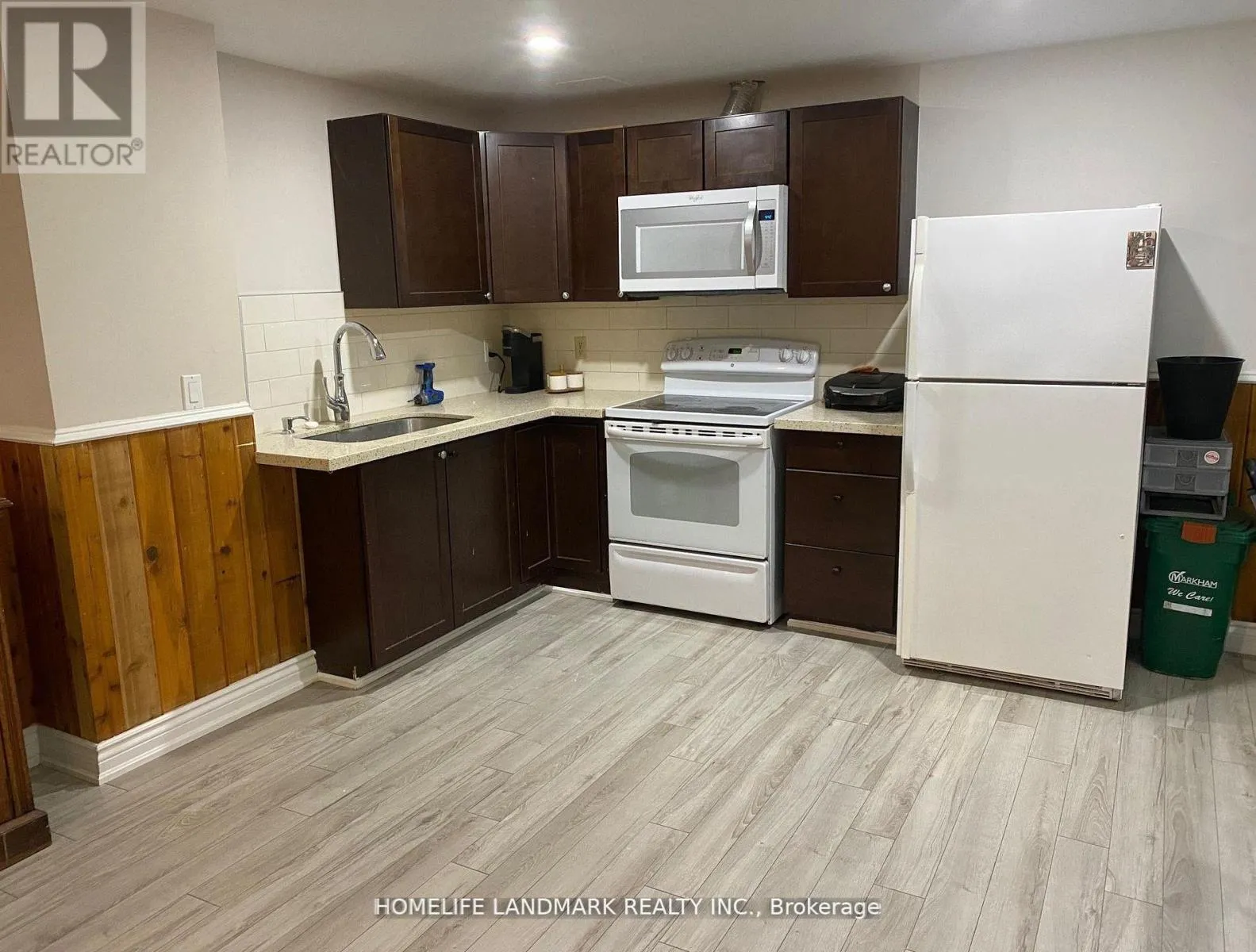 Whites And Finch/New St Large 1-bedroom basement apartment with all utilities included, located 2 houses away from the highly rated Gandatsetiagon Public School. Features renovated hardwood flooring and new large window in the bedroom. Includes a fully renovated 4-piece bathroom with private en-suite laundry. Open concept layout with a direct walk-out private entrance. One driveway parking spot included. Landlord high speed internet included. (id:27476)