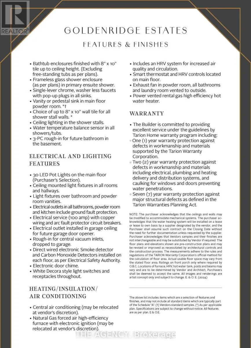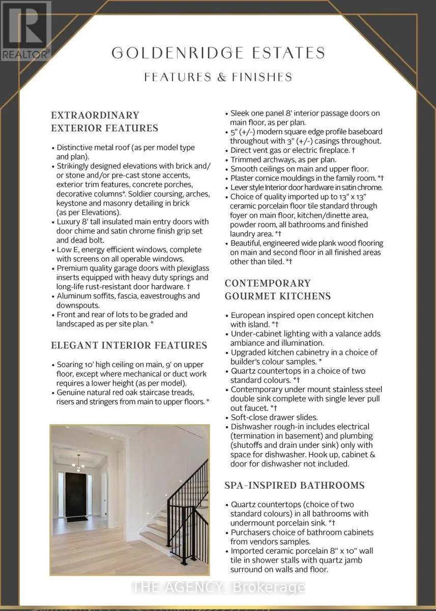 Fairport & Dunbarton Introducing Goldenridge Estates, an exclusive luxury enclave by Forest Meadows Developments, a Tarion registered builder known for crafting high-quality custom residences. Located in one of Pickering's most desirable neighbourhoods, this boutique development offers a limited release of only three premium 52 ft estate lots, part of an exclusive collection of just seven homes within the community. Homes on the 52 ft lots feature larger executive designs with floorplans up to approximately 3,800 sq.ft., offering expansive living spaces and elevated architectural details ideal for modern luxury living. Homes include European-inspired chef kitchens with oversized centre islands, quartz countertops, walk-in pantries and custom cabinetry, spacious great rooms designed for entertaining, 10 ft ceilings on the main level and 9 ft ceilings on the upper level, smooth ceilings throughout, engineered wide plank hardwood flooring, and natural red oak staircases. Bedrooms are designed with walk-in closets and private ensuite or semi-ensuite bathrooms, while primary suites feature spa-inspired bathrooms with quartz counters and glass showers. Basement will include 9 ft ceilings. Additional features include 30 LED pot lights on the main floor (purchaser's choice of placement), smart thermostat, HRV air circulation system, high efficiency furnace and full central air conditioning. Exterior elevations showcase premium brick and stone finishes with metal roof accents, energy efficient windows and designer front entry doors. Buyers will have the opportunity to customize interior finishes from the builder's curated design selections. Price, floorplans and elevations vary by lot. Closing to start fall of 2026. (id:27476)