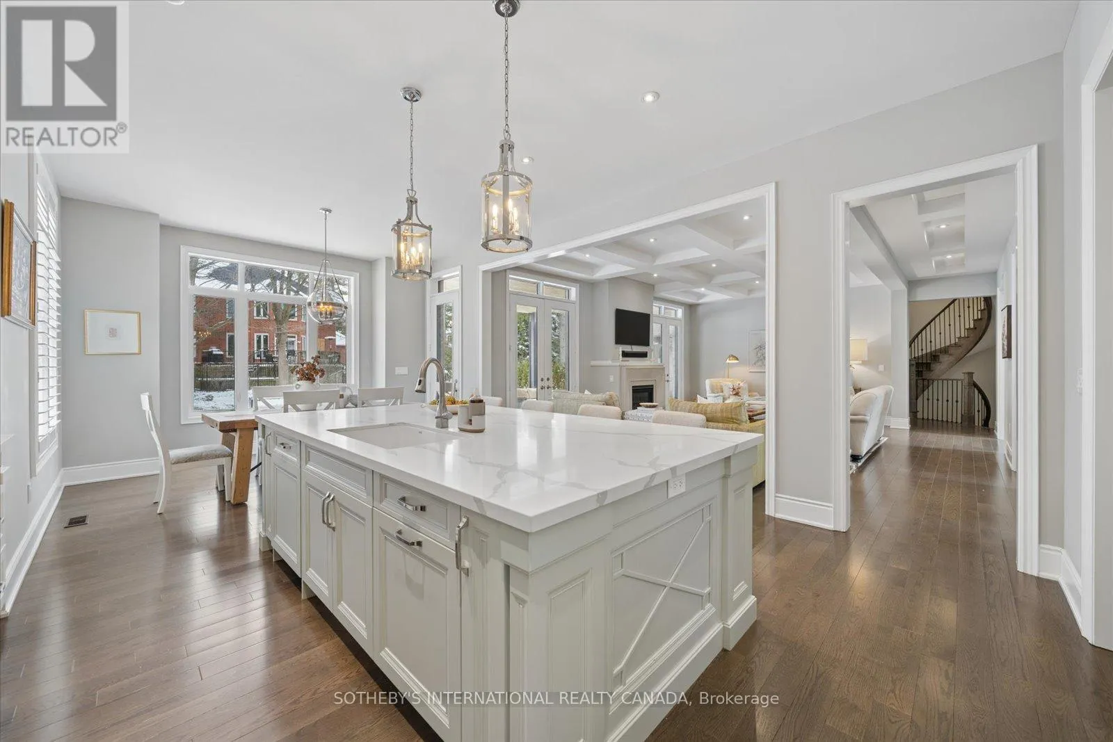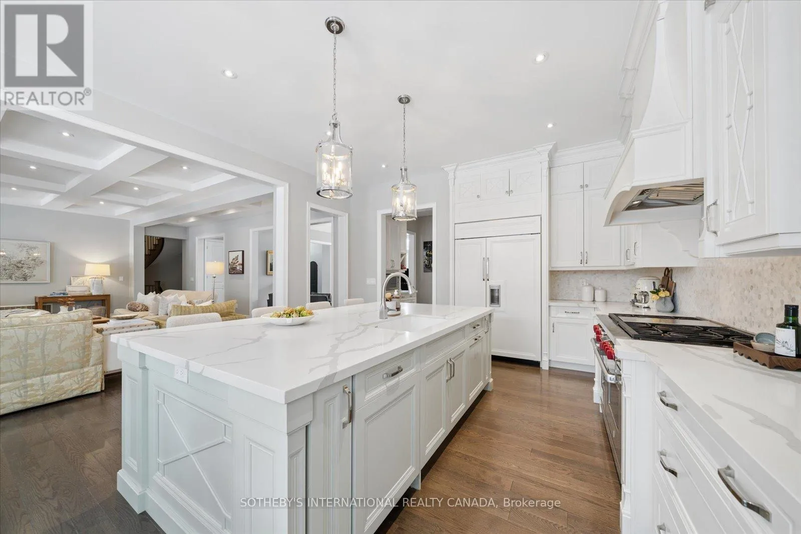 Cross Streets: Twyn Rivers and Altona. ** Directions: Altona to Twyn Rivers Drive to Woodview Drive. Coveted Woodview Drive cul-de-sac, 5-bedroom, 6-bathroom built in 2018, 4,700 sq. A .45-acre lot, circular driveway +3-car garage. Gourmet kitchen with centre island, walk-in pantry, quartz. Wolf 6 burner range, dual ovens, Sub-Zero Fridge/Freezer. Great room with coffered ceiling and gas fireplace, creating a warm and inviting atmosphere for gatherings. An elegant formal dining room, currently showcasing a grand piano and club seating, features a sophisticated coffered ceiling. A main floor office with built-in cabinetry provides a dedicated and organized workspace and is bathed in natural light. Versatility is key with a convenient main floor bedroom and ensuite, offering a separate entrance ideal for guests or multi-generational living. Thoughtful design extends to two spacious mudrooms with ample storage, seating, walk-in closets, and direct garage access.Upstairs, the primary retreat is a sanctuary of luxury. The opulent ensuite bathroom features a large edgeless glass shower, a freestanding soaker tub, double vanity, and a separate water closet. Expansive walk-in closet with cabinetry, an island, seating, and a window. The upper level also hosts three additional spacious bedrooms, each with an ensuite bathroom and large closets, plus a well-appointed laundry room.Two staircases lead to the expansive lower level, offering immense potential with rough-ins for two full bathrooms and a powder room. Experience seamless indoor-outdoor living with a large covered porch featuring a wood ceiling, pot lights, chandeliers, a stone patio with a gas fireplace - perfect for lounging and dining. The beautifully landscaped, fully fenced yard provides a private sanctuary with a side entrance, dog run, garden shed and convenient outdoor hot/cold water hook-ups and irrigation system. Engineered for efficiency with 2 furnaces/ air conditioners and HRV. Enjoy services & amenities only minutes away. Hwy 401, 407 & GO Train. Rouge Valley Park short walk away. (id:27476)