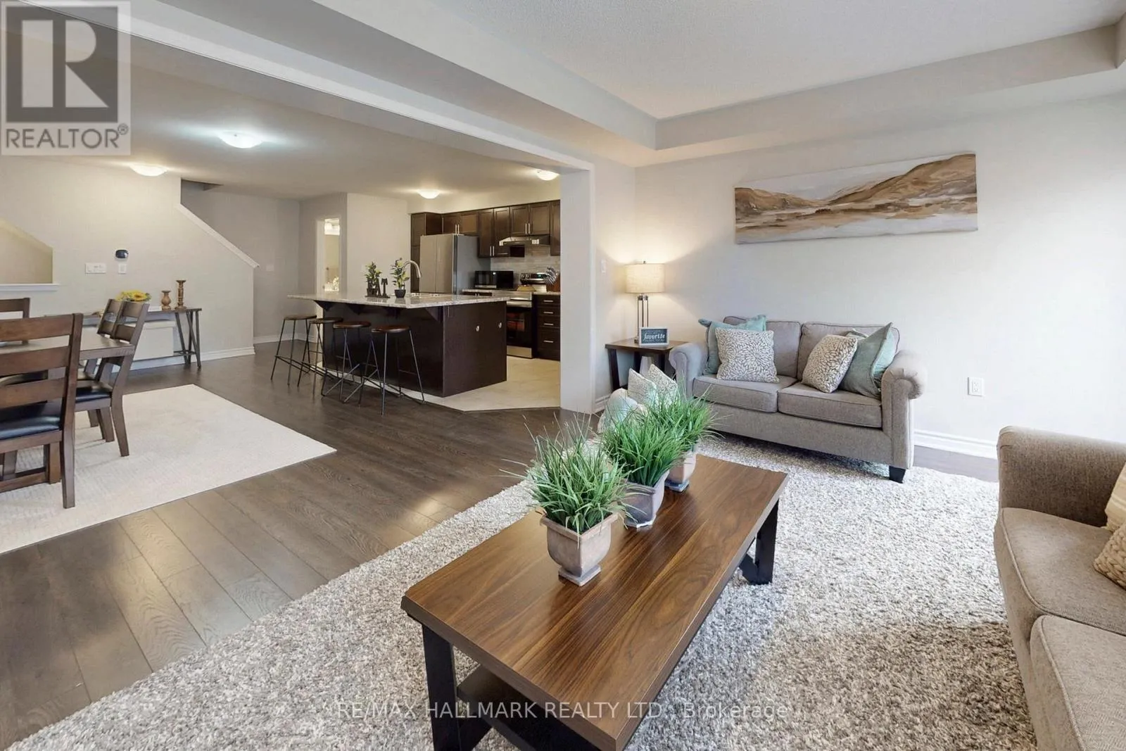 Taunton & Whites Rd What's the best starter home in Pickering near Highway 407 with modern finishes and zeromaintenance? This is it.Welcome to 2421 Fall Harvest Crescent in Pickering. A beautifully maintained 3-bedroom, 3-bathroom, 3-storey townhome located in one of Pickering's fastest-growing, family-friendlycommunities. Freshly painted and thoughtfully upgraded, this move-in-ready home offers theperfect blend of style, function, and convenience.Step inside to a bright, open-concept layout featuring rich hardwood flooring, California-styleshutters throughout, and oversized windows that fill the space with natural light. The modernkitchen boasts upgraded appliances, ample cabinetry, and a spacious breakfast bar, perfectfor both entertaining and everyday living. The seamless flow into the dining and living areascreates a warm, inviting atmosphere.Upstairs, you'll find three generously sized bedrooms, including a comfortable primaryretreat with large windows and plenty of closet space. With three well-appointed bathroomsand a smart layout, this home maximizes space without compromise.Enjoy the convenience of a 1-car garage, 2 driveway parking spaces, a storage locker, and anewly updated stone walkway. Relax on your private balcony overlooking a vibrant, growingneighbourhood filled with newer homes and a strong sense of community.With no basement and minimal exterior maintenance, this home is ideal for busyprofessionals, young families, or first-time buyers seeking low-maintenance living.Located minutes from Highway 407, with easy access to parks, schools, shopping, andeveryday amenities.Lovingly maintained and offered due to relocation, this is your opportunity to own a turnkeyhome in a high-demand Pickering neighbourhood.Homes like this don't last. (id:27476)