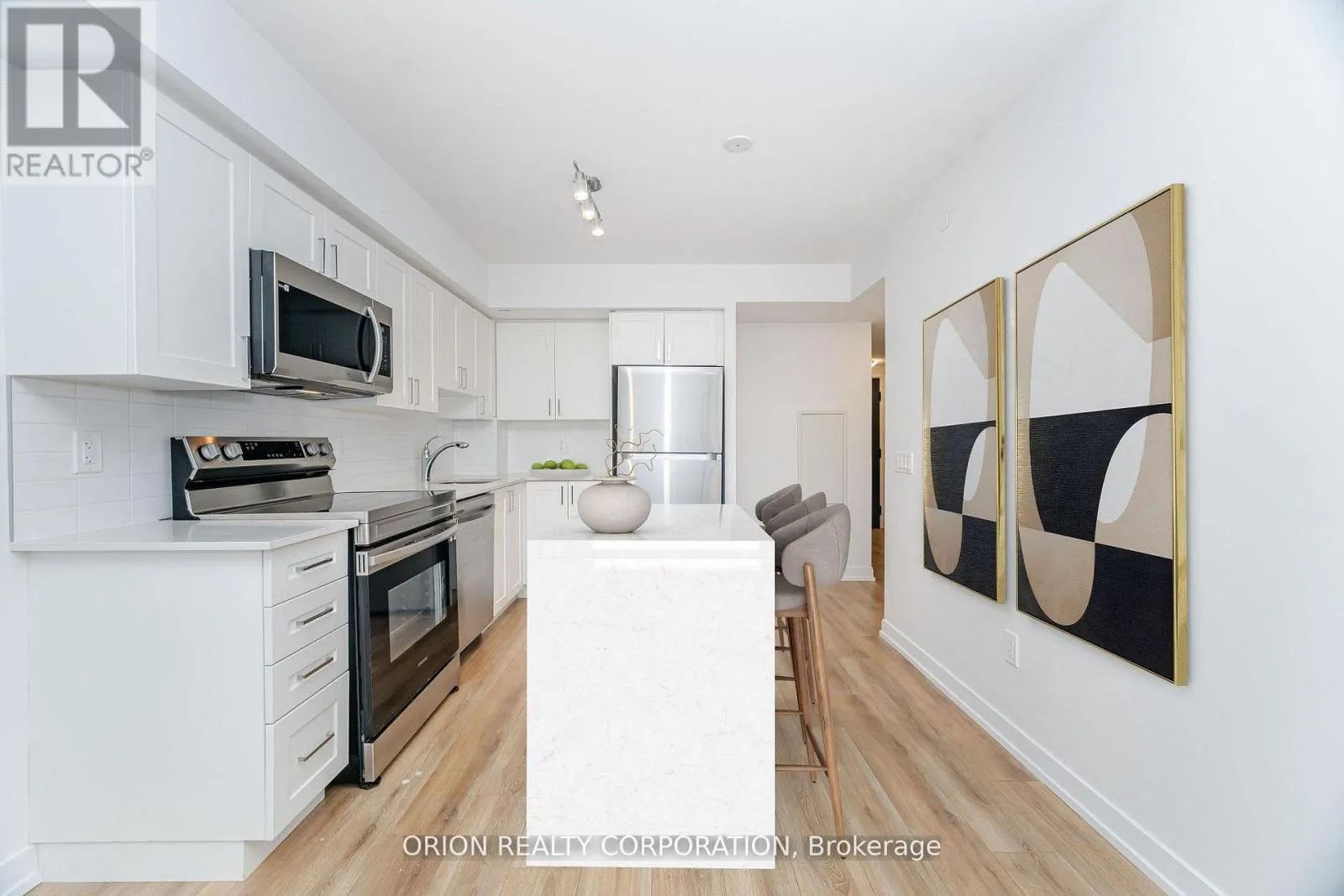 Bayly/Liverpool Fantastic Location! Spacious 1 Bedroom + Large Den + 2 Full Bathrooms (695 SqFt).This bright and airy unit features a versatile den that can easily be used as a second bedroom or home office, along with 2 full bathrooms for added convenience. Enjoy stylish upgrades throughout, including a sleek white kitchen and modern light oak flooring that adds warmth and elegance. Includes 1 parking space. Perfectly situated just minutes from the beautiful Frenchman's Bay waterfront, scenic trails, and vibrant Downtown Pickering. Walking distance to the GO Station, and close to Durham Live Casino, Pickering Town Centre, grocery stores, restaurants, and Highway 401.Located in a well-maintained, contemporary building with excellent amenities, a must-see opportunity in a highly desirable area (id:27476)