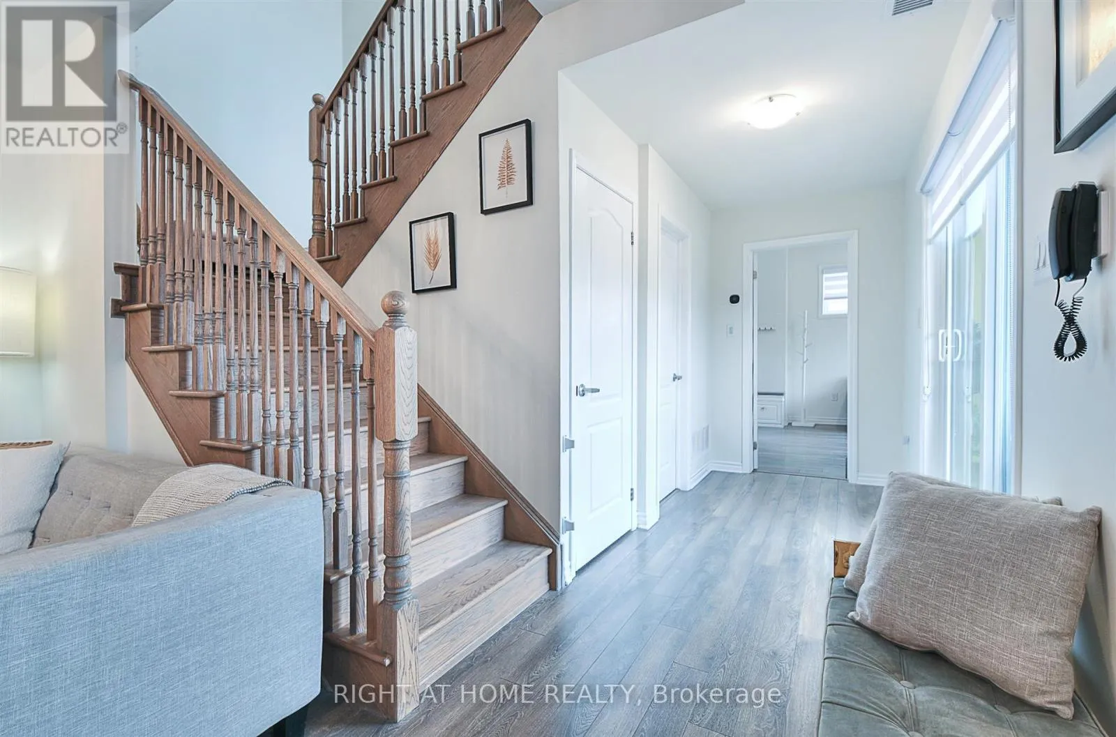 Cross Streets: Taunton Rd/Whites Rd. ** Directions: Comming from Scarboro on Taunton, turn right at Sapphire Drive to Dragonfly Ave. Stunning 2-level end-unit stacked condo townhouse with 1,715 sq. ft. of space by Mattamy Homes. Features 3 bedrooms (plus his and hers closets), 3 full bathrooms, 9-ft ceilings, and open-concept layout. Upgraded kitchen with granite counters, oversized island & stainless steel appliances. Laminate on main floor, upgraded oak stairs, and upgraded blinds throughout home. Over $13,000 in upgrades. Enjoy 2 balconies with unobstructed views. 3 separate entrances incl. direct garage access. One bedroom with private side entry-ideal for rental potential. 2 parking spaces (1 garage).Close to schools, parks, trails, Hwy 401/407 & all amenities. (id:27476)