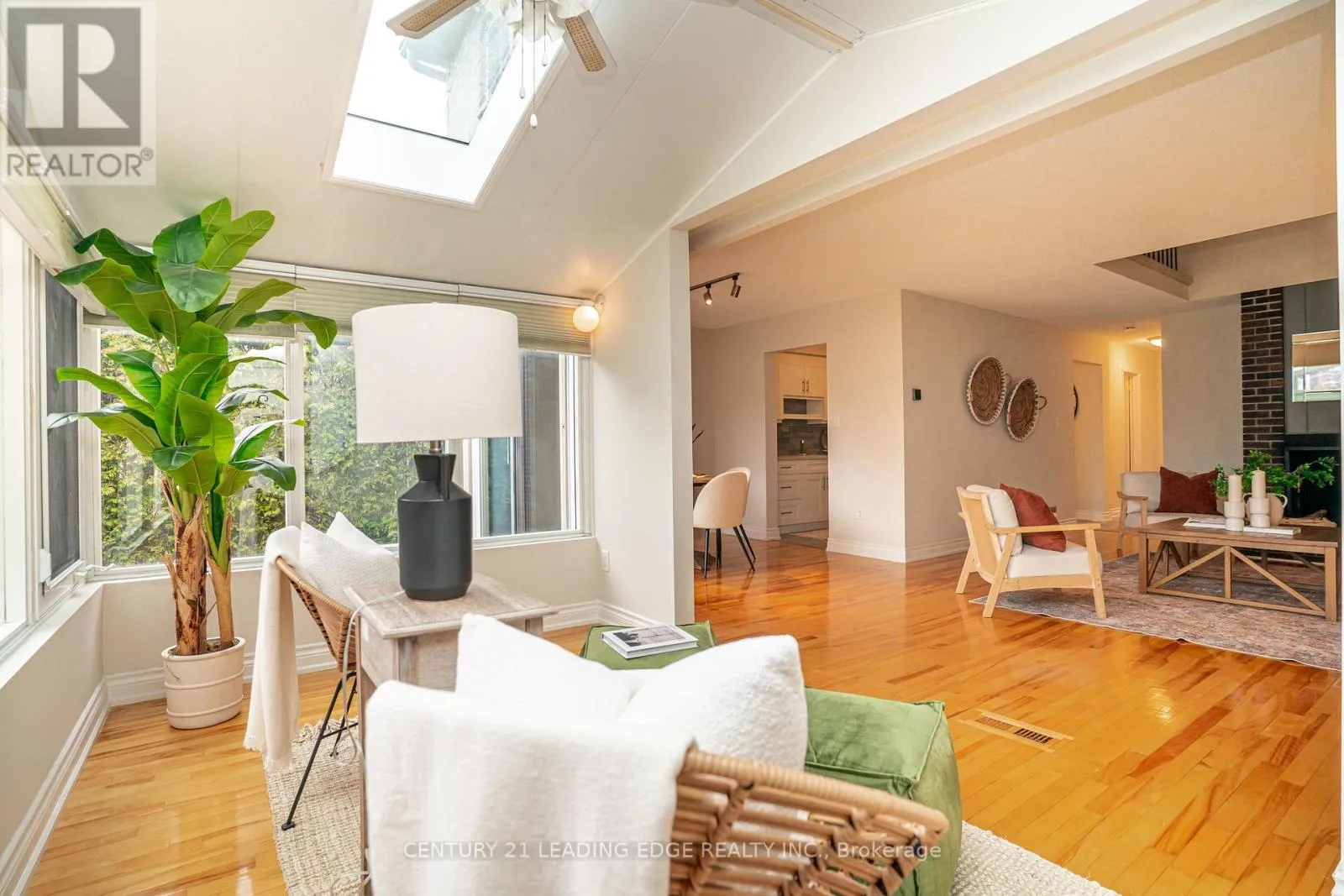 Glenanna rd and Dixie rd Welcome to your ideal family home, nestled in a quiet, sought-after Pickering neighbourhood. This beautifully maintained 3-bedroom, 2-bath semi-detached gem offers a perfect blend of comfort, style, and modern functionality. Step inside and be greeted by a bright, open-concept main floor, with a fully updated modern kitchen and a spacious living room with a fireplace. Relax in the sunroom that is overlooking the backyard.Upstairs, you'll find three generous bedrooms(which one has it's own balocy) and a thoughtfully designed layout. A standout feature is the versatile upstairs landing, currently set up as a cozy sitting room or reading nook, ideal for relaxing with a book or enjoying quiet mornings with coffee. Step outside to your private backyard. This fully fenced yard offers a tranquil retreat with mature trees, perfect for summer gatherings or serene evenings under the stars. Close proximity to top-rated schools, parks, transit, and shopping. Don't miss this opportunity to own a stylish and inviting home in one of Pickering's most desirable communities! Upgrades: New kitchen, Upper deck (2025), Roof(2024), new carpet upstairs, freshly painted throughout. A/C & furnace(2013) (id:27476)