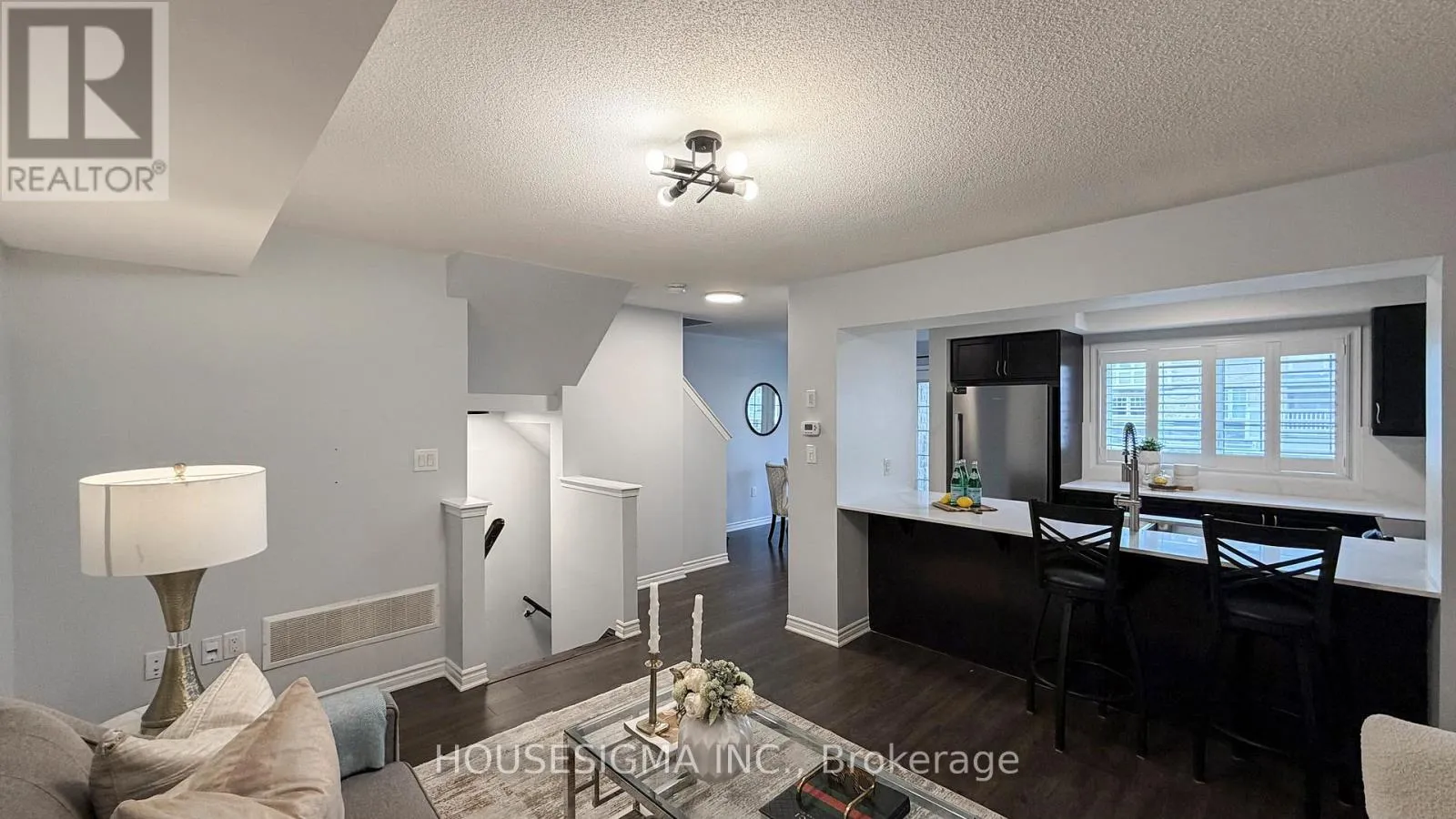 Cross Streets: Whites/Taunton. ** Directions: South on Sapphire Dr, Right on Dragonfly Ave, Right on Toffee St, Left on Silk St. Mattamy Built Freehold Townhouse In Desirable Community Of Seaton.This beautifully maintained freehold townhome offers 2 bedrooms, 3 bathrooms, and a functional layout with no maintenance or POTL fees to worry about. Freshly painted and move in ready, this home is perfect for comfortable everyday living.The main level features a bright, open concept design with a modern kitchen complete with quartz countertops, a stylish backsplash, and stainless steel appliances. Throughout the home, California shutters add a timeless and elegant touch.Upstairs, you'll find two spacious bedrooms and the convenience of upper floor laundry. Step out from the dining area onto a covered deck, ideal for relaxing or entertaining in any weather.Additional highlights include a long driveway with parking for up to 3 cars, along with a private and practical layout that suits both families and downsizers alike.Located close to schools, parks, shopping, and major highways, this home offers the perfect balance of comfort and convenience. (id:27476)
