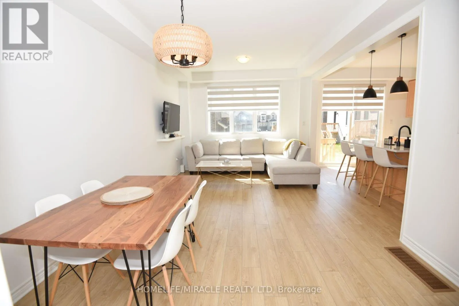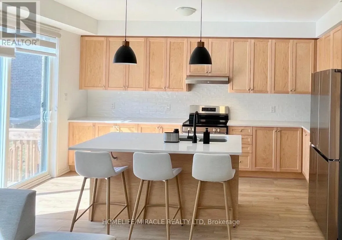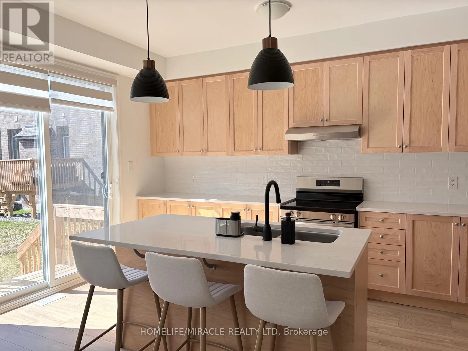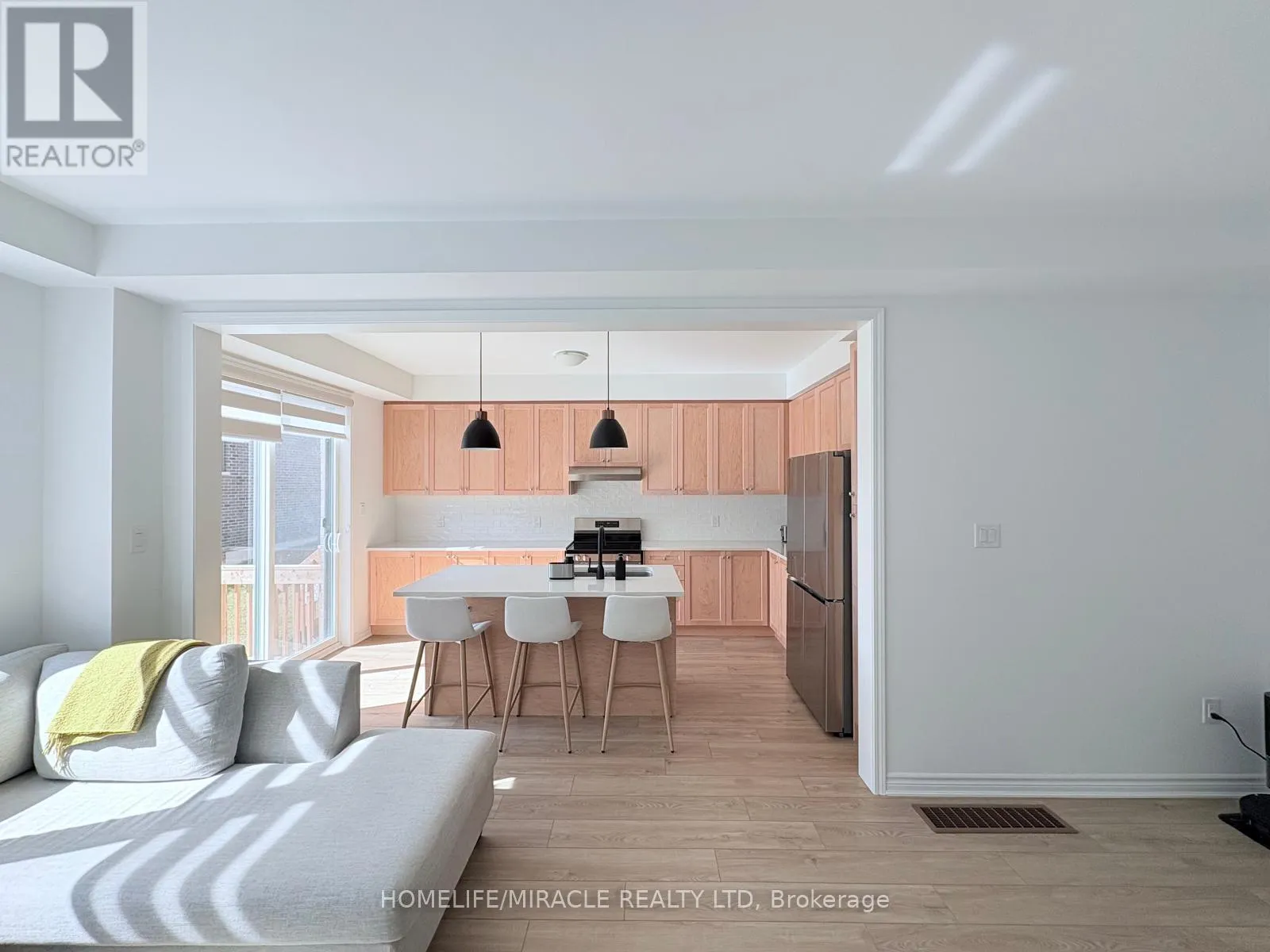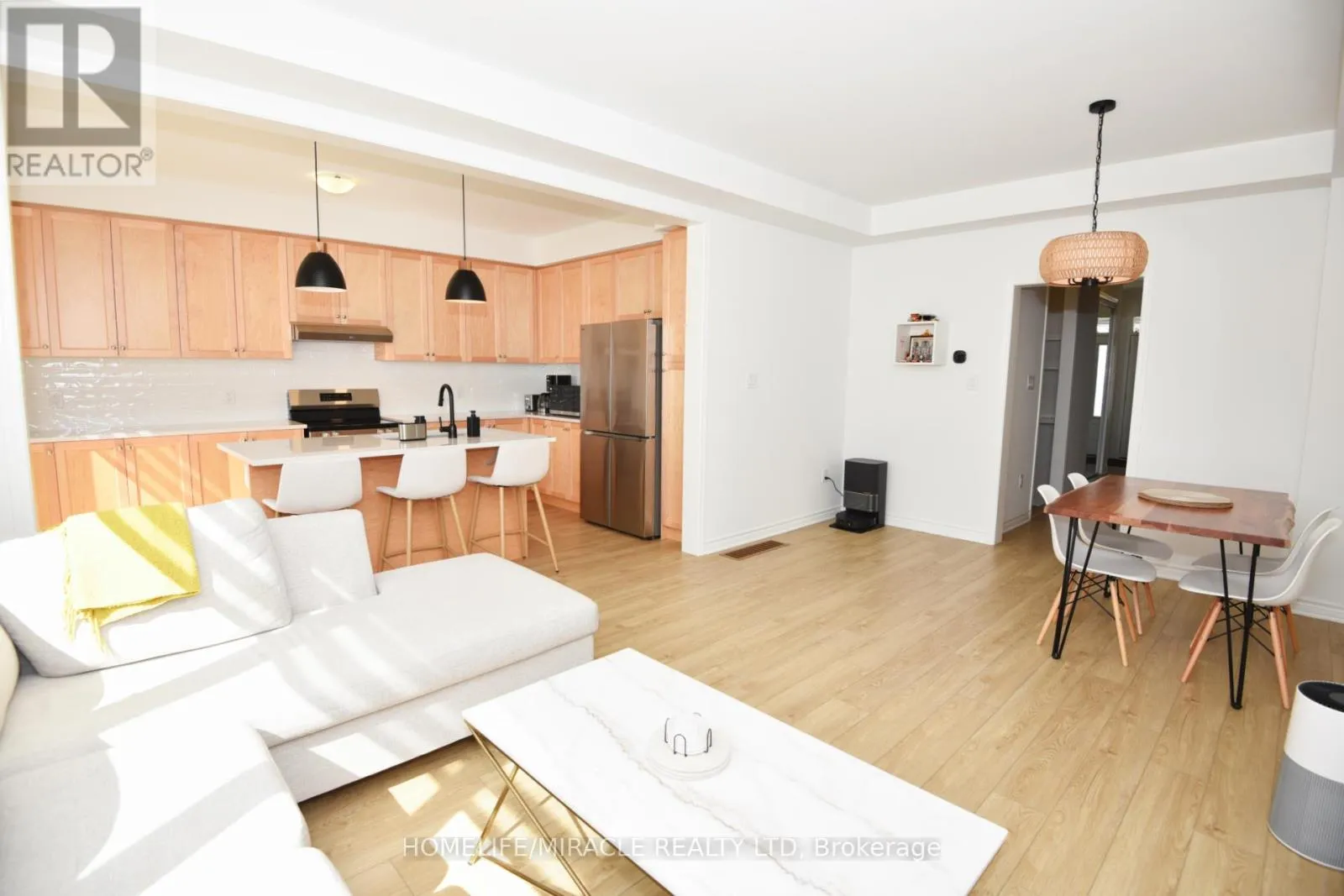 Whitevale Road /Brigadier Ave Welcome to this stunning, upgraded freehold townhome in Pickering's sought after Seaton community. Thoughtfully designed with an east-west orientation, the home is bathed in natural light. Carpet-free interior comes with upgraded flooring and a timeless oak staircase. A spacious foyer leads into an open-concept main level with 9' Feet ceilings, with a beautifully appointed kitchen showcases Hardwood cabinetry, Quartz countertop, Upgraded appliances, Large Centre Island, and sleek finishes. Perfectly paired with Living and Dining spaces for effortless entertainment. Zebra blinds throughout the house with an added refined modern touch. Upstairs, retreat to a luxurious Master Bedroom with a walk-in closet and a tastefully upgraded 5pc ensuite with a glass shower enclosure, quartz counter with double sink and upgraded tiles. Two more spacious bedrooms with spacious closets and a good size common bathroom for your use. Enjoy the convenience of interior garage access and the curb appeal of an upgraded elevation. Thousands of dollars spent on various upgrades including smooth ceiling throughout main floor, zebra blinds, water softner system, back splash in the kitchen, upgraded floor and wall tiles in the bathrooms, light fixtures, Moen faucets, GDO with camera and remote, security cameras, washer dryer, stainless steel kitchen appliances, owned tankless water heater (no monthly rent), furnace, central Air conditioner (heat pump), ERV, smart thermostat, 200-amp electrical service, Front door smart lock, Rough-in for EV charger, and 3pc rough-in the basement. Ideally located near parks, schools, shopping, transit, and major highways; this exceptional home offers the perfect blend of style, comfort, and convenience. Awesome place to call as your Sweet Home. GRAB it while you can!!! to 4pm. Come on in. Open House: SAT & SUN: 2pm (id:27476)