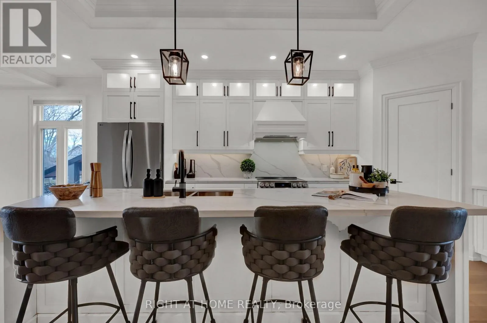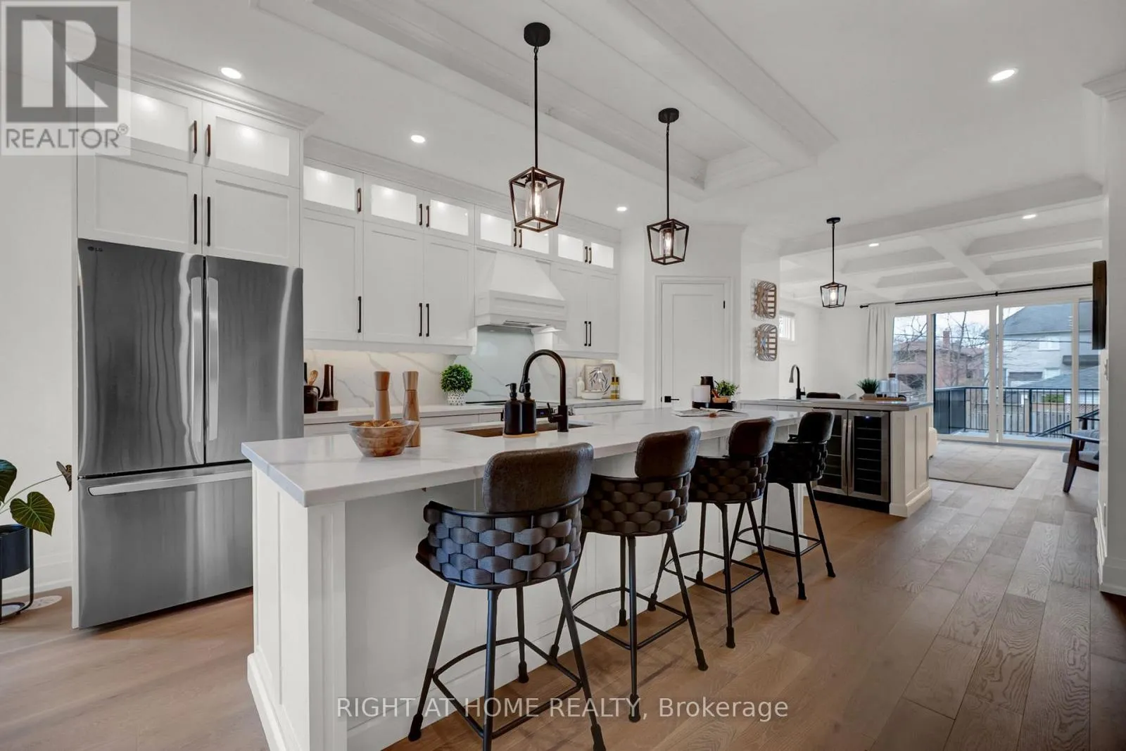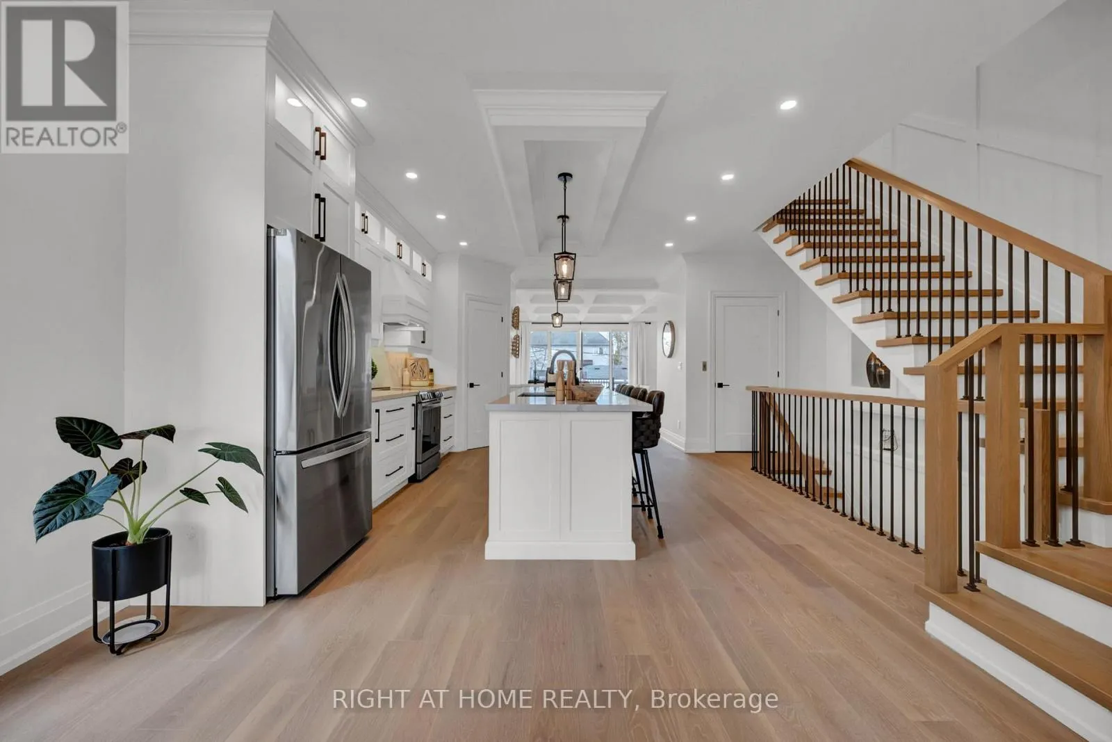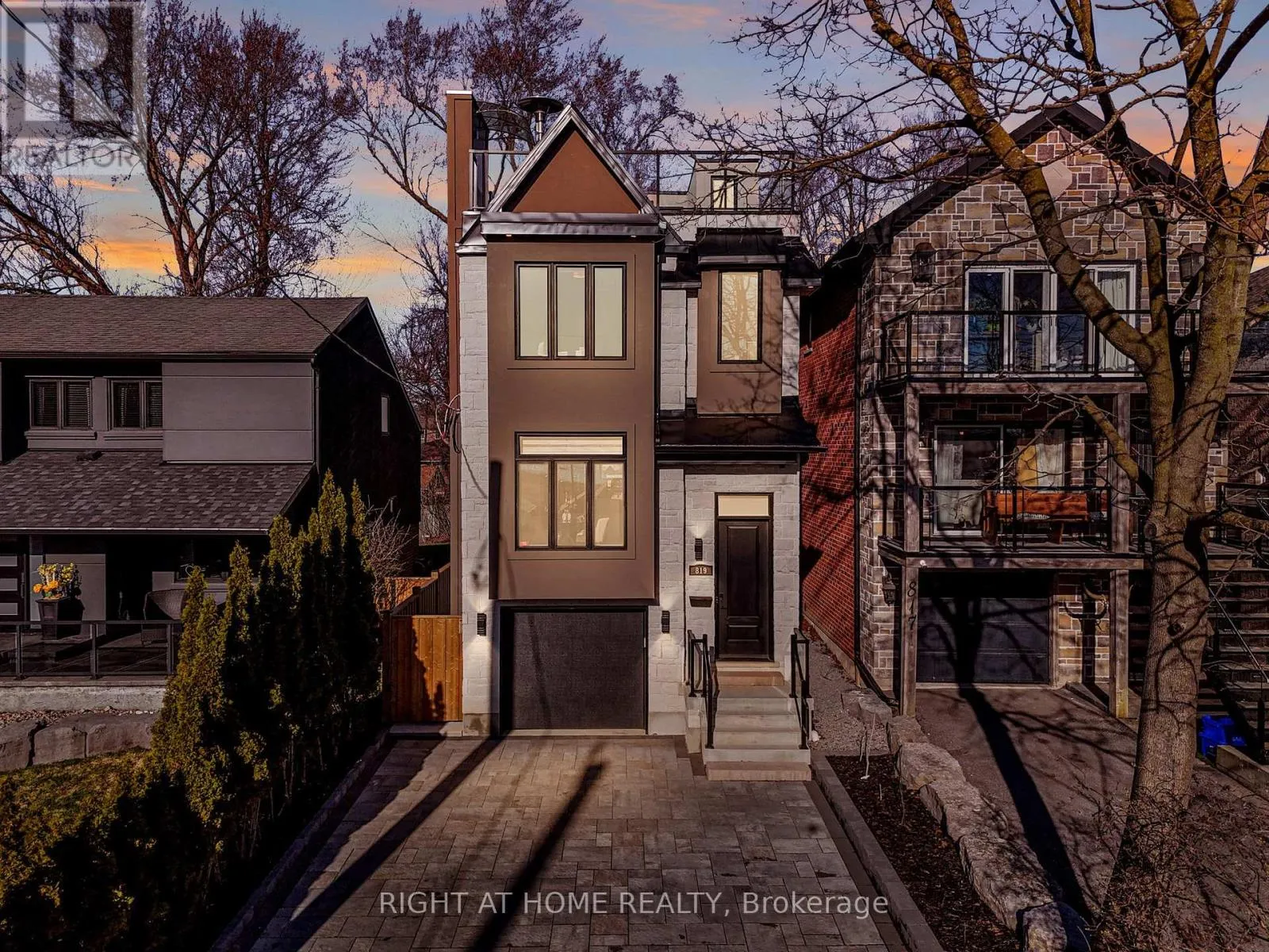 Cross Streets: Liverpool & Bayly St. ** Directions: South on Douglas Ave, West on Fairview Avenue. With stunning views of Frenchman's Bay, this rarely offered 3-storey modern, custom-built detached home with 4-stop ELEVATOR is thoughtfully designed for multigenerational living! A dramatic main foyer with 13-ft ceilings sets the tone, leading into an elegant dining area with lake views and a cozy gas fireplace. The open concept main floor is designed for entertaining, featuring white oak hardwood flooring and coffered ceilings throughout! At the heart of the home, the chef-inspired kitchen showcases quartz countertops, custom cabinetry, a centre island with seating for four, an additional prep sink, beverage fridge, and two extra bar seating areas, along with valance lighting and a walk-in pantry! Double sliding glass patio doors create a seamless transition to the backyard deck, blending indoor and outdoor living! The primary suite is a private retreat with vaulted ceilings, a gas fireplace, and a spa-like 5-piece ensuite complete with a freestanding soaker tub, glass-enclosed shower, and heated floors. Take in breathtaking sunset views from the approx. 450 sq ft rooftop terrace, featuring a Napoleon electric fireplace, canopy-covered outdoor TV area, and gas line for BBQs, perfect for elevated entertaining. The lower level offers exceptional versatility with a full 4-piece bathroom and a flexible space ideal as a fourth bedroom, gym, office, or additional living area, with walkout access to the backyard. Located just steps from the waterfront, enjoy the best of the neighbourhood including shops and dining, Nautical Village, Beachfront Park, Millennium Square, Pickering GO Station, Pickering Town Centre, and easy access to Highway 401. (id:27476)