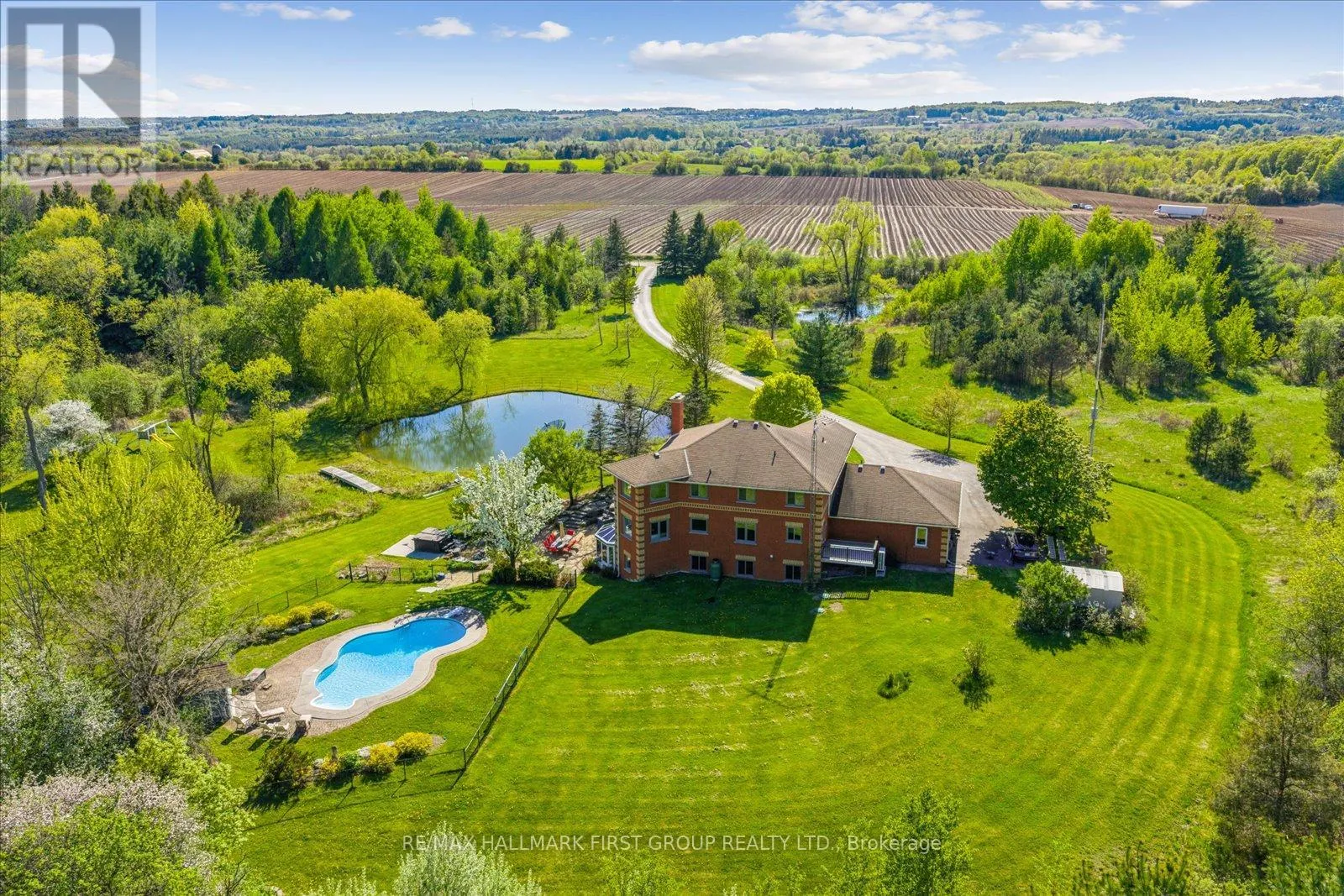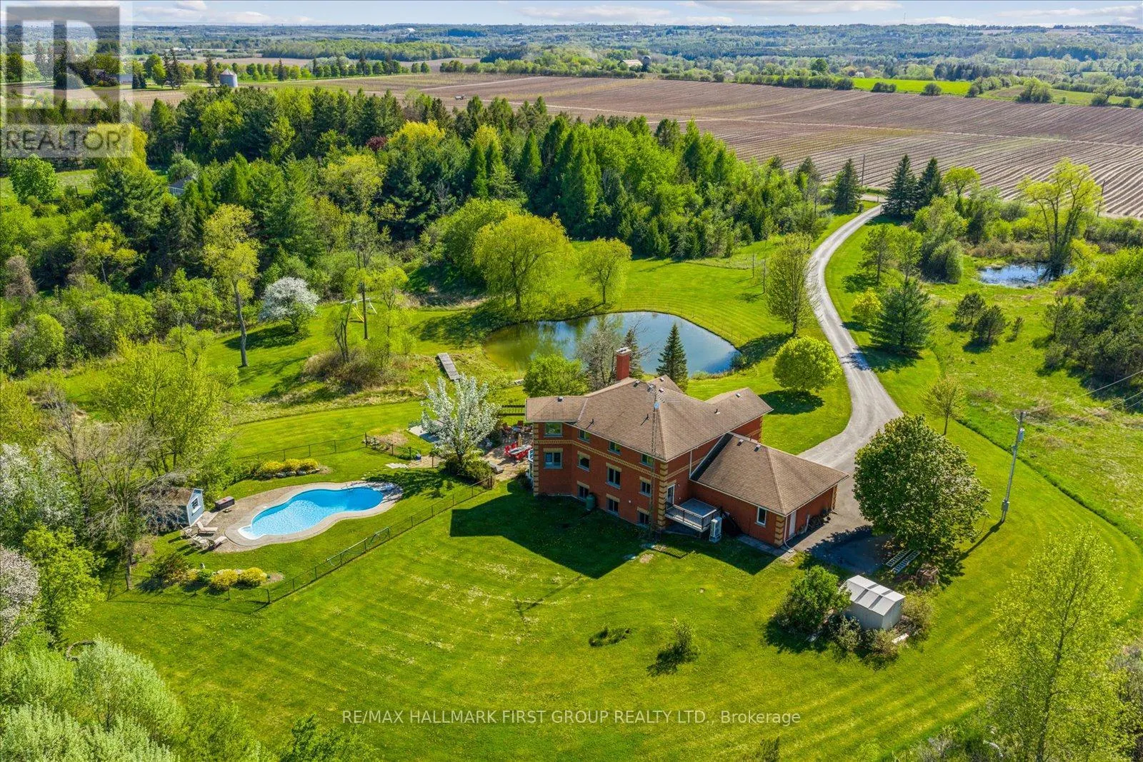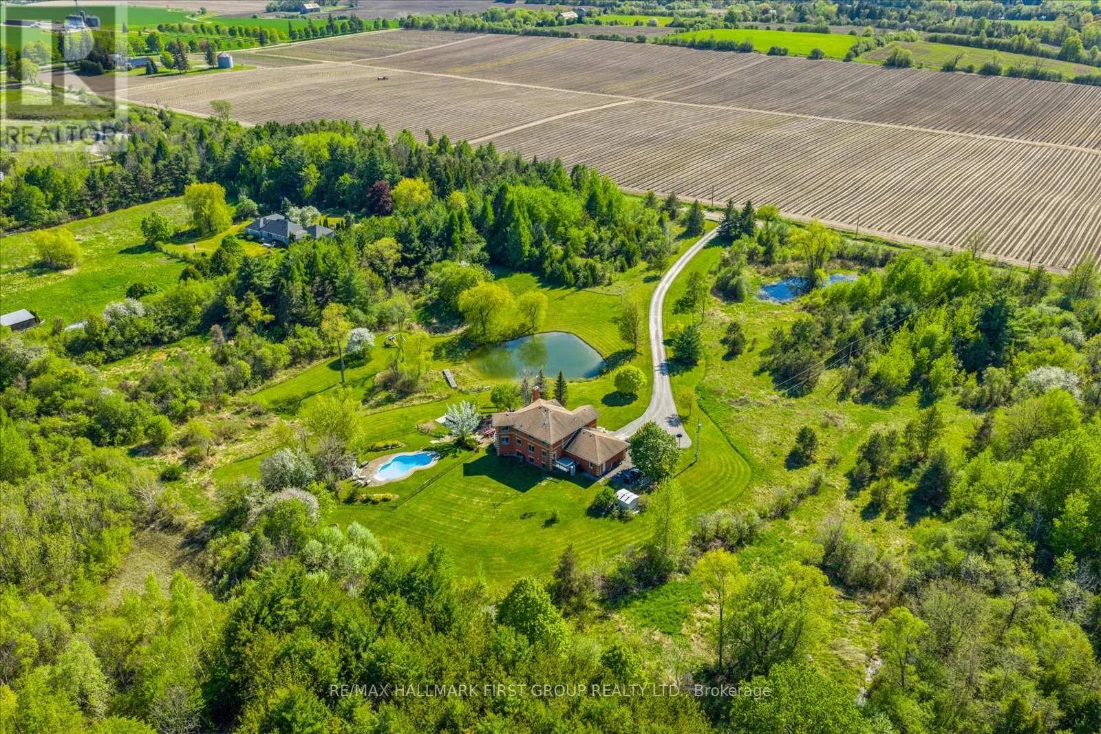 8th Concession & Sideline 6 Welcome to refined country living on 15 acres of private, picturesque countryside in rural Pickering. This custom-built 4-bedroom estate offers nearly 6,000 sq ft of thoughtfully designed living space, blending warmth, comfort, and timeless luxury-just minutes from modern conveniences. The main floor is designed for both everyday living and effortless entertaining, featuring hardwood floors, expansive windows, and sweeping views of the surrounding landscape. The dining area is warm and inviting, while the chef-inspired kitchen boasts built-in double ovens, a gas cooktop on the centre island, and seamless flow into the sunken living room. A wood-burning fireplace anchors the space, creating a cozy yet elevated atmosphere. A private main-floor office with custom built-ins provides the perfect work-from-home retreat. Upstairs, the primary suite is a private escape, complete with a walk-in closet, spa-like ensuite with soaker tub and separate shower, and a walkout to a private balcony overlooking the fully stocked trout pond. Three additional bedrooms offer generous space for family, guests, or flexible use. The full walk-out basement extends the living space with a large recreation area, sound-proof media room, kitchenette, and access to a bright glass-enclosed sunroom-ideal for year-round enjoyment. Notable upgrades include a new high-efficiency heat pump, all new high-end Energy Star windows in a custom colour, stained fibreglass entry door system, garden doors, and retractable Mirage screens. The outdoor setting is beyond impressive, featuring an in-ground pool, Arctic Spa hot tub, electronic gated entry with outdoor lighting, apple trees, a fully stocked trout pond, and acres of open space to explore. Peaceful and private, yet only 7 minutes to the 407.A rare opportunity to enjoy space, privacy, and lifestyle-without compromise. (id:27476)