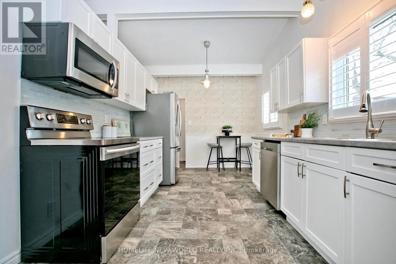 Liverpool/Annland Don't miss this great opportunity to own your dream home. This Fabulously Semi Detached Backsplit 3 house is on the much sought after Annland Street of the Bay Ridges community in Pickering. Enjoy an unbeatable beachside lifestyle with easy access to the GO station, beach, marina, waterfront trails, gas stations, stores, restaurants, and more. This lovely house features a large living room, a dining area with impressive cathedral ceiling, and a bright family size kitchen. The basement with gas fireplace was being used as en suite master bedroom, but can certainly be used as recreation room or guest room. Brand new flooring in all 3 spacious bedrooms; Brand new full bathroom at lower level giving extra convenience; Fresh painting in the entire house. Easy access to side deck and fully fenced backyard provides comfortable space for outdoors enjoyment. Numerous items have been upgraded in the last 5 years or so, including kitchen, appliances, air conditioner, furnace, electrical panel, driveway, roof, deck, fence, custom front door and side door, stylish brick wall In the living room, interlock in the front patio, retaining wall, etc. The driveway is big enough to park 6 cars. (id:27476)