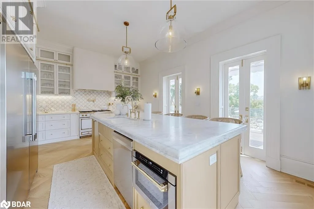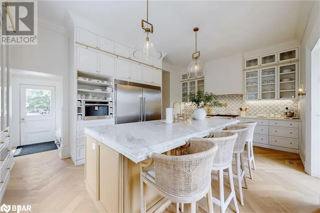 Picton Main St / Hill St FULLY UPGRADED!!! The Majestic Sills/Hepburn House, A Circa 1859 Italianate Stone Masterpiece Perched Above Picton Harbour With Sweeping Lake Views On Nearly An Acre In The Heart Of Downtown Picton. Impeccably restored with modern upgrades, this 2 storey heritage home radiates timeless elegance while offering contemporary comfort and style. Custom finishes, high ceilings, oak flooring, and a grand staircase with sconce lighting set the tone for refined living. Entertain on the main level with a formal dining room, bar area, built-in benches, display cabinetry, or gather in spacious living areas with a cozy fireplace. The chefs kitchen features custom design with a centre island, breakfast bar, premium appliances: Frigidaire fridge, La Cornue 43 5-burner gas stove, Zline built-in microwave drawer and more! Upstairs offers 4 bedrooms, each with its own ensuite and picture windows with all-around views, a laundry room with sitting coffee station, a private terrace overlooking the marina, and attic with reclining ladder access. Enjoy the beautifully landscaped backyard, with glass fencing, a wooden deck, and octagon gazebo, is a private oasis and the perfect venue for intimate events, garden parties, or weddings with a stunning harbour backdrop. The finished basement provides flexible space for a gym, media room, or recreation. An oversized driveway and detached garage with a workshop accommodate your projects with ease. Inclusions: All light fixtures, window coverings, fridge, gas stove, microwave drawer, dishwasher, washer/dryer, two owned furnaces, two central A/C units, owned hot water tank, water softener, attic ladder, garage door opener, garden shed, and gazebo. Previously licensed as a B&B, it offers potential as a legacy home, upscale residence, or investment. Walk to cafes, dining, shops, and galleries, with wineries, beaches, and arts nearby. Dont miss this rare opportunity to own a heritage gem in Picton. (id:27476)