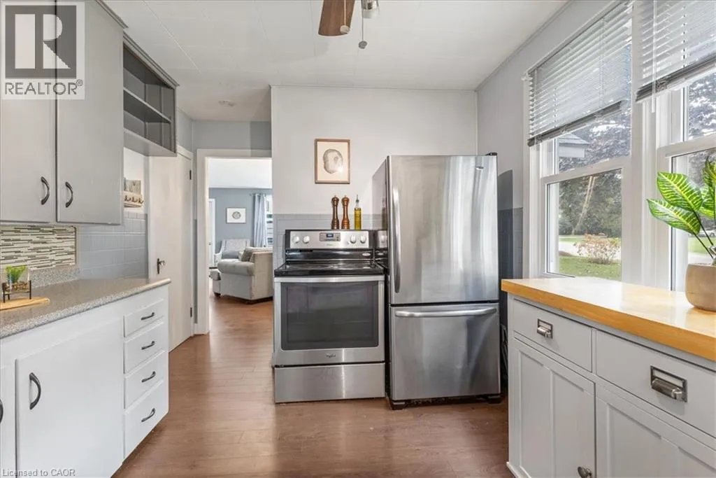 Albert Street E Welcome to 98 Albert St. E., Plattsville! Looking for a home in a small, family-friendly community? This charming three-bedroom bungalow offers over 1,000 sq. ft. of comfortable living space with numerous updates throughout. Step into the foyer, complete with built-in coat hooks and continue into a bright living room featuring brand-new windows in most rooms. A 5-piece bathroom with double sinks. The unfinished basement has been thoughtfully prepped with framing and drywallâready to transform into a recreation room, workshop, second bathroom, and additional storage space. It also includes a convenient walk-up to the backyard. Need more space? The finished loft area provides an ideal spot for extra entertaining or a cozy hideaway. Outside, youâll find parking for up to five cars, plus a single-car garage, and a fully fenced backyardâperfect for kids or pets. Recent updates include a furnace and air conditioner (2011), asphalt shingle roof (2019), new front patio (2024), new 200 amp breaker panel (2025), and brand-new windows throughout most of the home (2025). (id:27476)