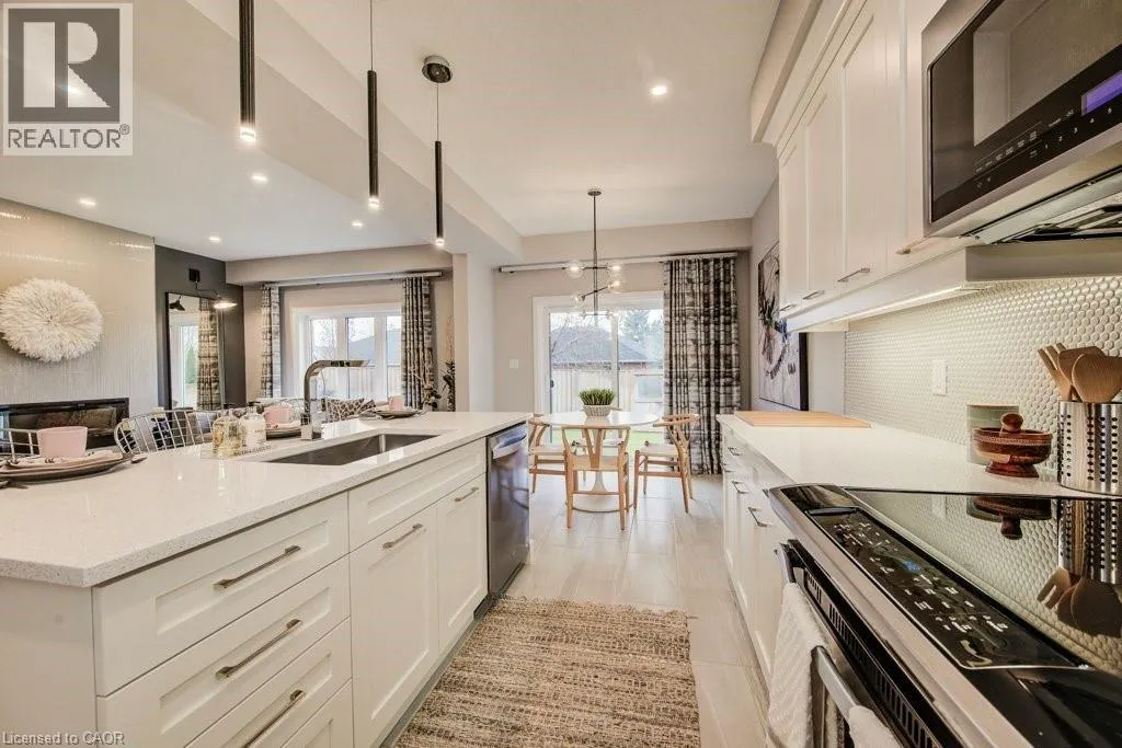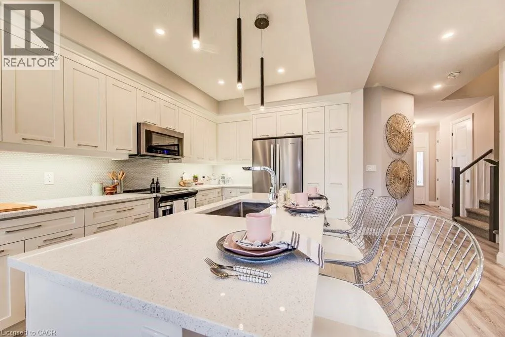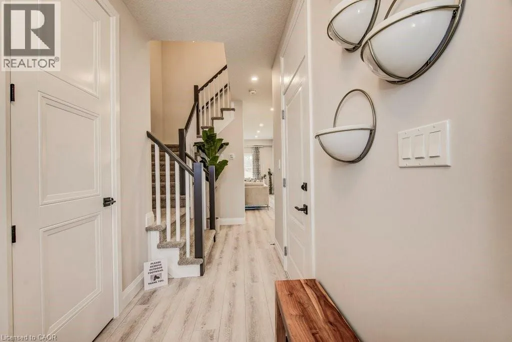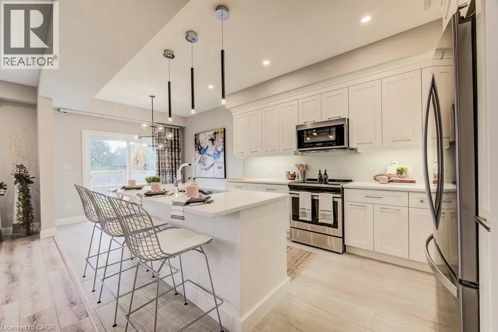 Todd Way to Applewood St - go south on Applewood, property located on the west side. Absolutely stunning FREEHOLD double-car garage townhome, Claysam Homes MODEL HOME â loaded with thousands in premium upgrades! Never lived in and Move in Ready. Step inside this bright and spacious 1,597 sq.ft. beauty and prepare to fall in love. Soaring 9ft ceilings on the main level, upgraded trim and doors, designer light fixtures, and a gourmet kitchen that will make you the envy of all your friends. Weâre talking premium stainless steel appliances, sleek quartz countertops, extended height cabinetry and a massive island with breakfast bar. The open-concept living and dining area is perfect for entertaining, with oversized windows flooding the space with natural light and a sliding door walkout to your private backyard oasis. But hereâs the game-changer: rare PRIVATE DIRECT ACCESS from the garage straight into the backyard. Upstairs, retreat to three generously sized bedrooms, including a luxurious primary suite with a huge walk-in closet and spa-like ensuite. Convenient upper-level laundry means no more lugging baskets up and down stairs! Located on a quiet cul de sac in charming Plattsville, youâre just minutes from parks, trails, schools, and the 401. Quick commute to Kitchener, Waterloo, Cambridge, or Woodstock. Enjoy small-town living with big-city convenience! This is not just a townhome â itâs the upgraded, move-in-ready, no-expenses-spared MODEL HOME youâve been waiting for. Properties like this donât last long⦠(id:27476)