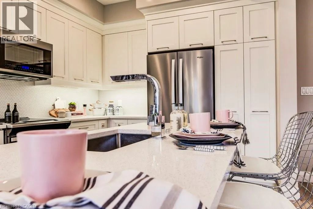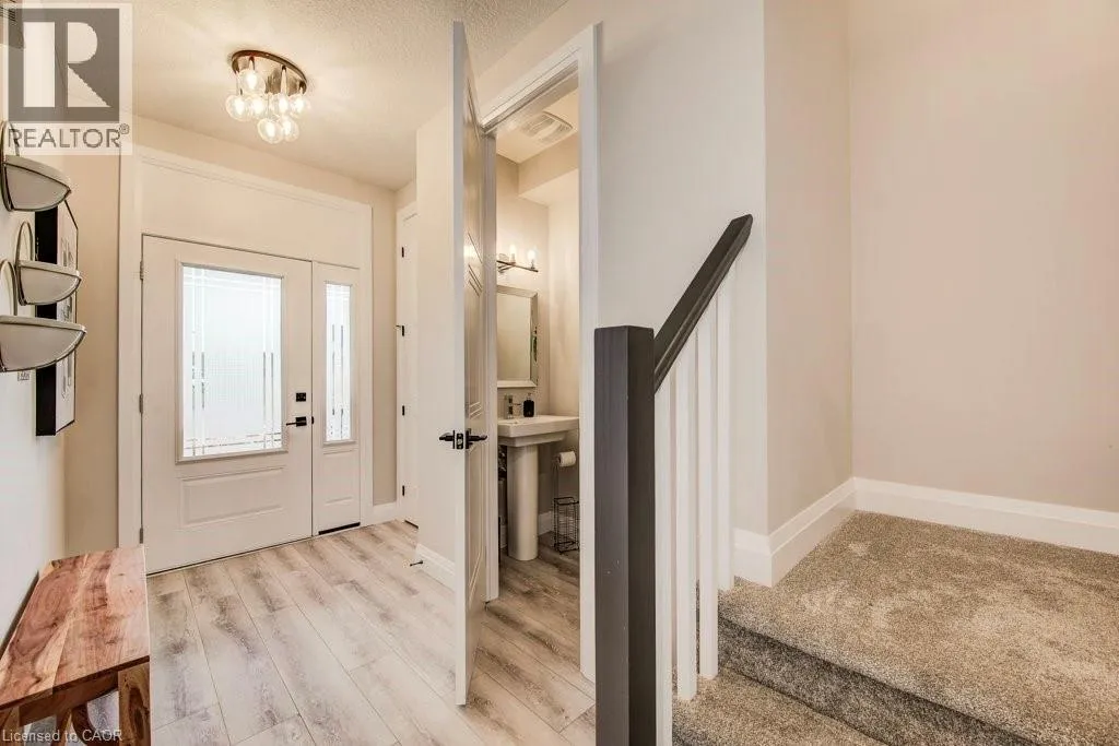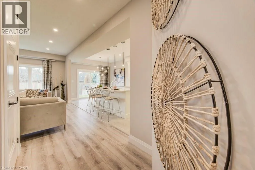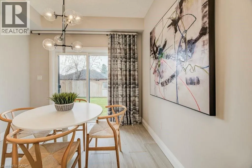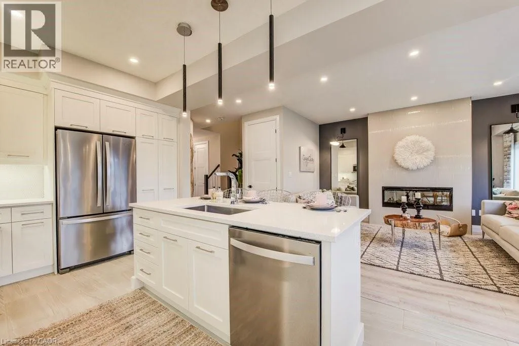 Todd Way to Applewood St - go south on Applewood, property located on the west side. Absolutely stunning FREEHOLD double-car garage townhome, Claysam Homes MODEL HOME â loaded with thousands in premium upgrades! Never lived in and Move in Ready. Step inside this bright and spacious 1,597 sq.ft. beauty and prepare to fall in love. Soaring 9ft ceilings on the main level, upgraded trim and doors, designer light fixtures, and a gourmet kitchen that will make you the envy of all your friends. Weâre talking premium stainless steel appliances, sleek quartz countertops, extended height cabinetry and a massive island with breakfast bar. The open-concept living and dining area is perfect for entertaining, with oversized windows flooding the space with natural light and a sliding door walkout to your private backyard oasis. But hereâs the game-changer: rare PRIVATE DIRECT ACCESS from the garage straight into the backyard. Upstairs, retreat to three generously sized bedrooms, including a luxurious primary suite with a huge walk-in closet and spa-like ensuite. Convenient upper-level laundry means no more lugging baskets up and down stairs! Located on a quiet cul de sac in charming Plattsville, youâre just minutes from parks, trails, schools, and the 401. Quick commute to Kitchener, Waterloo, Cambridge, or Woodstock. Enjoy small-town living with big-city convenience! This is not just a townhome â itâs the upgraded, move-in-ready, no-expenses-spared MODEL HOME youâve been waiting for. Properties like this donât last long⦠(id:27476)