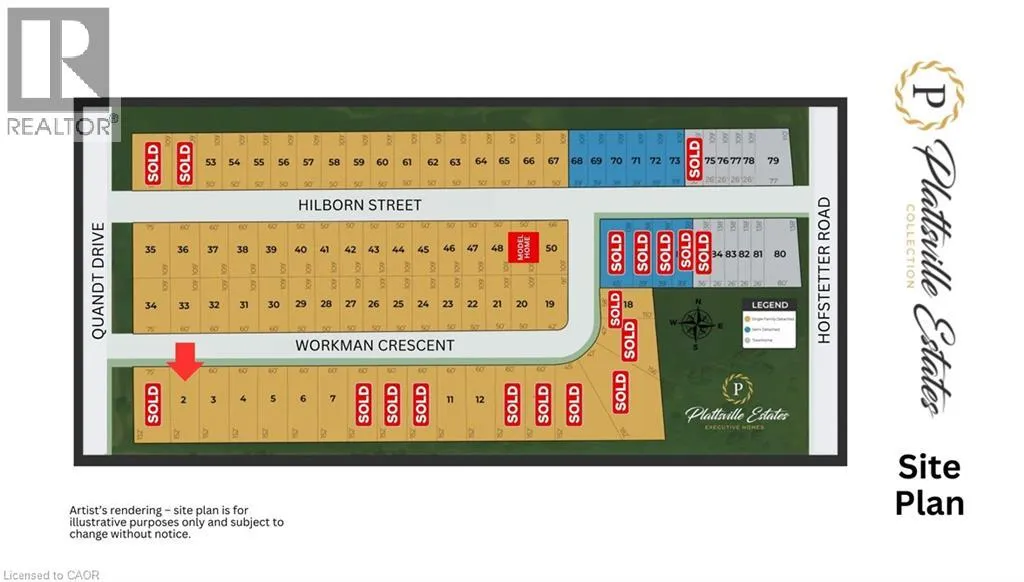 Hofstetter Rd to Workman Cres Welcome Home! Indulge in luxury living with the WILMONT Model by Sally Creek Lifestyle Homes, located in OR the picturesque community of Plattsville Estates - where small-town charm meets big-city convenience. Just 20 minutes from Kitchener/Waterloo and within easy reach of the GTA, Plattsville offers the perfect balance of peaceful rural living and modern urban access. Known for its friendly atmosphere, excellent schools, and strong sense of community, it's an ideal setting for families and professionals seeking space, safety, and a relaxed pace of life without sacrificing connectivity. Set on a beautiful 60' lot, this 4-bedroom, 3.5-bathroom home showcases superior craftsmanship and thoughtful design. Enjoy 9' ceilings on the main and lower (basement) levels and 8' ceilings on the second floor, with an option to upgrade to 10' ceilings on the main and 9' on the second. The layout includes a den, servery, walk-in pantry, and multiple walk-in closets - blending functionality with timeless style. Premium finishes are included as standard, such as engineered hardwood flooring, upgraded ceramic tiles, an oak staircase with wrought iron spindles, quartz countertops, and a custom kitchen featuring upgraded cabinetry with crown moulding, valance, and undermount lighting - perfect for hosting and entertaining. A rare double tandem garage provides parking for three vehicles. Additional features include air conditioning, HRV, high-efficiency furnace, and fully sodded lots. Buyers can also customize their home beyond standard builder options, ensuring a space perfectly suited to their lifestyle. Added perks include capped development charges and an easy deposit structure. Please note this home is to be built, with several models and lots available. Photos shown are of the upgraded Berkshire Model Home. RSA. (id:27476)