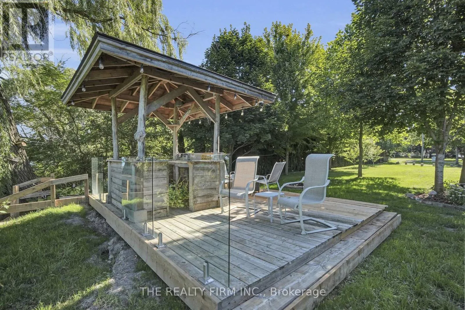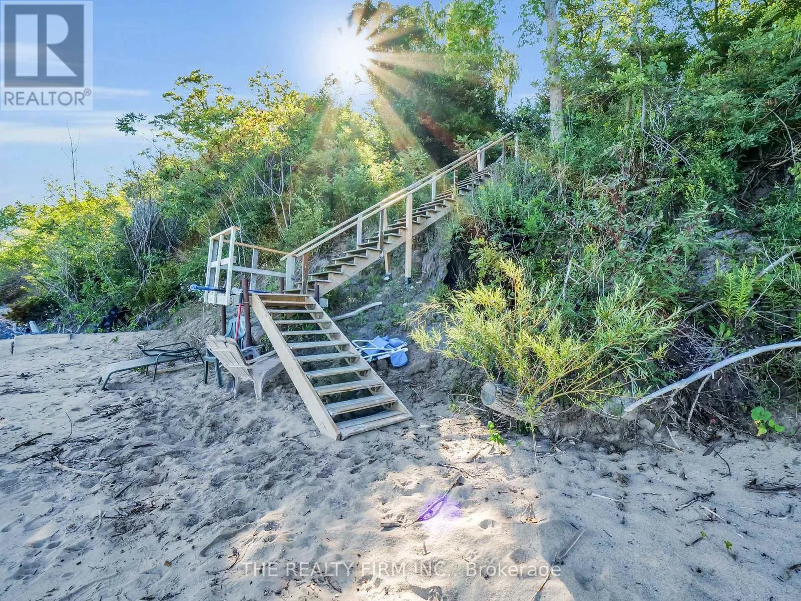 Cross Streets: Queen St. ** Directions: Take Lakeshore Rd to Queen St. then turn right on California Ave. and left onto Beverly Glen. Escape to your private lakefront oasis, a hidden gem tucked away on a whisper-quiet dead-end street in a charming enclave, just 20 minutes from Sarnia and an hour from London. With over 107 feet of private sandy beach and crystal-clear water, every evening delivers world-class sunsets that paint the sky in fiery hues.This two-storey, 4-bedroom, 2-bathroom home features a sunroom with lake view, a cozy living room with a wood-burning fireplace, and a spacious dining area for family gatherings. An extra family room offers relaxation space, while a main floor bedroom,opposite a full bathroom, is ideal for guests or a home office. A convenient laundry/utility room completes the level. Upstairs, the large primary bedroom boasts lake views and new sliding doors to a recently redone roof area (20-year warranty), perfect for a potential balcony. Two additional bedrooms and a full bathroom complete the upper level. Outside, enjoy a wraparound deck, a Tiki bar with hydro, and a lower-level deck with hydro leading to the sandy beach with clear blue water, and a new boat/jet ski ramp. The large yard has a powered shed and a mini orchard of peach, pear, apple, and newly planted cherry trees. Move-in-ready updates include new flooring and lighting, fresh interior and exterior paint, a 2017 furnace and on-demand water heater, a 2017 main roof, a 2019 window, and spray-foam insulation in the 2015 crawlspace for energy savings. Nestled in a top-rated school district and a neighborly gem of a community, this lakefront sanctuary blends modern upgrades, cozy charm, and unparalleled natural beauty-your forever happy place awaits. Claim your slice of paradise with a private sunset tour today. (id:27476)