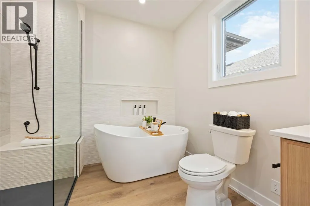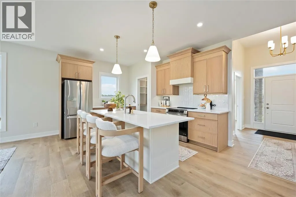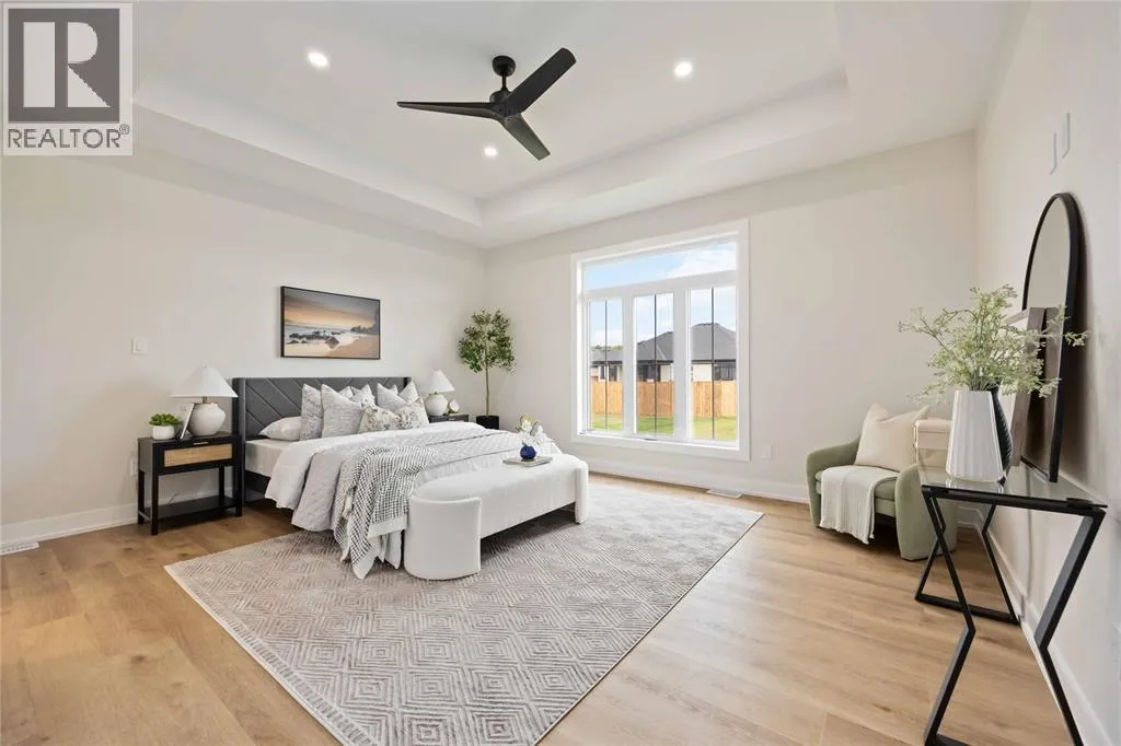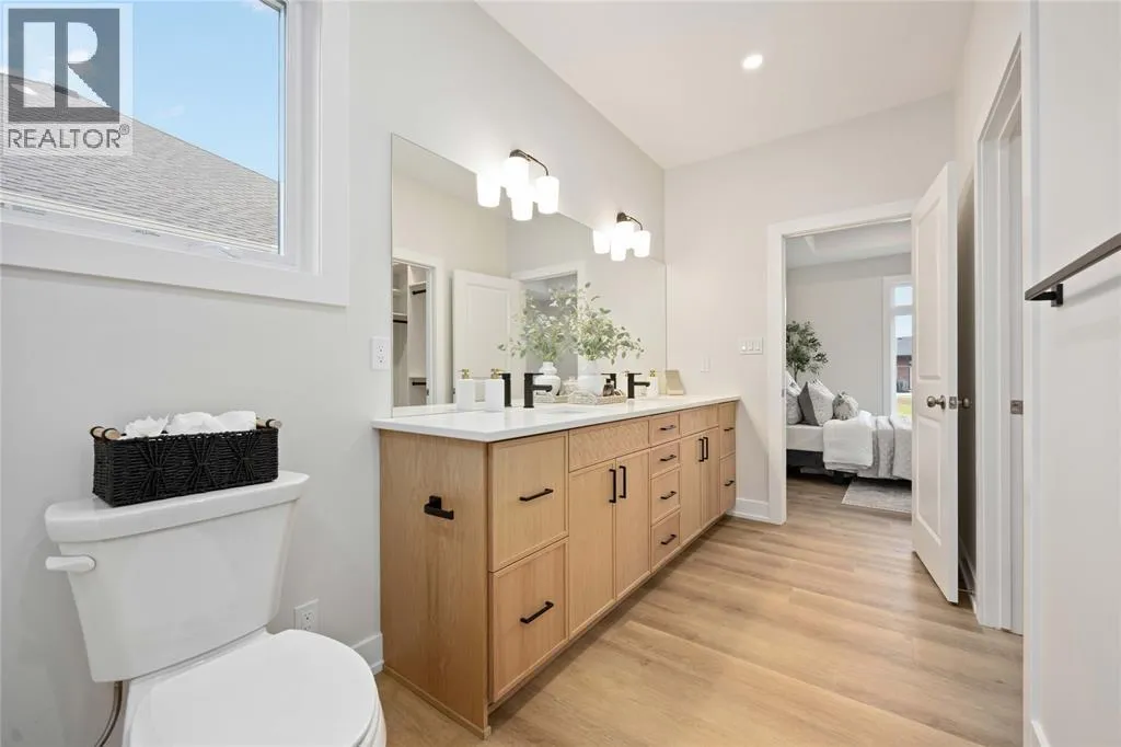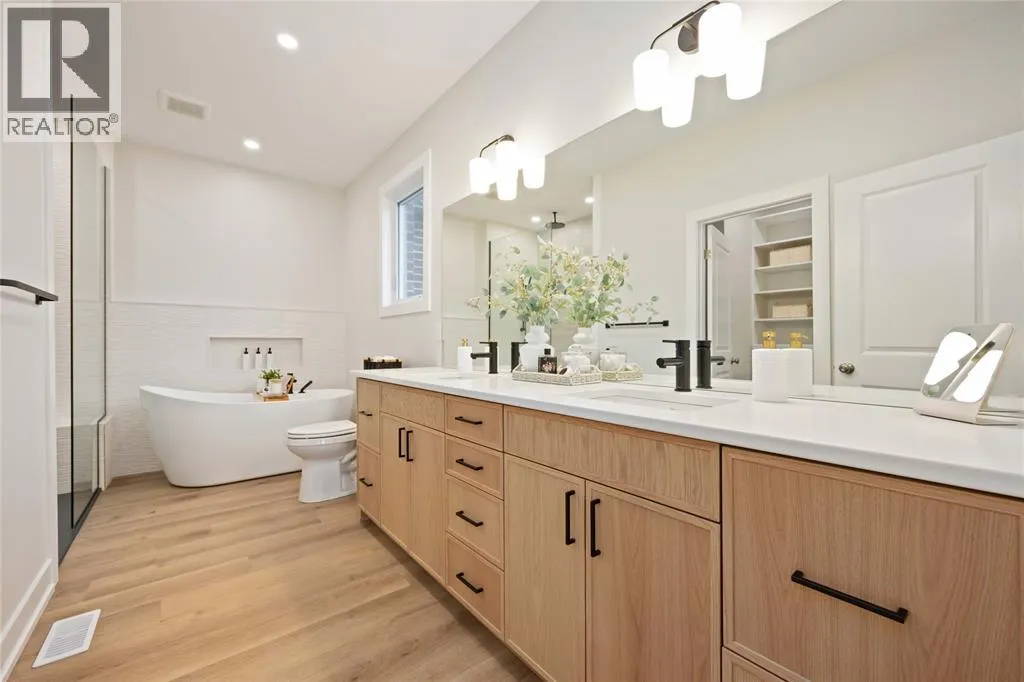 Now finished and ready to move in. This exceptional floor plan offers tons of versatility for multi-generational living or a secondary basement income suite! Separate basement entrance through the oversized 2.5 car garage brings you to the finished lower level, with a spacious family room, second kitchen or wet bar rough-in, 2 bedrooms a full washroom and second laundry area. Situated on an extra large 72x144 corner lot in Errol Woods. Upgraded 9' ceilings throughout the main floor, 2 main floor bedrooms including the primary bedroom with large walk-in closet and beautiful 5pc ensuite bathroom with oversized custom glass and tile shower and freestanding soaker tub. Visit us this weekend to experience the quality of Lambton County based Bakker Design Build and their 3 generations of homebuilding. Other lots and plans available. Price includes HST with rebate assigned to Builder. Property tax and assessment not set. (id:27476)