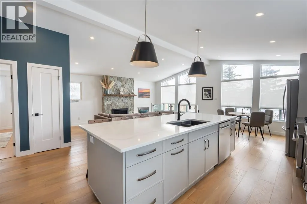 Stylish and move-in ready 3+1 bedroom home, renovated in 2020, offering stunning open-concept living. The kitchenâs oversized island anchors the space, seamlessly connecting to a cozy living room with gas fireplace, wet bar, and dedicated dining area, all finished with white oak plank flooring throughout. Generous bedrooms include a primary retreat with ensuite and garden doors leading to a large glass-railed deck overlooking a spacious yardâperfect after long days at the beach. Just a short walk to the sandy shores of Lake Huron, where crystal-clear water, unforgettable sunsets, and endless summer days await. A wonderful neighbourhood to raise a family or gather loved ones for relaxed cottage-style living. Easy access to the 402, Sarnia in under 30min and London under 60min. (id:27476)