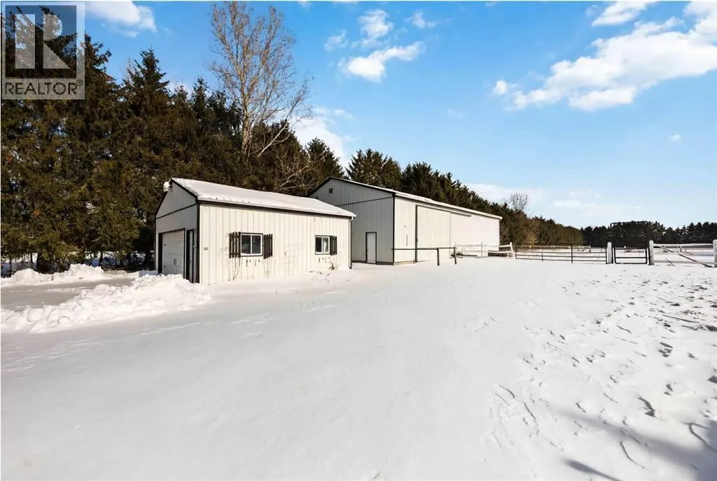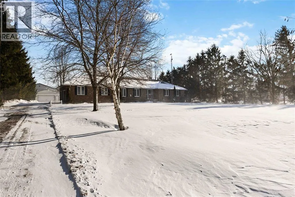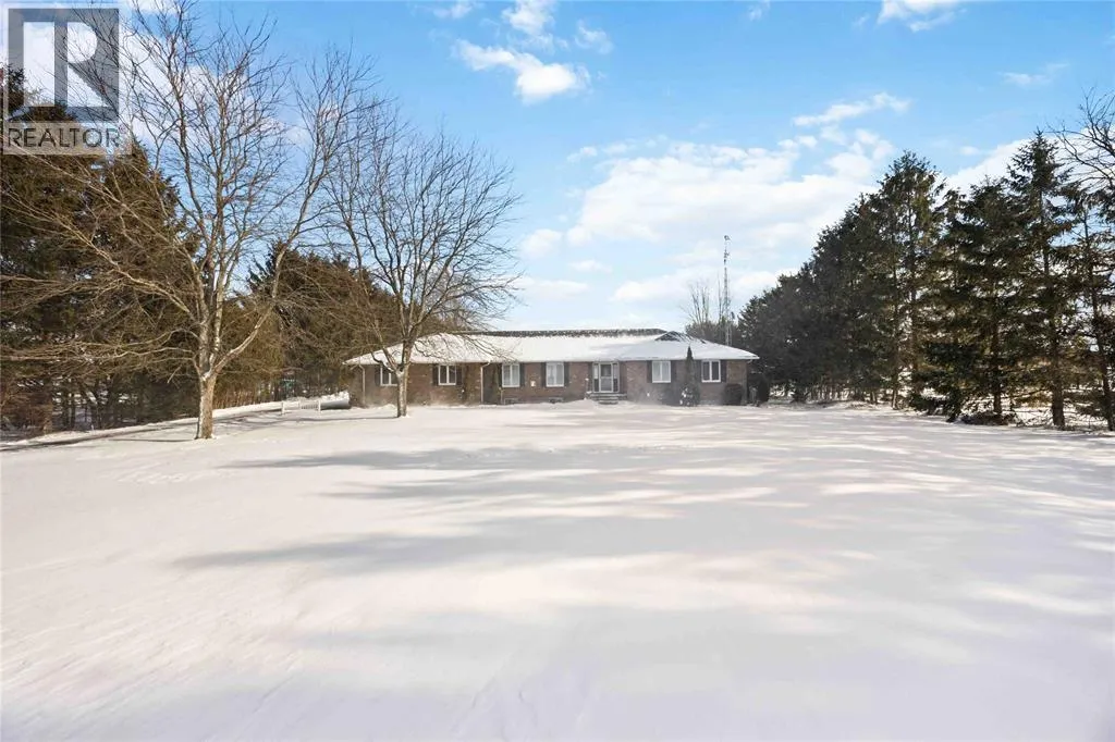 Discover your private sanctuary with this stunning brick executive bungalow on 5 acres. This is the perfect blend of luxury, privacy, and country living. Inside you'll find a sprawling bungalow with tons of finished space, and natural light throughout. The open-concept kitchen flows seamlessly into living and dining areas. A generous primary suite with en-suite and walk-in closet, plus two additional bedrooms and 3-piece washroom are featured on the main floor. This home features a triple car garage with direct entry to the mudroom, main floor laundry and powder room. The Fully finished basement (2022) with high ceilings is perfect for a home theatre, gym, or guest bedrooms. The property features a 40x60 barn with stalls, oversized shop with 220 hydro, plus fenced paddocks and pasture. Everything you need for an equestrian lifestyle. This modern convenience meets country escape. This is your lifestyle opportunity. (id:27476)