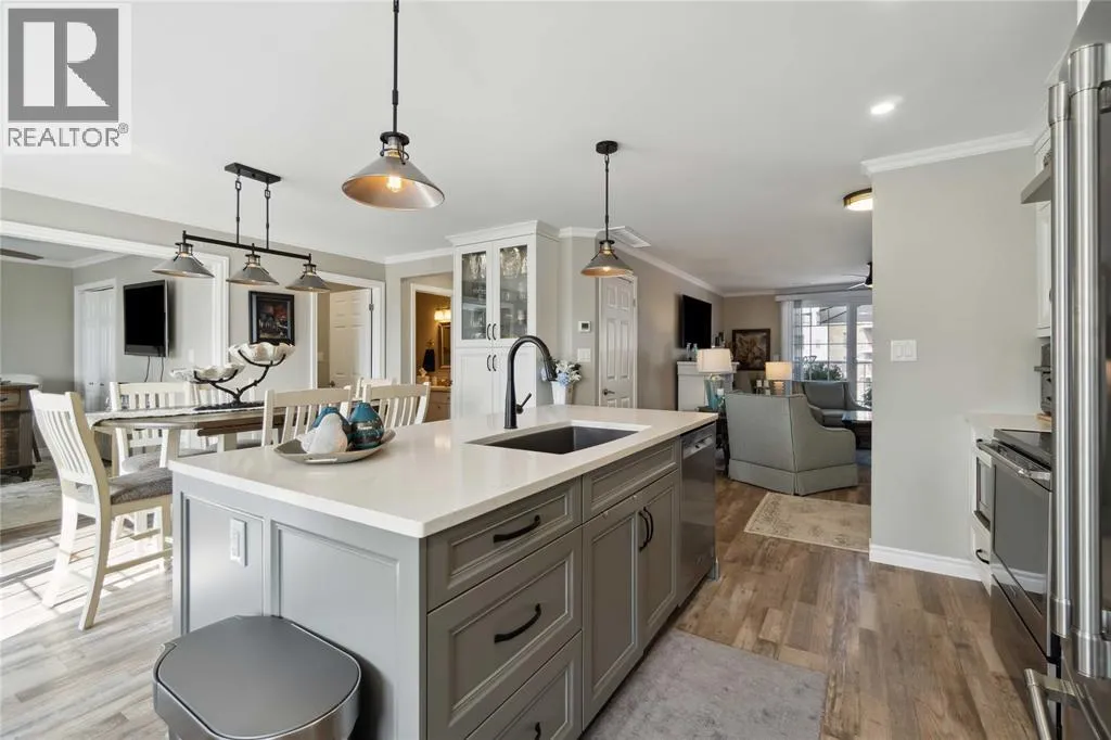 Take advantage of this rare opportunity to own this beautifully updated 2 Bedroom + Office, 2 Bathroom, TWO Balcony unit in the Venetian Villages. This unit is sure to impress! Featuring an updated Chef's kitchen with a huge island and a bright living room with electric fireplace and West facing balcony - you will enjoy spending many mornings and evenings with these views! The master bedroom is generous in size and is complete with a 3 piece ensuite. Fees include, Cable, Internet and Water. Two Parking Spaces. A close walk to the Bluewater Bridge, St. Clair River, Gateway Casino and Downtown Point Edward. (id:27476)