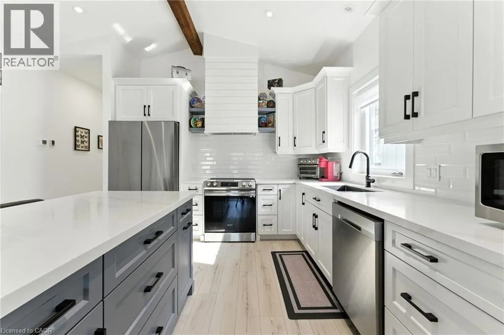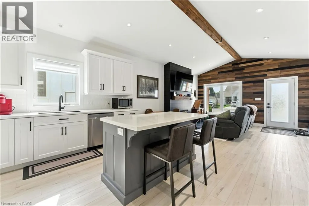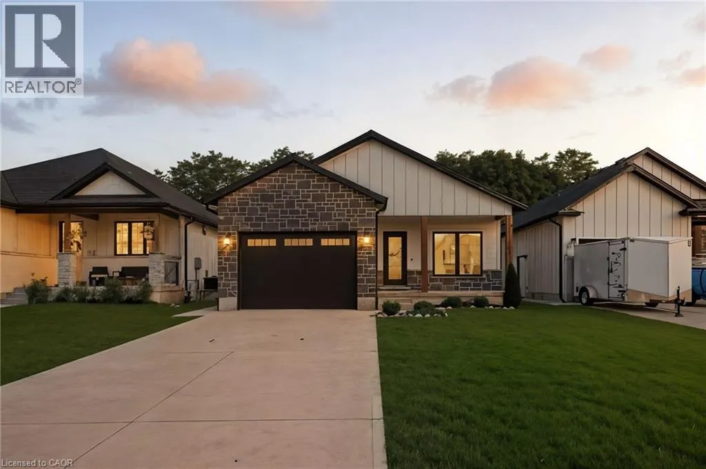 Victoria St to William St - Left onto MacNeil Welcome to 7 MacNeil Court! Discover your dream home in the heart of Port Burwell! This stunning white, hardy board & batten board, showcases a beautiful stone facade with elegant black and blonde oak accents. 3+2 Spacious Bedrooms, including a luxurious primary suite with ensuite and walk-in closet. 2+1 Full Bathrooms, designed for both comfort and style. An **Open Concept Living Space** that flows seamlessly into a chef's kitchen, perfect for entertaining! Take in the beauty of **vaulted ceilings** and a custom iron shiplap fireplace that adds warmth and character. Stainless steel appliances and matte black finishes create a sleek and modern vibe. This home is offering all contents, as a complete package, move in ready, that features, Two TV's with Wall mount brackets, Sofa couch and matching recliner chair, Kitchen table with chairs, two island stools, both bedroom sets, Stereo and speakers, BBQ and Two patio chairs, the Garage workbench, the Snowblower, the lawnmower, the gas weedtrimmer, and leafblower, the garage shelving, the table saw and the mitre saw, all furniture and contents purchased brand new within a year ago. Recently purchased backup hydro system that connects to the Hydro meter for those unexpected power outages, Briggs & Straton Generator in Negoaitable with all offers. Just minutes from Port Burwell's summer hub, a short stroll to breathtaking views, and an easy commute to Tillsonburg. This oasis of a home is not just a house; it's a peaceful retreat waiting for a family to create lasting memories. Perfect for Airbnb setup. Move-in ready and waiting for YOU! (id:27476)