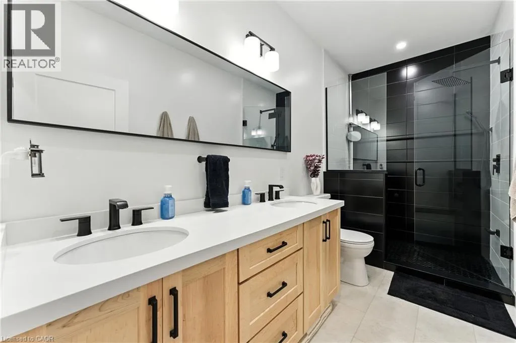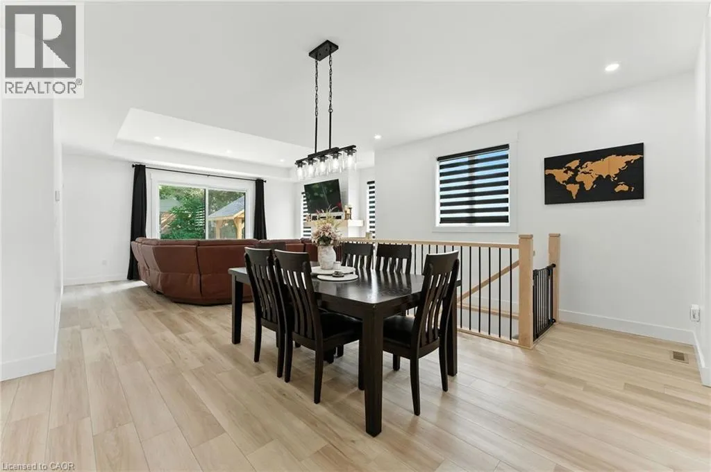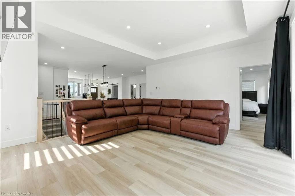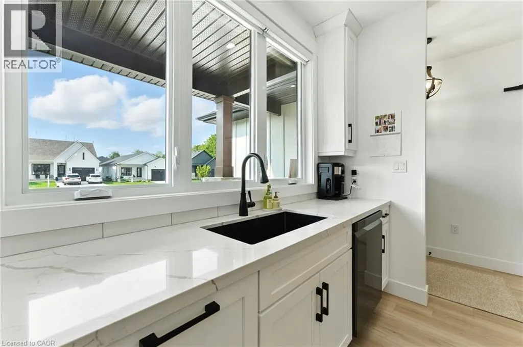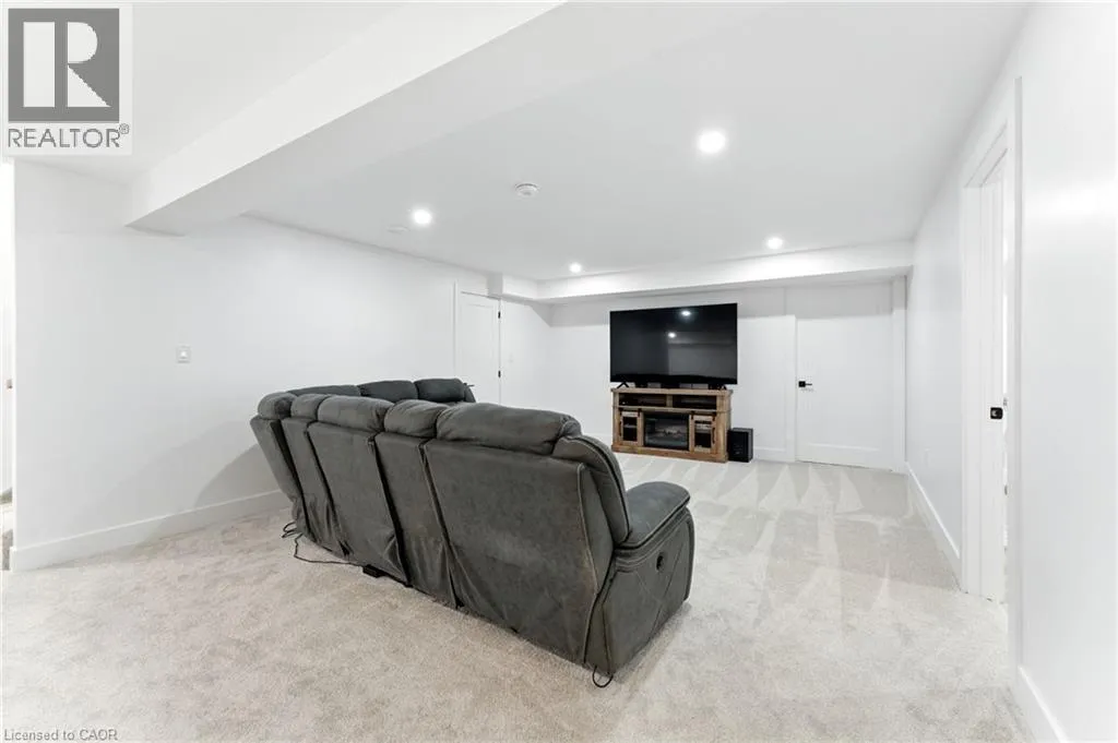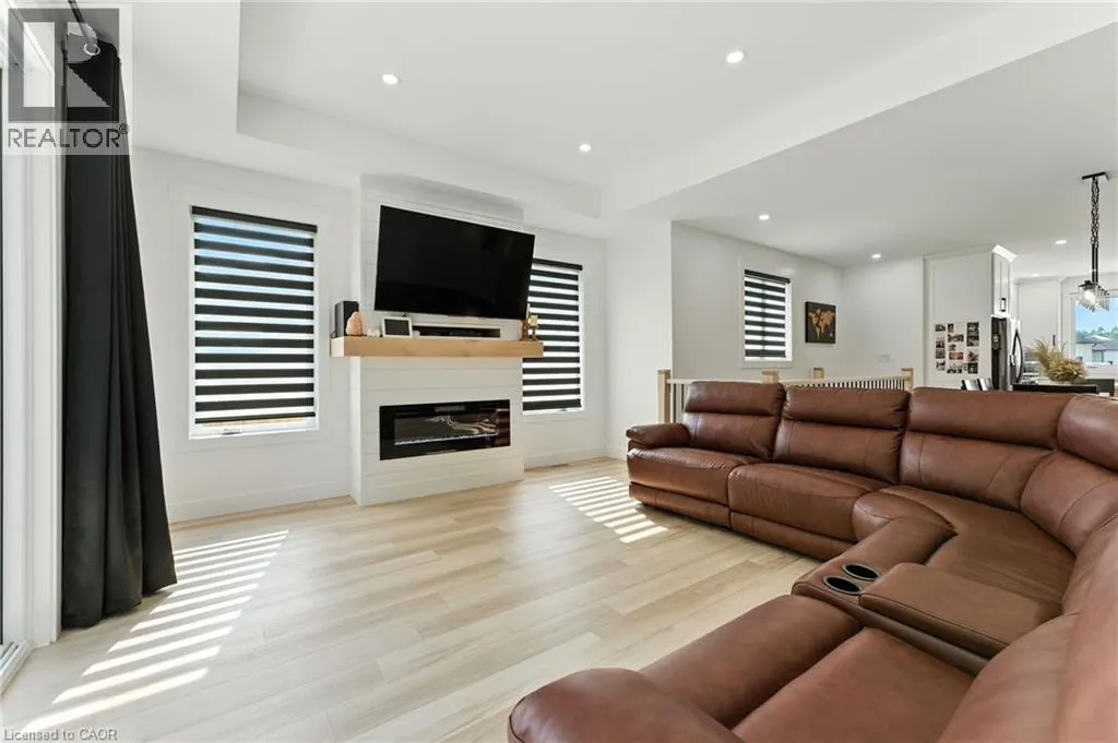 VICTORIA ST- WILLIAM ST- MACNEIL COURT Welcome to this beautifully designed bungalow featuring 2+2 bedrooms and 3 full bathrooms, perfectly blending modern elegance with functional living. The exterior showcases timeless curb appeal with white Hardie Board siding paired with classic stone accents. Step inside to an open-concept kitchen and dinette area, where floor-to-ceiling white cabinetry is complemented by a light wood island - the perfect space for cooking and entertaining. The adjoining living room is warm and inviting, centered around a striking shiplap fireplace and framed by sliding patio doors that lead to your private outdoor retreat. Just off the living area, the spacious primary suite offers a serene escape, complete with a spa-like 4-piece ensuite featuring a glass-enclosed shower and a light wood double vanity. A second bedroom and another full 4-piece bathroom complete the main level, along with a convenient laundry/mudroom tucked behind a charming sliding barn door. Downstairs, the fully finished basement boasts a generous recreation room, two large bedrooms, and yet another full 4-piece bathroom - ideal for guests, family, or a home office setup. The backyard is designed for year-round enjoyment, featuring a beautiful patio and a covered hot tub area perfect for relaxing or entertaining. (id:27476)