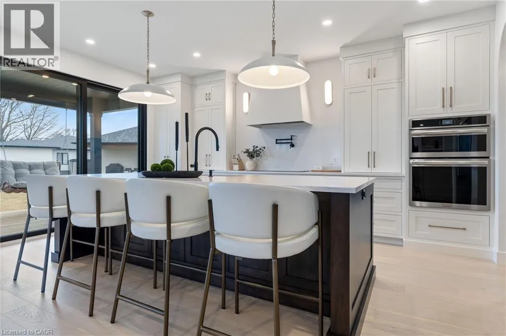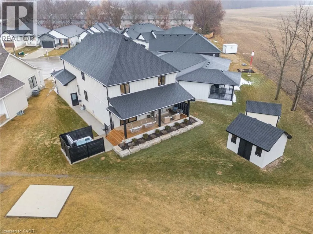 VICTORIA ST- WILLIAM ST- MACNEIL COURT Welcome to luxury living in the charming lakeside community of Port Burwell. This stunning two-storey home offers exceptional craftsmanship, thoughtful design- perfect for those seeking both elegance and everyday comfort. Step inside to a spacious, welcoming foyer that immediately sets the tone for the home. Down the hall, youâll find a convenient 2-piece powder room and a beautifully designed mudroom off the garage features custom built-ins. Continue through to the impressive dining room. The space flows seamlessly into the breathtaking great room where custom arched built-ins frame the fireplace and TV, creating a warm yet sophisticated focal point. Large windows throughout the main floor flood the home with natural light. The chef-inspired kitchen is both functional and striking, featuring white floor-to-ceiling cabinetry, a contrasting dark wood island, stainless steel appliances, a built-in oven. With a thoughtfully designed pantry/coffee bar adds extra storage and convenience. Upstairs, the attention to detail continues with a spacious and beautifully finished laundry room. One bedroom features its own private 4-piece ensuite, while two additional bedrooms share a well-designed Jack and Jill 5-piece bathroom. The primary suite is a true retreat, offering generous space, a large walk-in closet, and a luxurious 5-piece spa-like ensuite complete with a soaker tub and glass shower. The fully finished basement expands the homeâs versatility with an additional bedroom, a office space, a 4-piece bathroom, and a large recreational living area. Step outside to enjoy the beautifully designed backyard, featuring a covered porch ideal for relaxing or entertaining. A poured concrete pad leads to a secluded hot tub area, creating the perfect private oasis to unwind and make your own. This exceptional home blends luxury, comfort, and thoughtful design in one of Ontarioâs most charming lakefront communities. (id:27476)