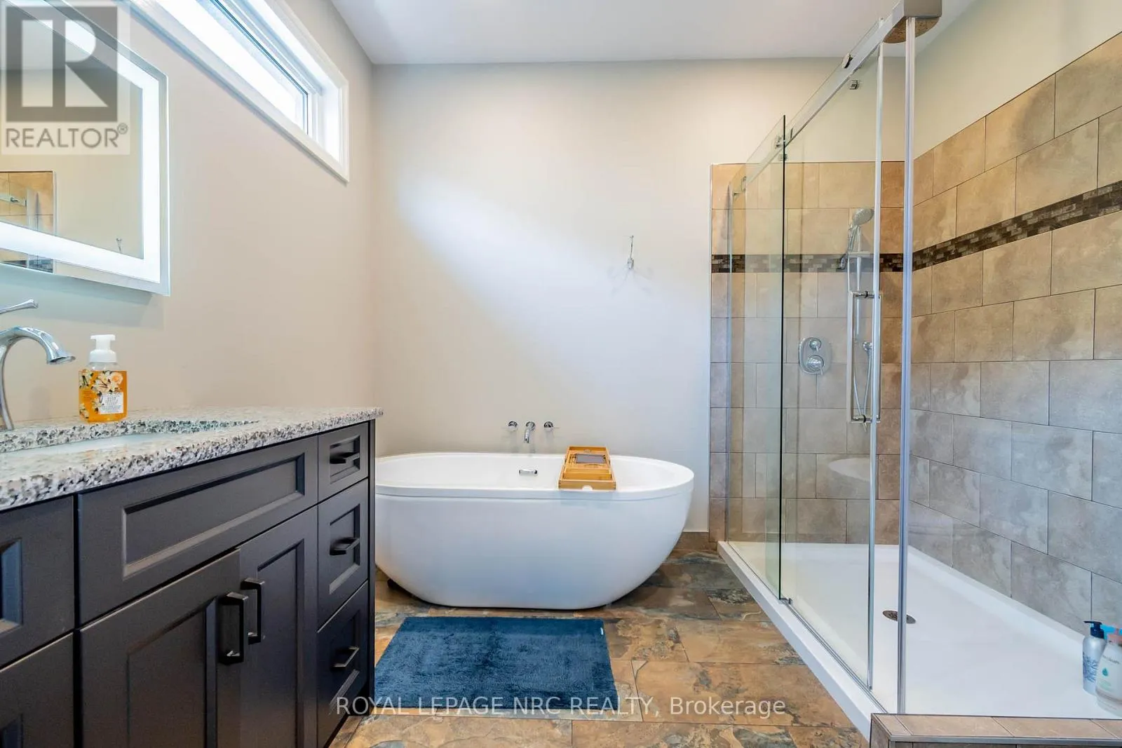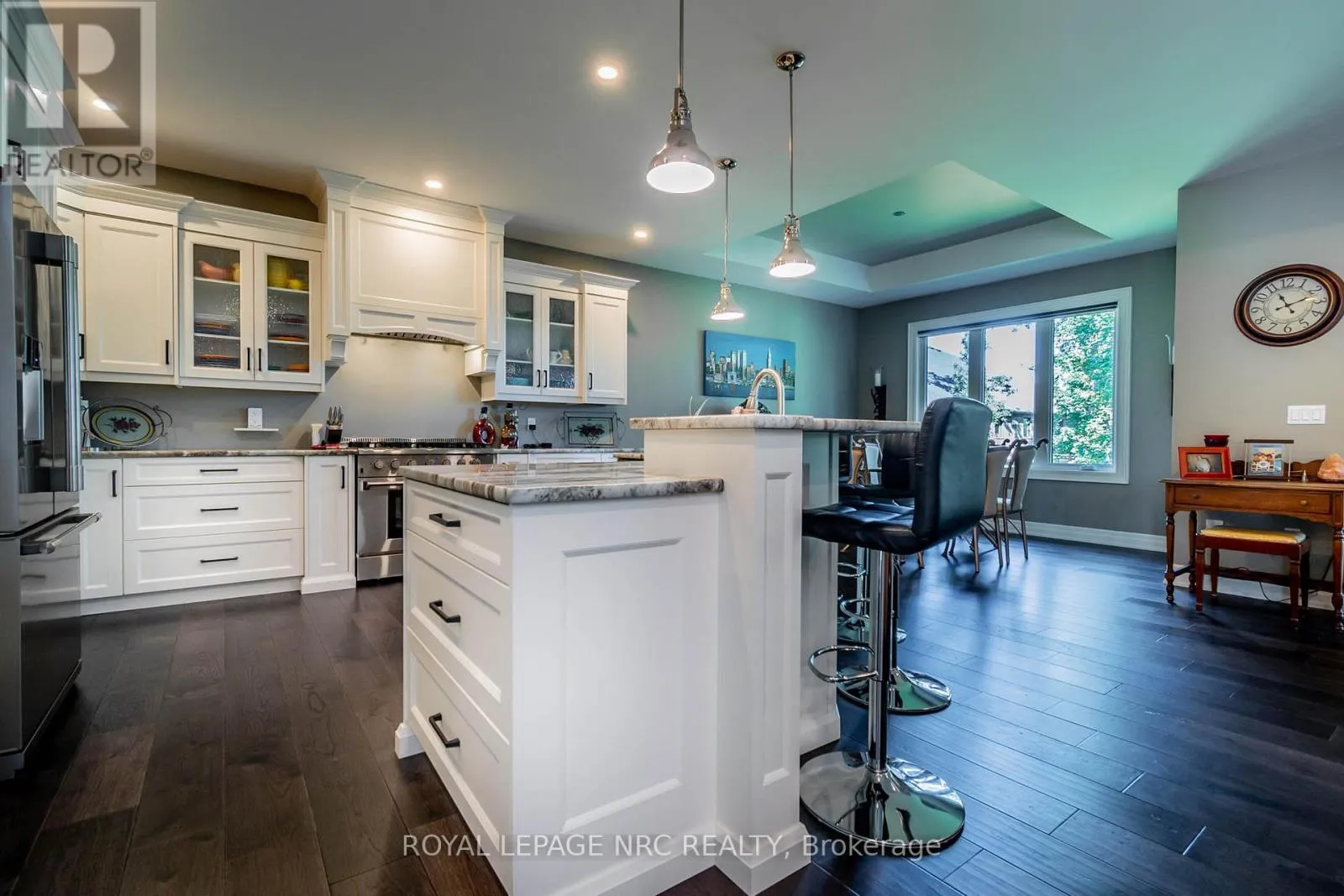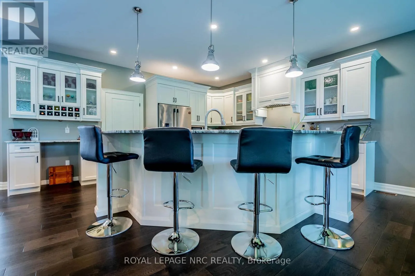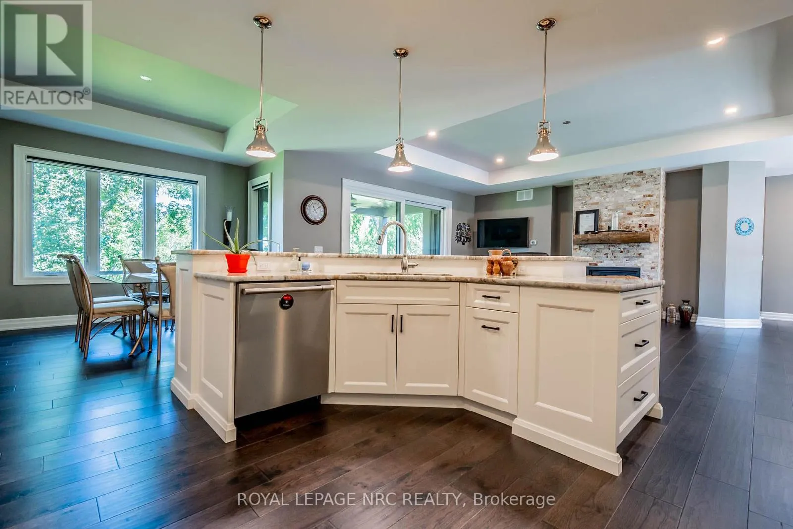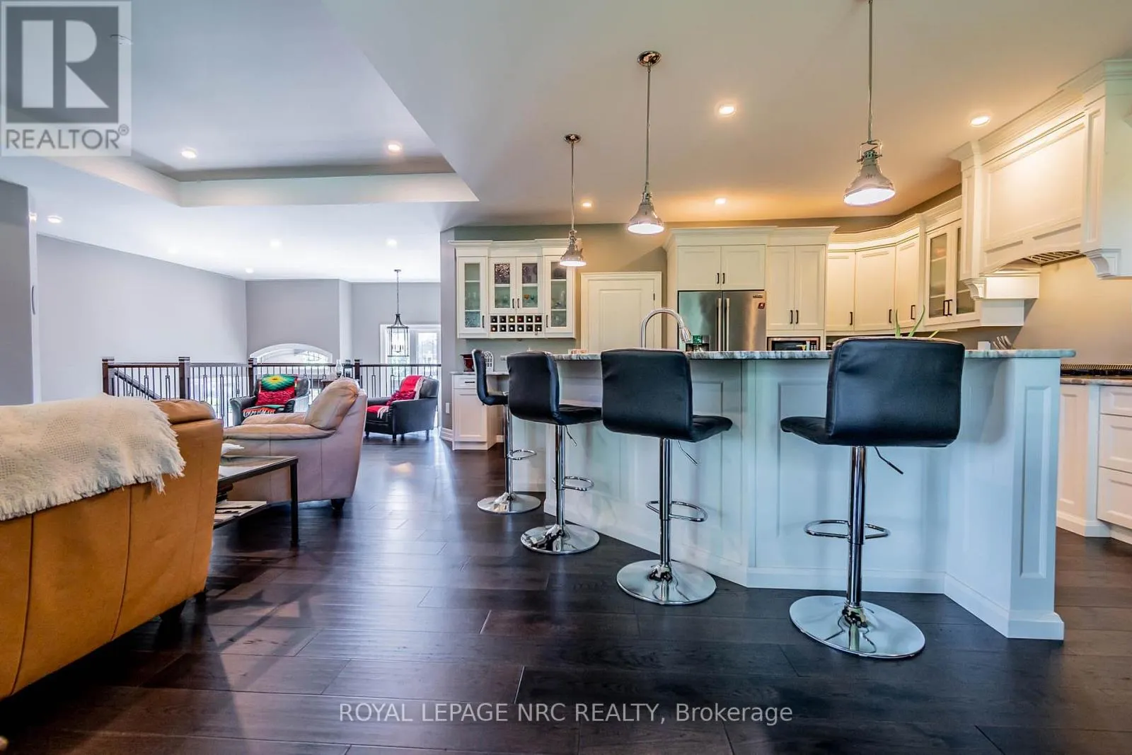 Cross Streets: Wood and Renfield. ** Directions: Just past Wood Lane, on Clarence St. Showstopper! This 2019 raised bungalow was custom built by the owners with all the high end finishes for their own enjoyment. The main floor is the perfect hosting space with engineered hardwood flooring, open concept living with gas fireplace, formal dining space, tons of natural light and 10 ft sliding doors to the patio with quarry views. The kitchen is a chefs dream with granite counters, island seating, gas stove, stainless appliances, white shaker cabinets, trayed ceiling and walk-in pantry. Main floor laundry and interior access to both the lower and main floor from the 2 car garage with bonus walk-in storage loft above. The primary suite has two large closet spaces, a soaker tub and walk-in shower. For those working from home, the office right off of the foyer is perfect for meeting with clients. The lower level is fully finished with tons of light, a huge family room, 3 additional bedrooms and another 4 piece bathroom. There is a surprising amount of storage in this house and below the porch hosts a roll up door for all your lawn care and gardening tools. All of this is situated in Port Colborne's most desirable neighbourhood with just a short stroll to parks, schools & downtown. (id:27476)